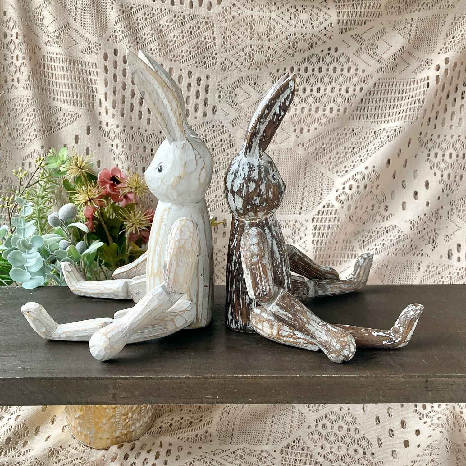 木彫りのうさぎ・ウォッシュS(座高20cm)