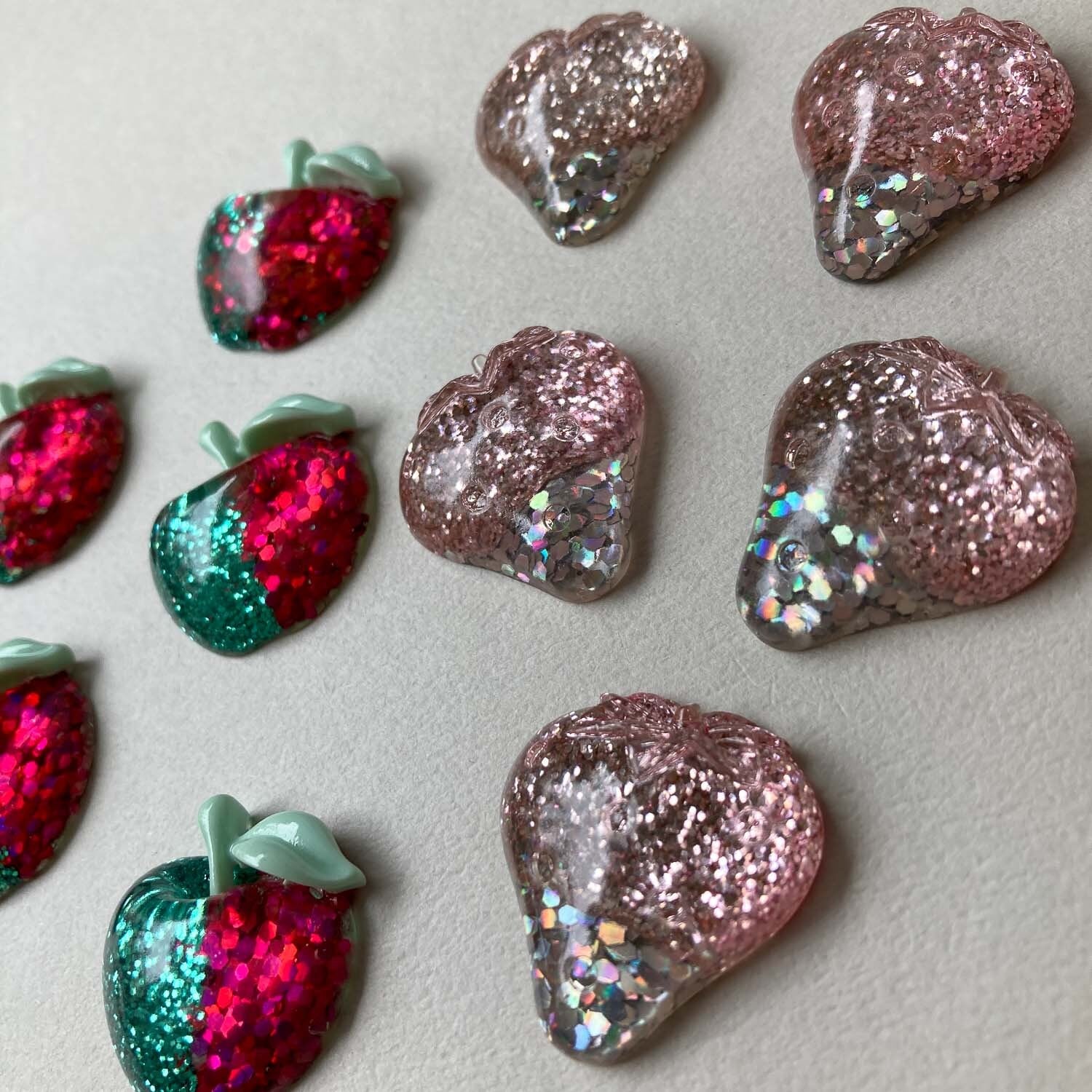 ■サイズ(縦×横×厚み/奥行):リンゴ:約26×26×8mm、イチゴ:約27×26×8mm