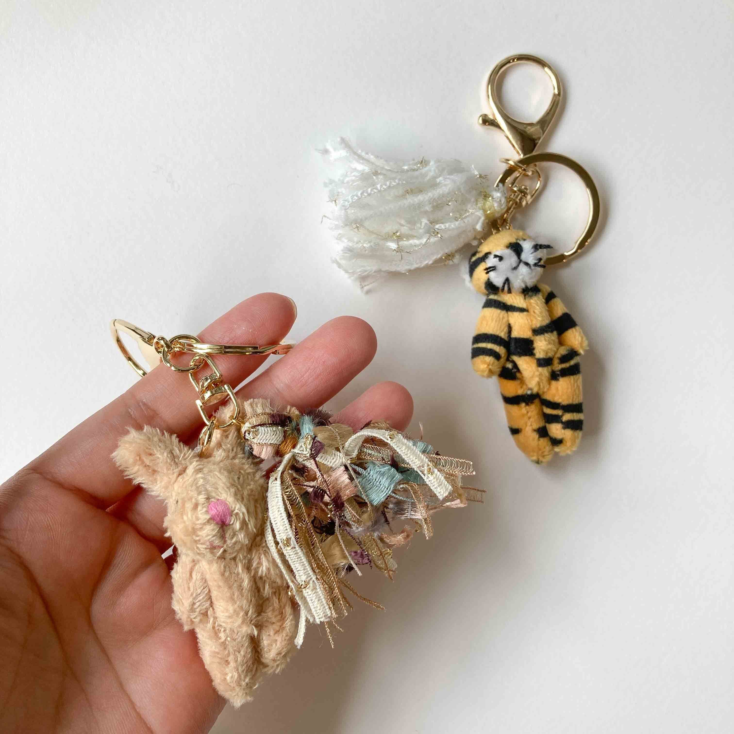 ふんわりタッセルとアニマルのバッグチャーム