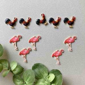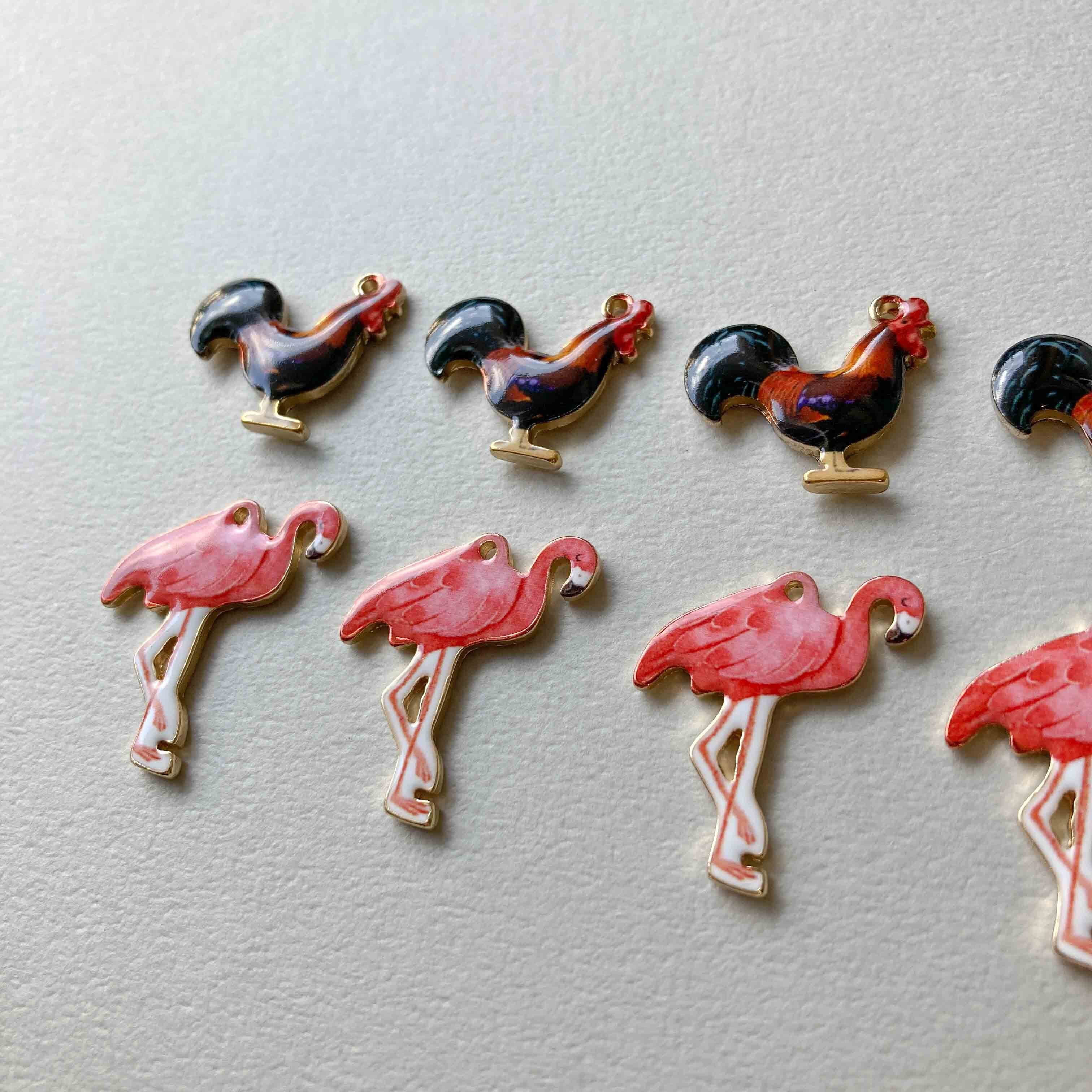 リアルなニワトリとフラミンゴのチャーム。
