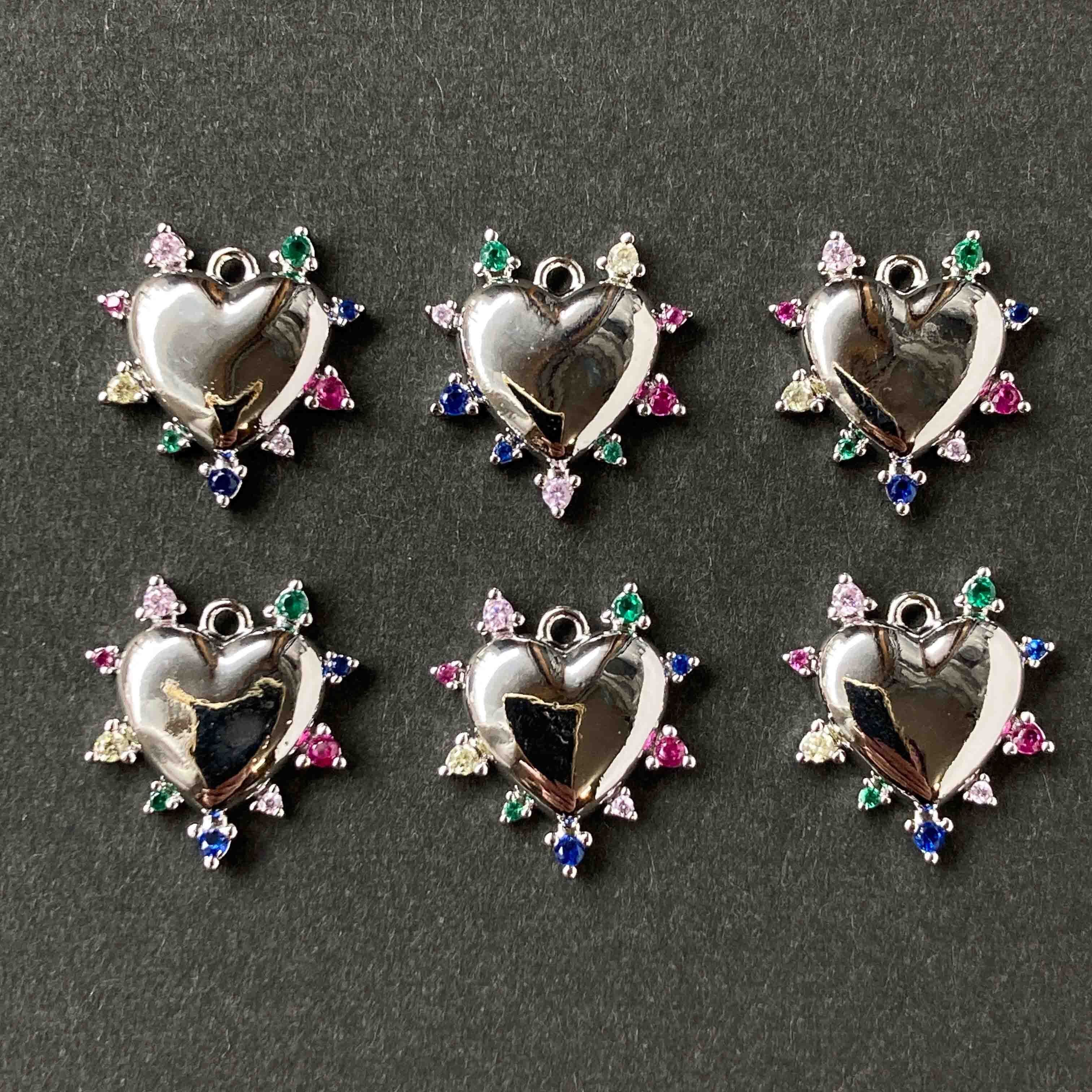 ぷっくりハートカラフルジルコニアチャーム(16K/プラチナメッキ)