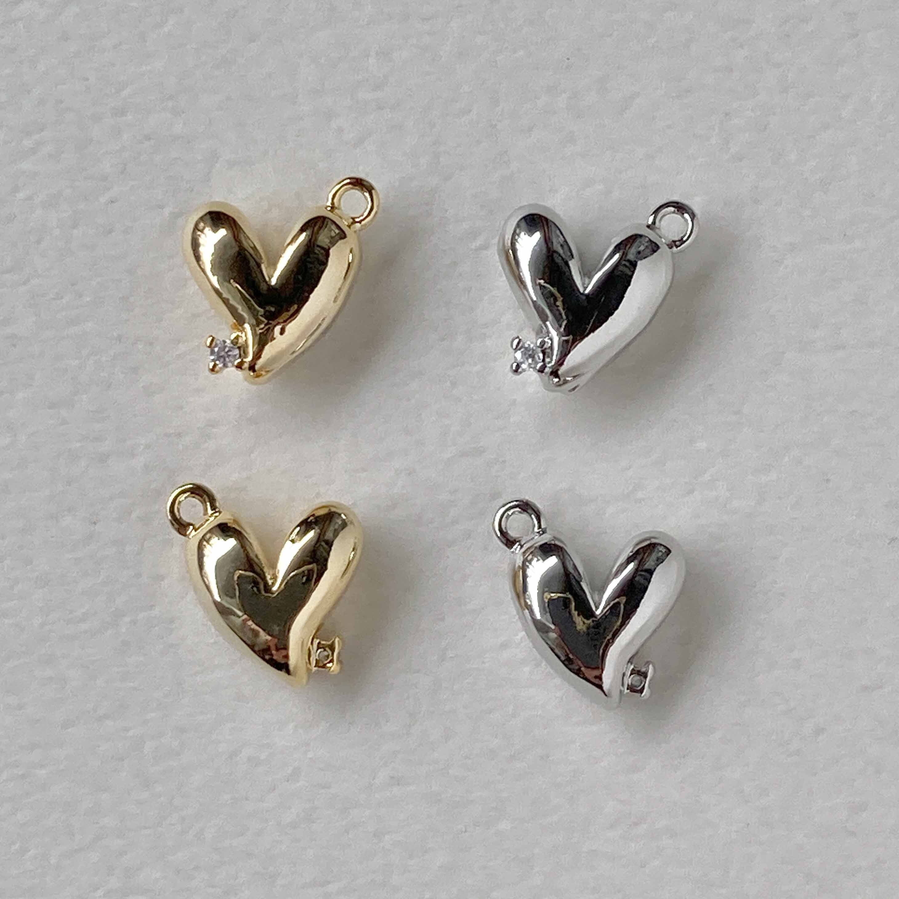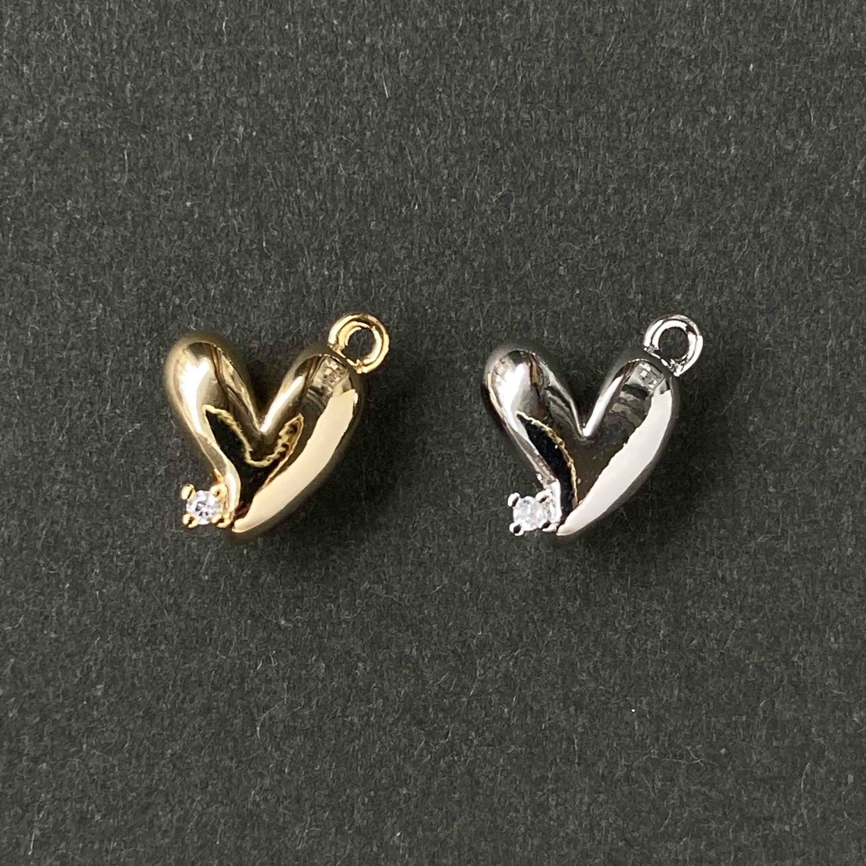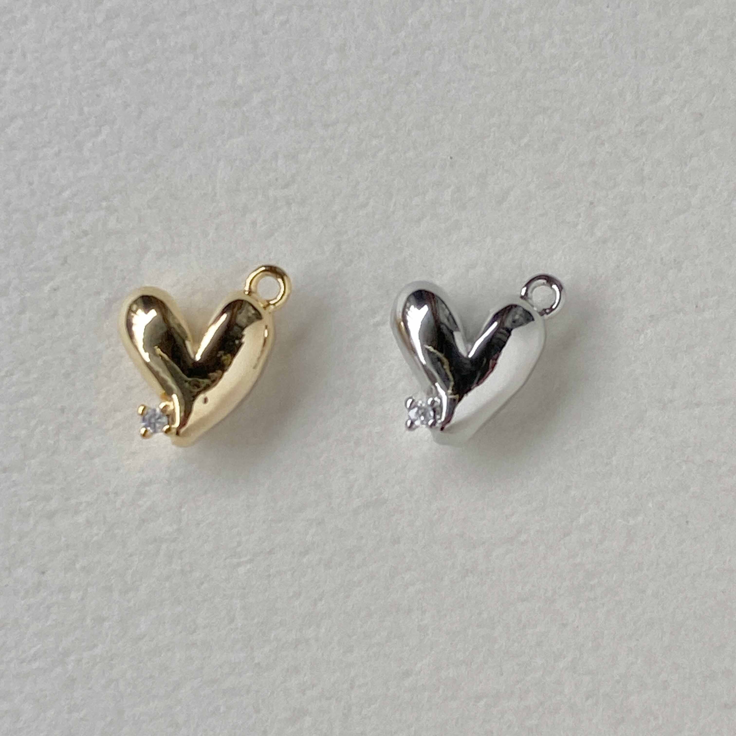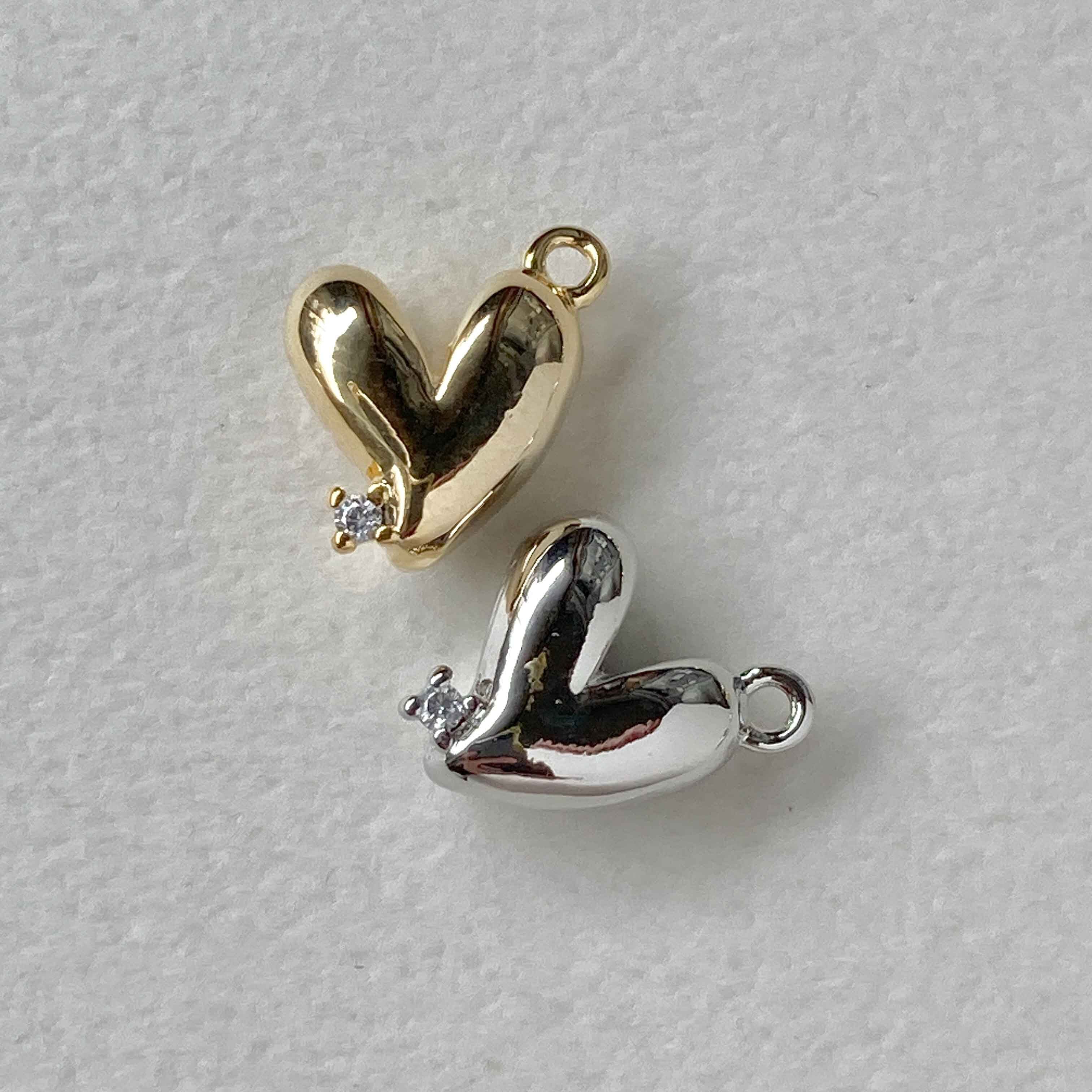 立体ハートのジルコニアチャーム(16K/プラチナメッキ)