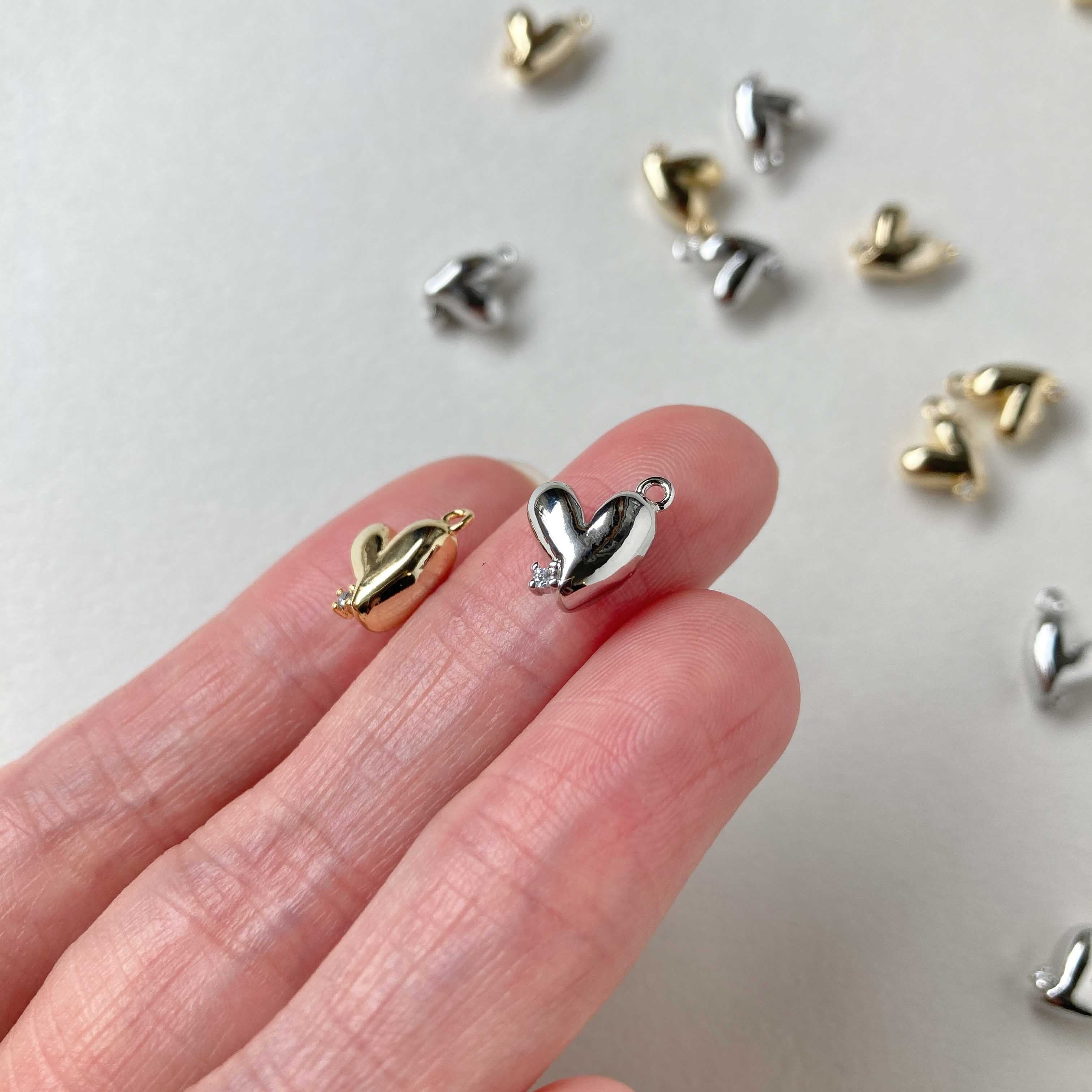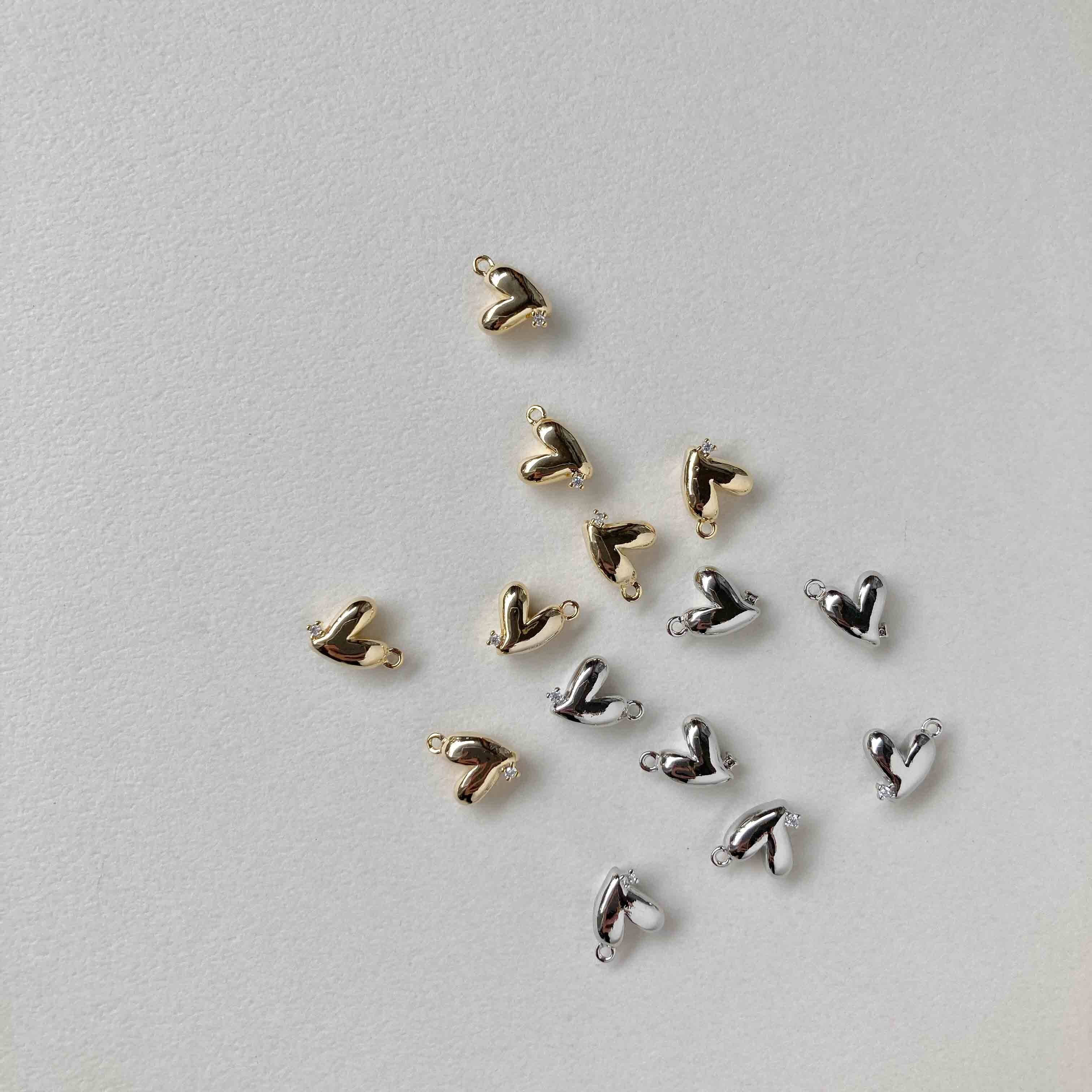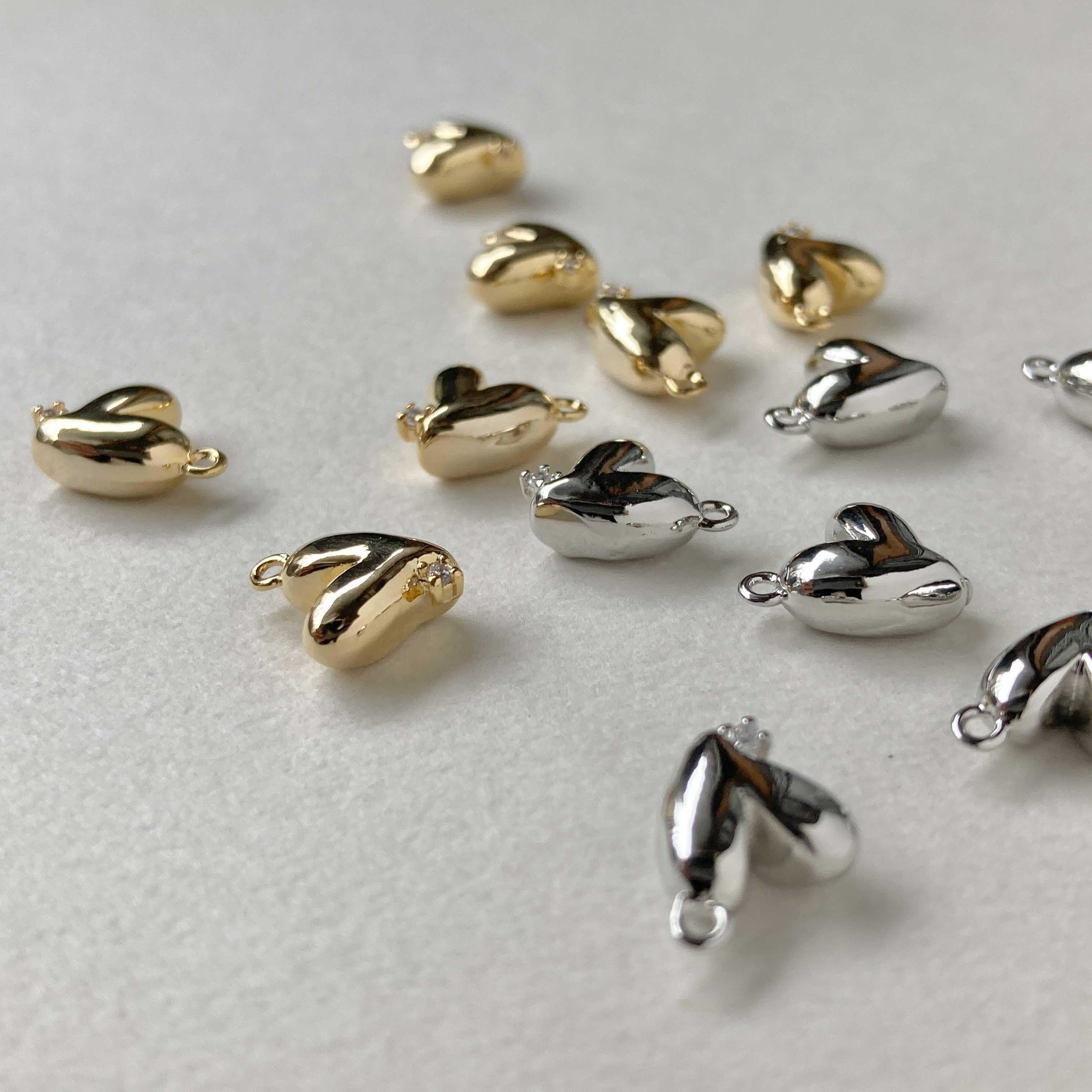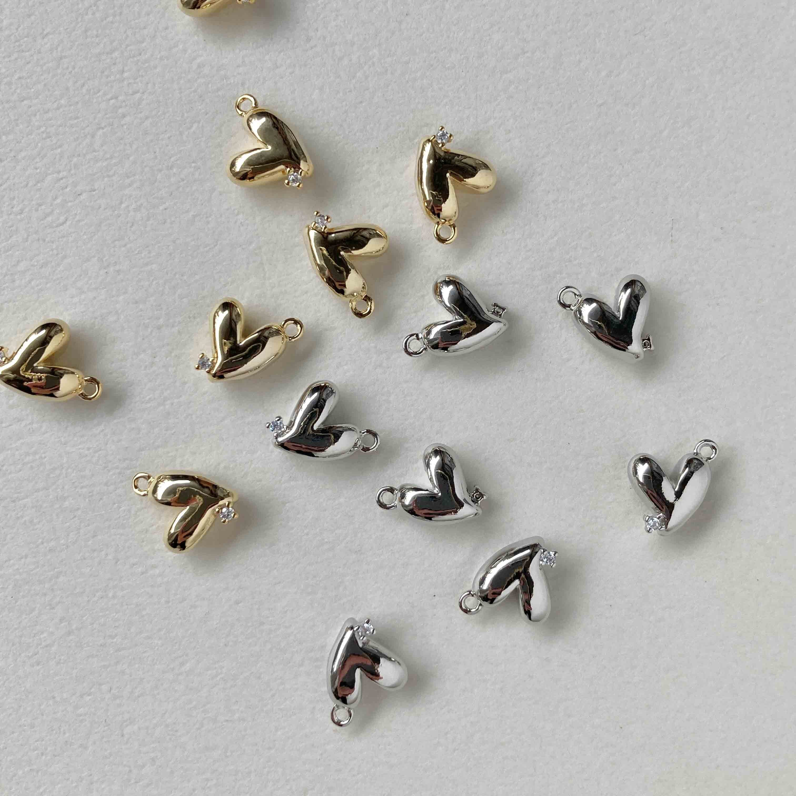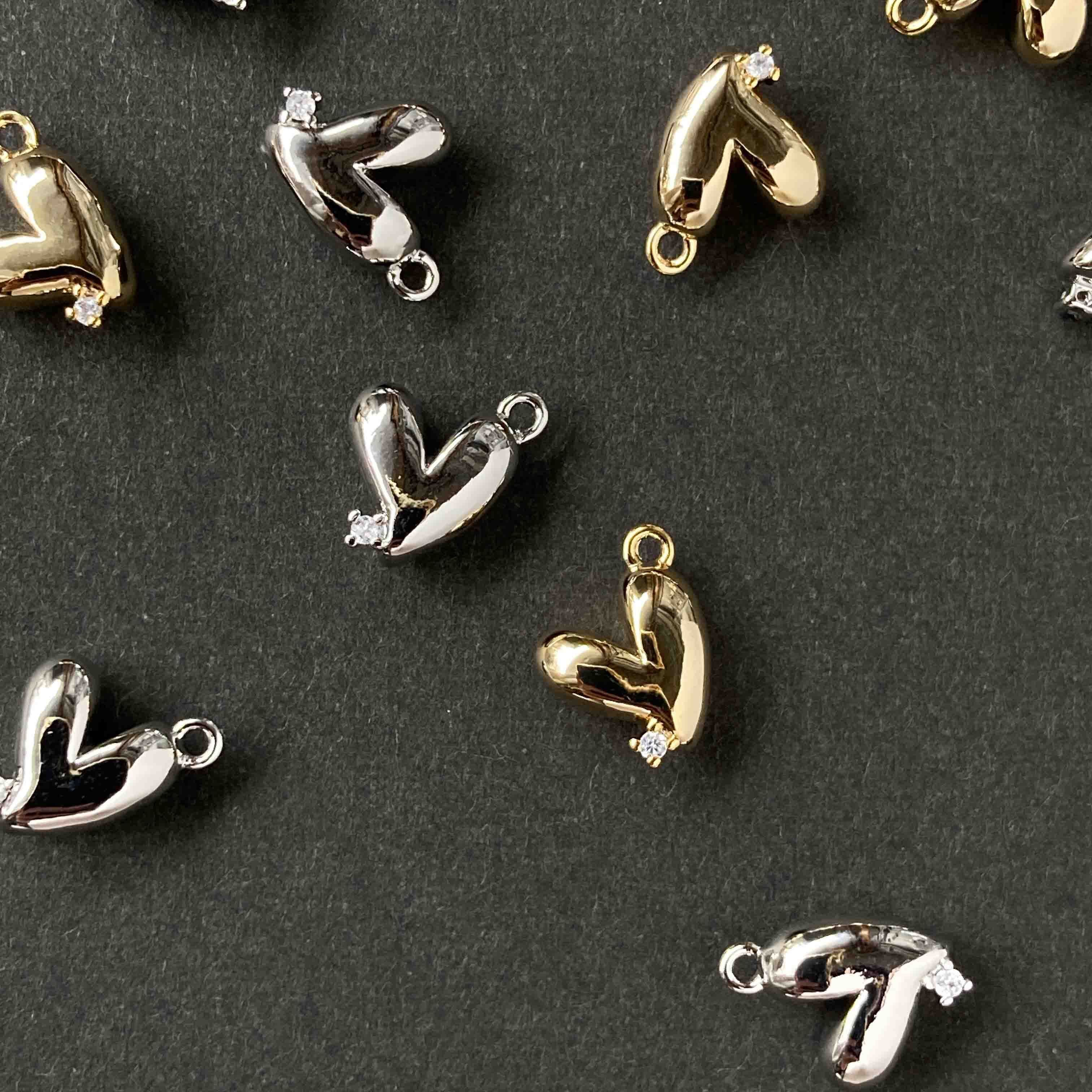 立体ハートのジルコニアチャーム(16K/プラチナメッキ)
