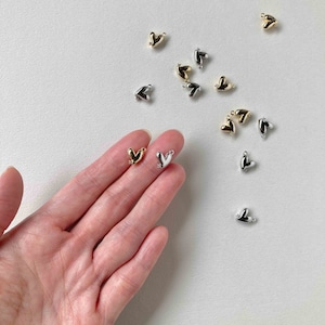 ぷっくりとしたハートにワンポイントで ジルコニアがきらりと輝きます。 シンプルで他のパーツとも合わせやすいです◎ ■販売単位:1個 ■種類:Aゴールド、Bシルバー ■サイズ(縦×横×厚み/奥行):約9×9×5mm ■素材:ジルコニア、メタル(16K/プラチナメッキ) ■商品コード:CH2510041