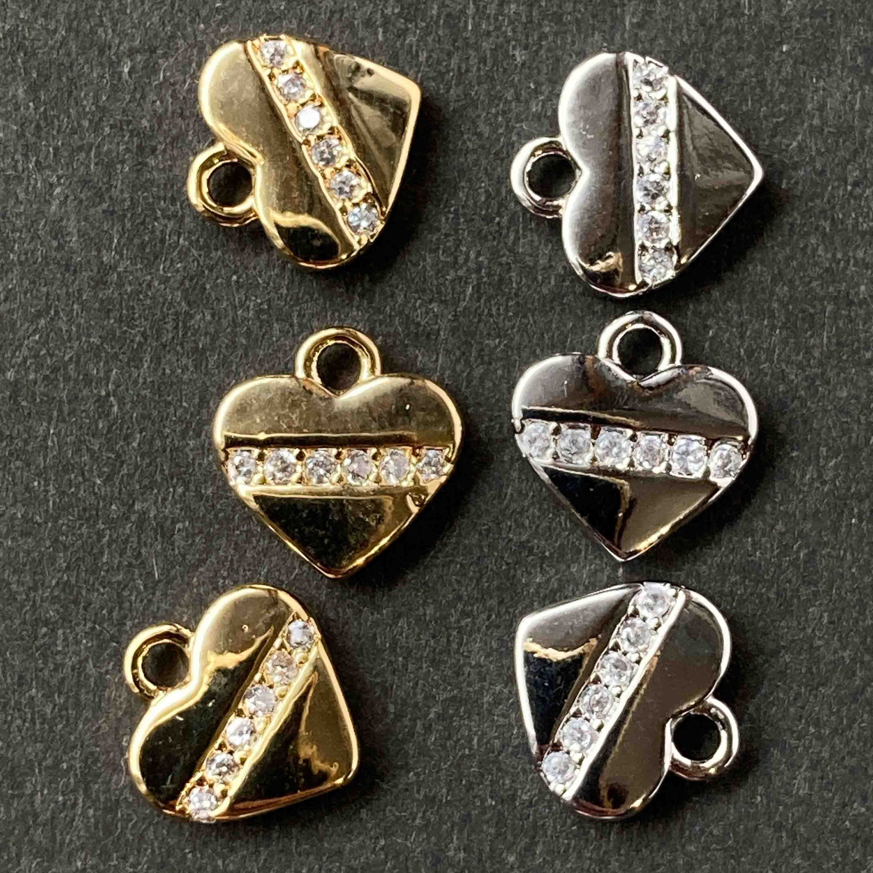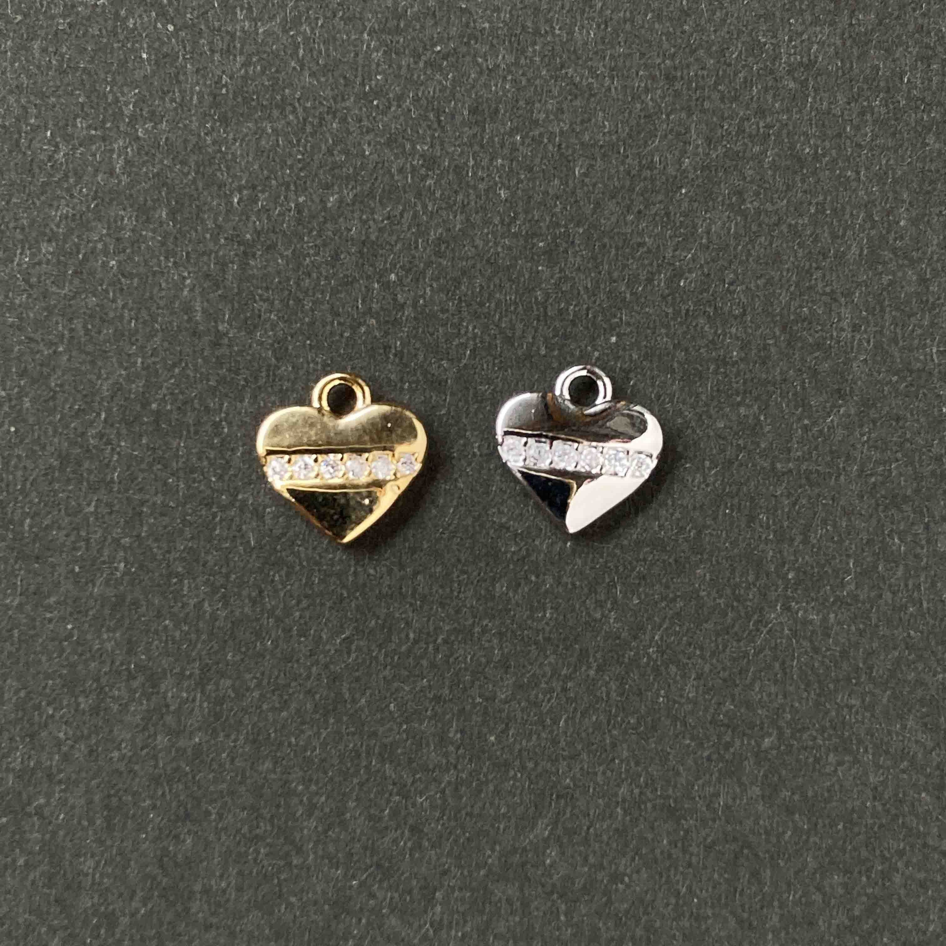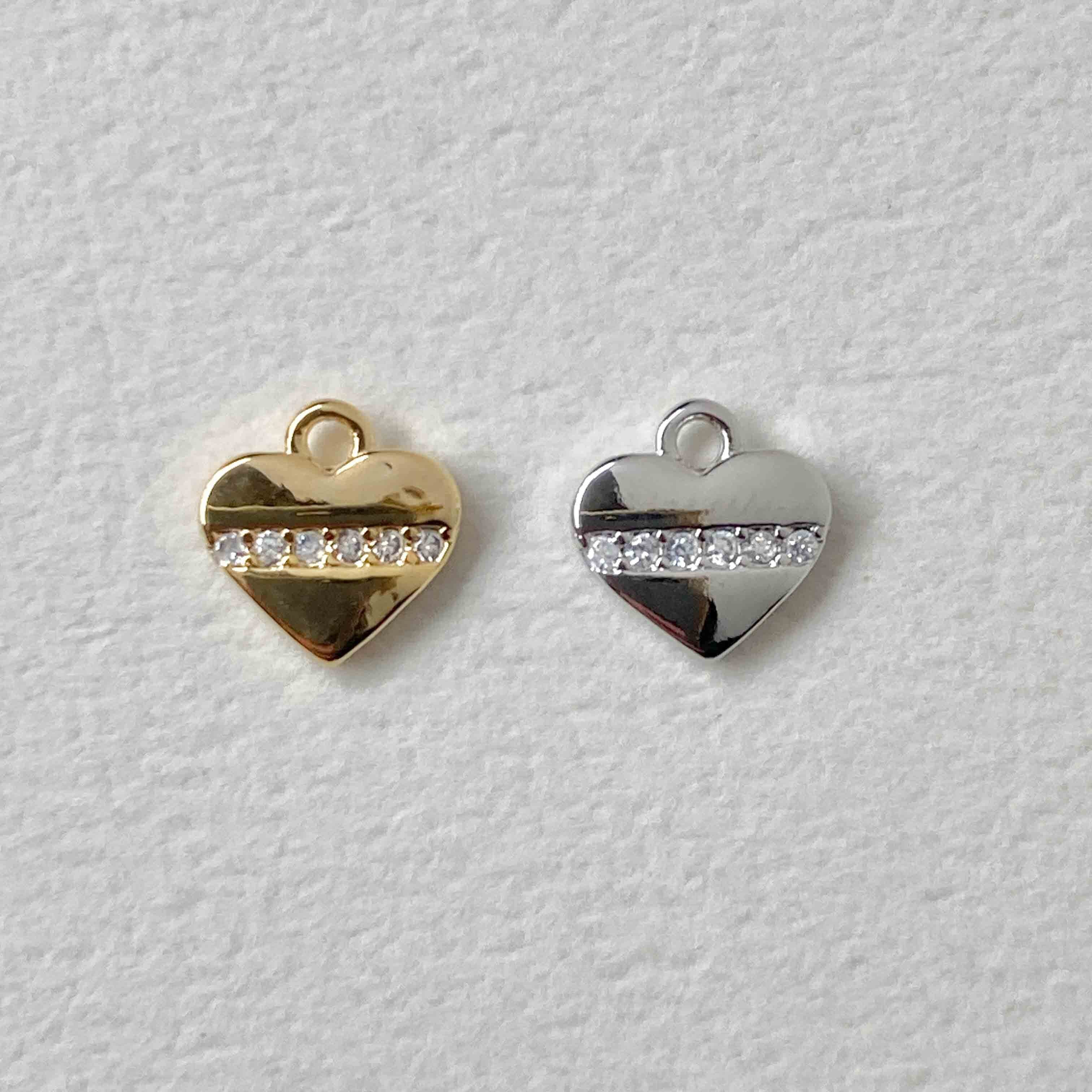 ハートラインストーンジルコニアチャーム(16K/プラチナメッキ)