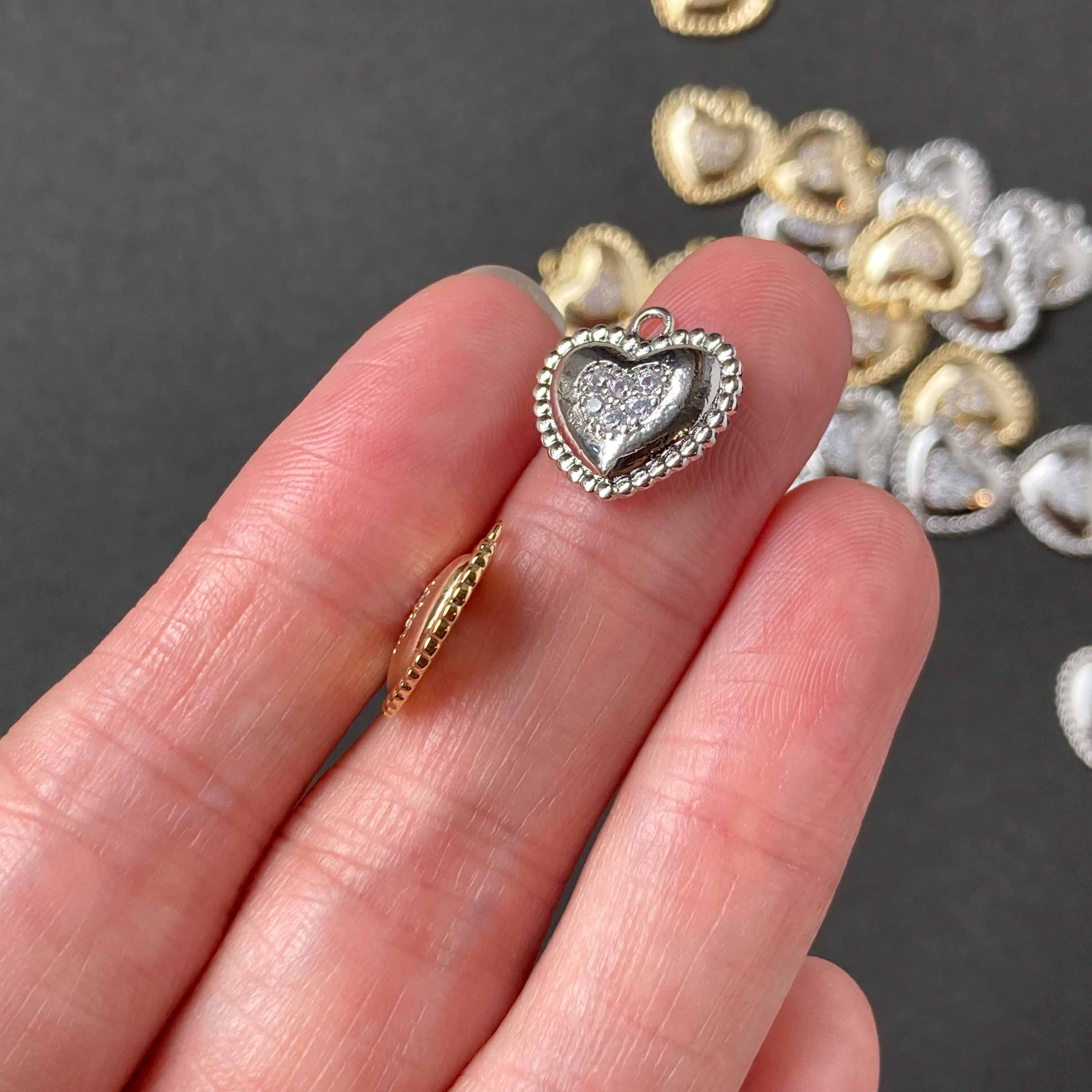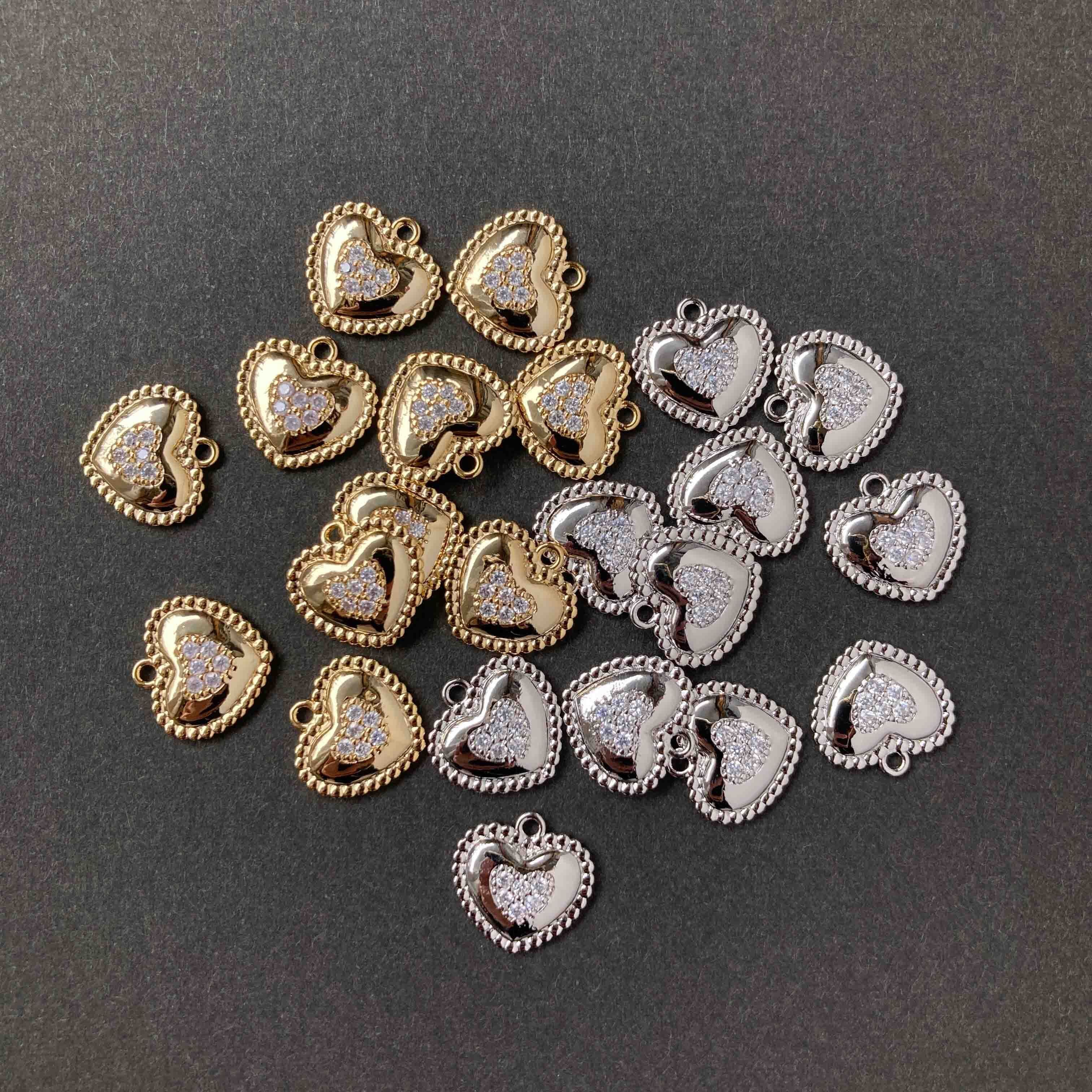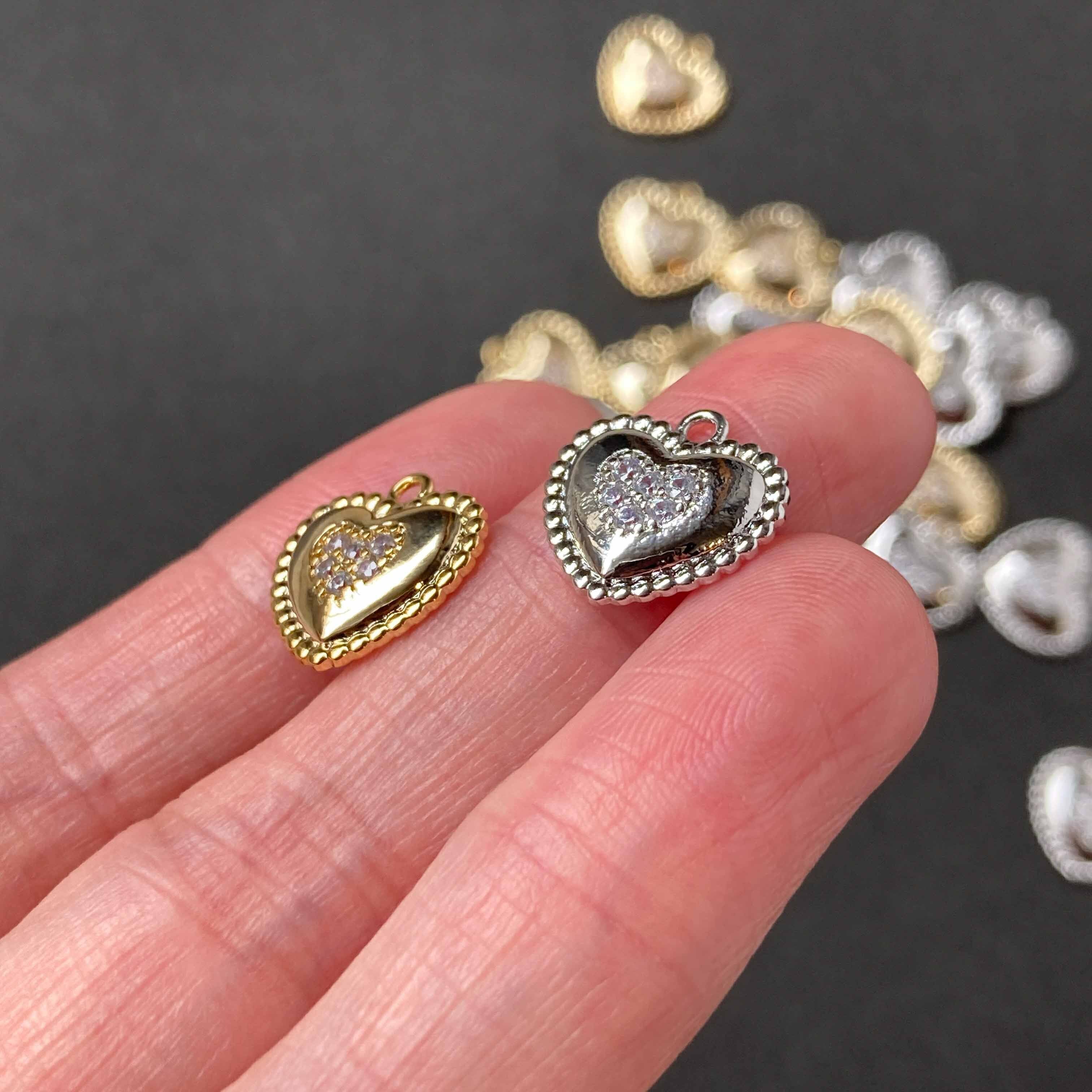 ぷっくりハートカラフルジルコニアチャーム(16K/プラチナメッキ)¥660