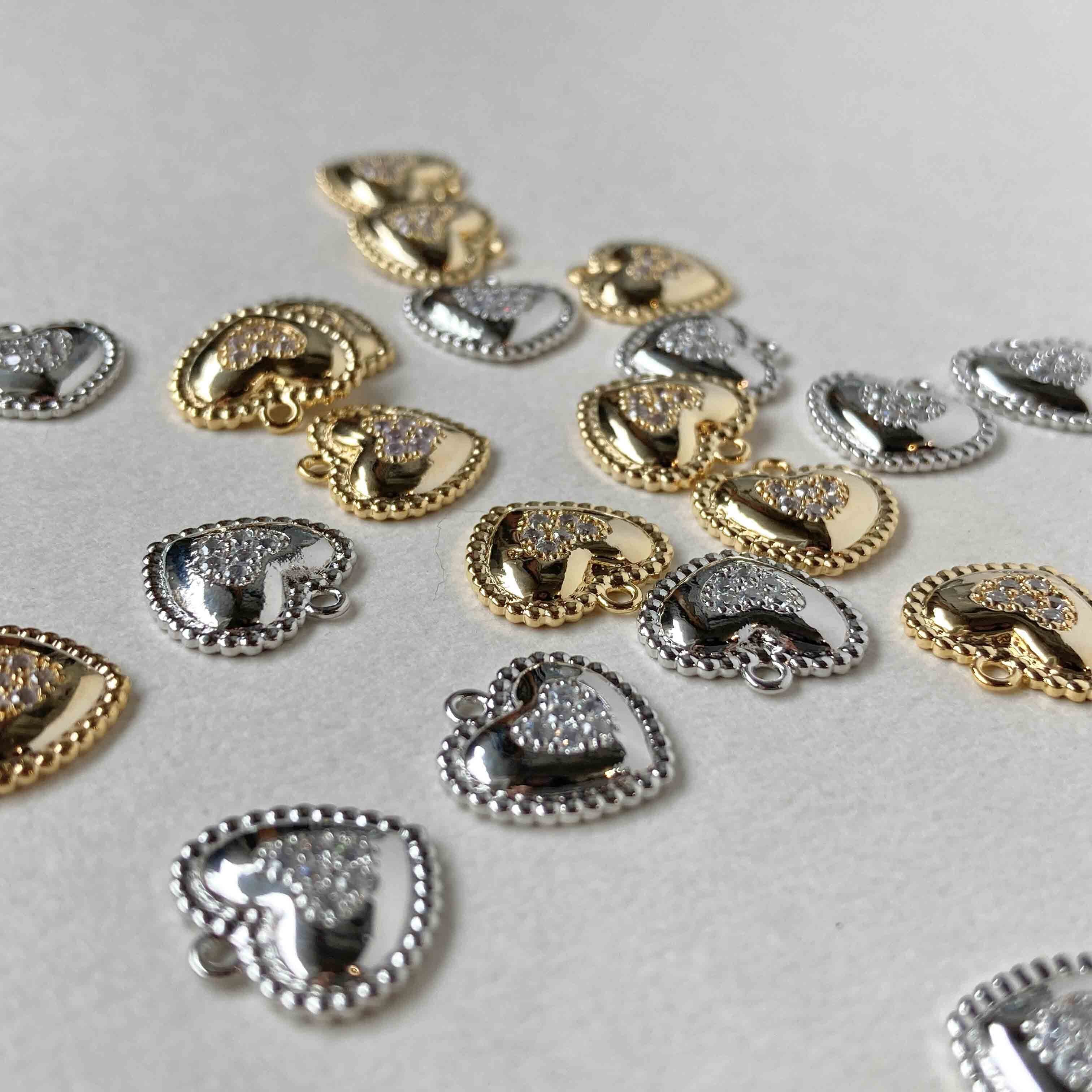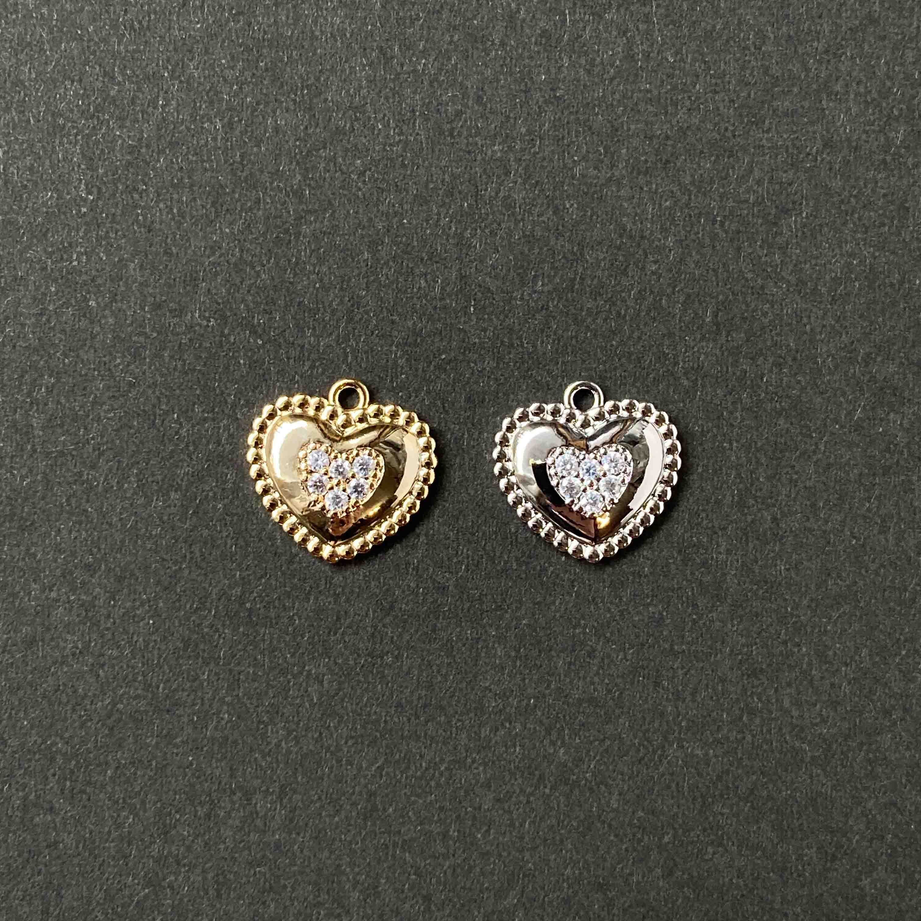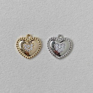ハートラインストーンジルコニアチャーム(16K/プラチナメッキ)¥330