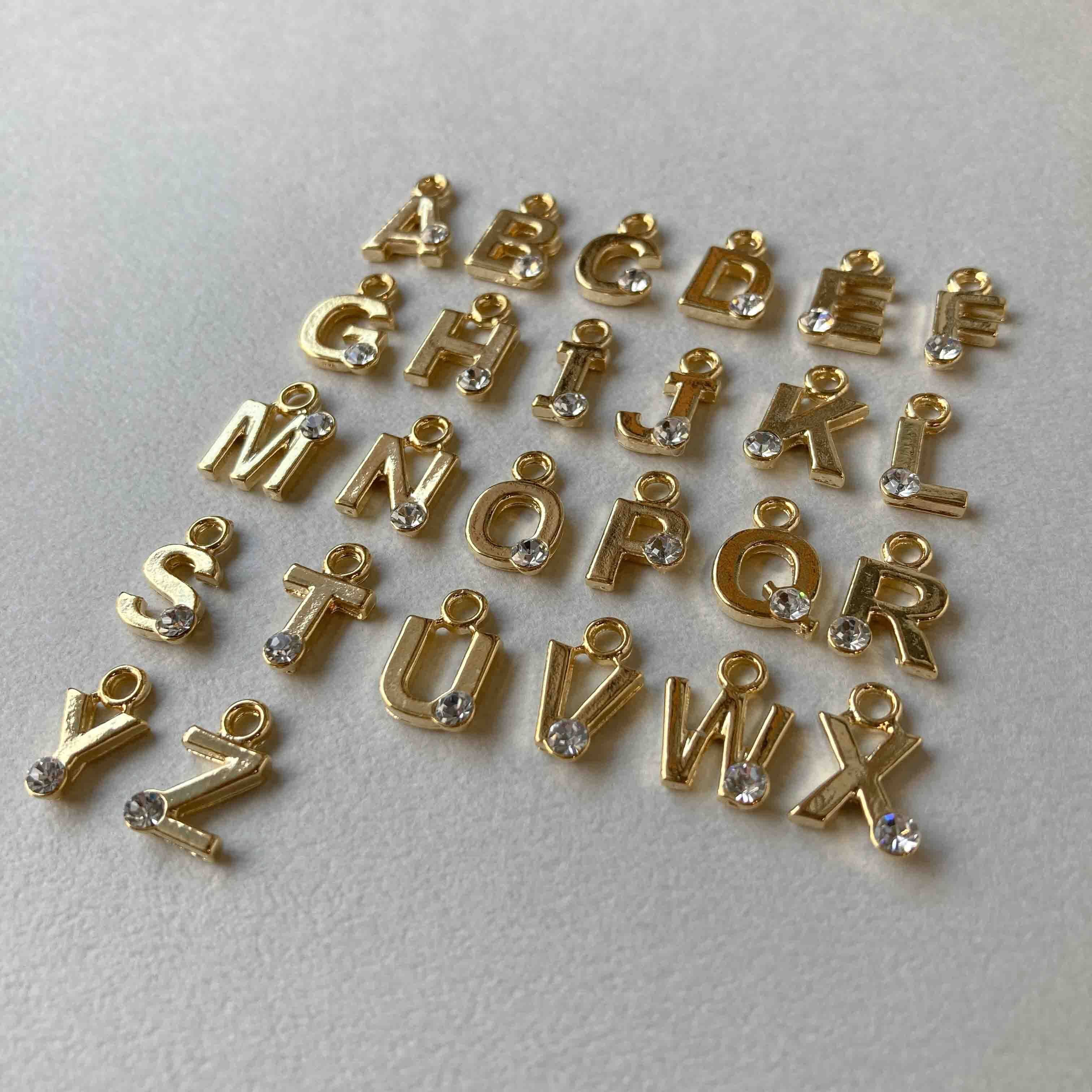 ビジュー付きアルファベットチャーム(ゴールド)