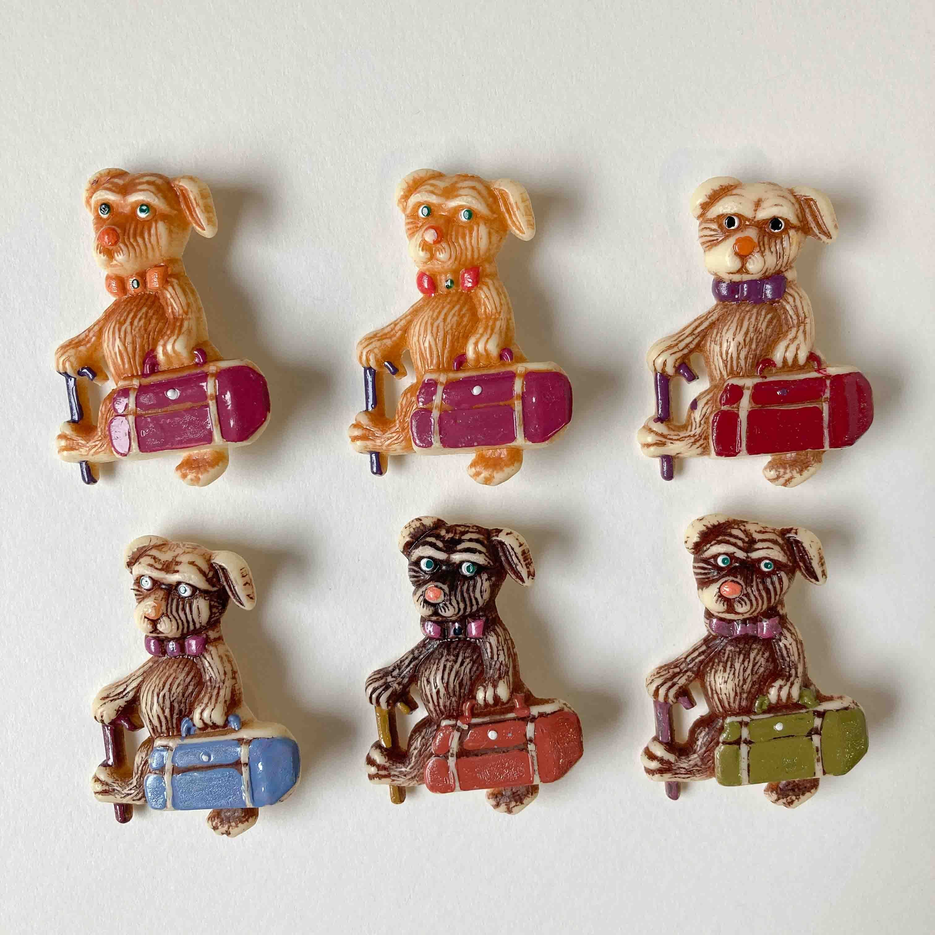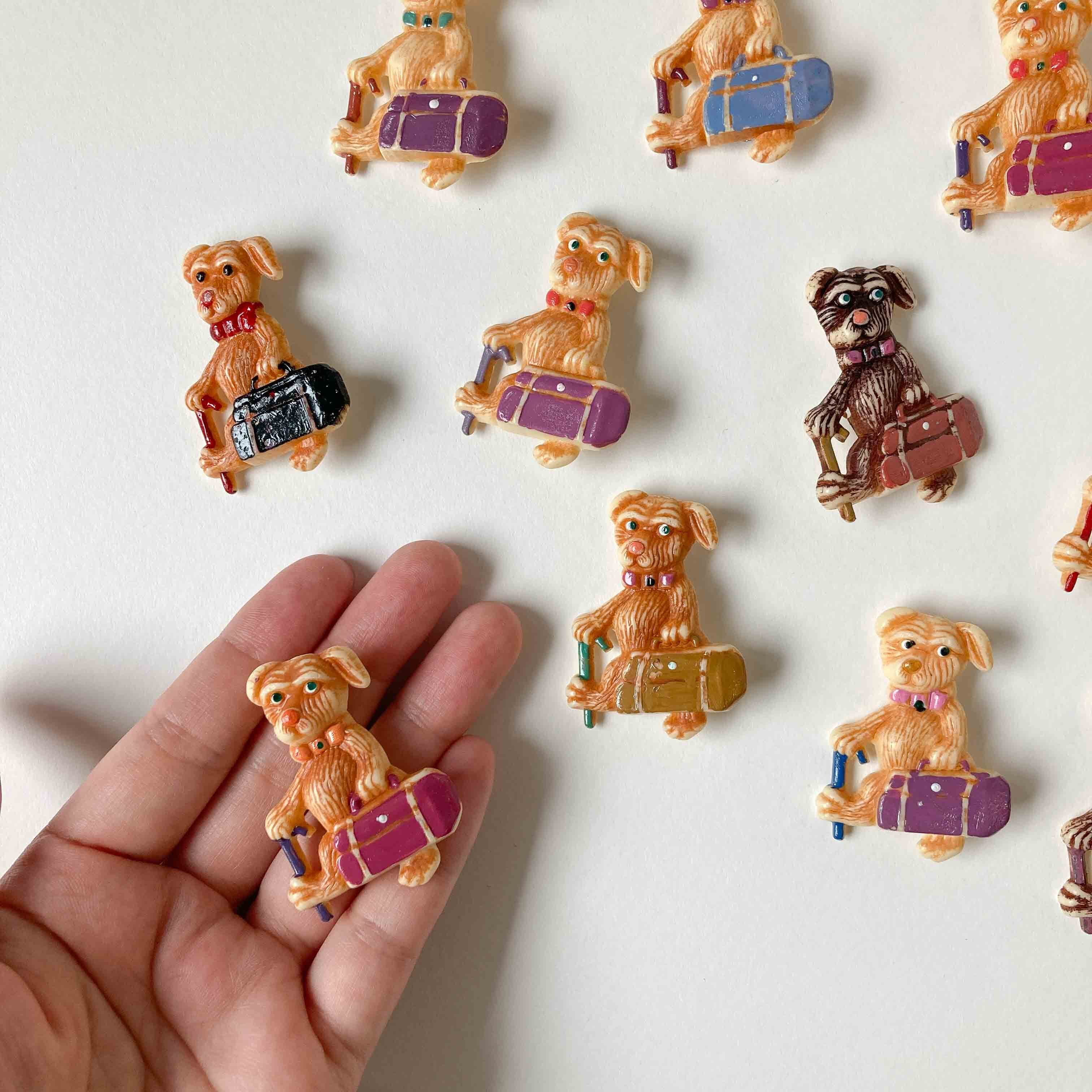 杖とバッグを持っておでかけ中の犬ブローチ。