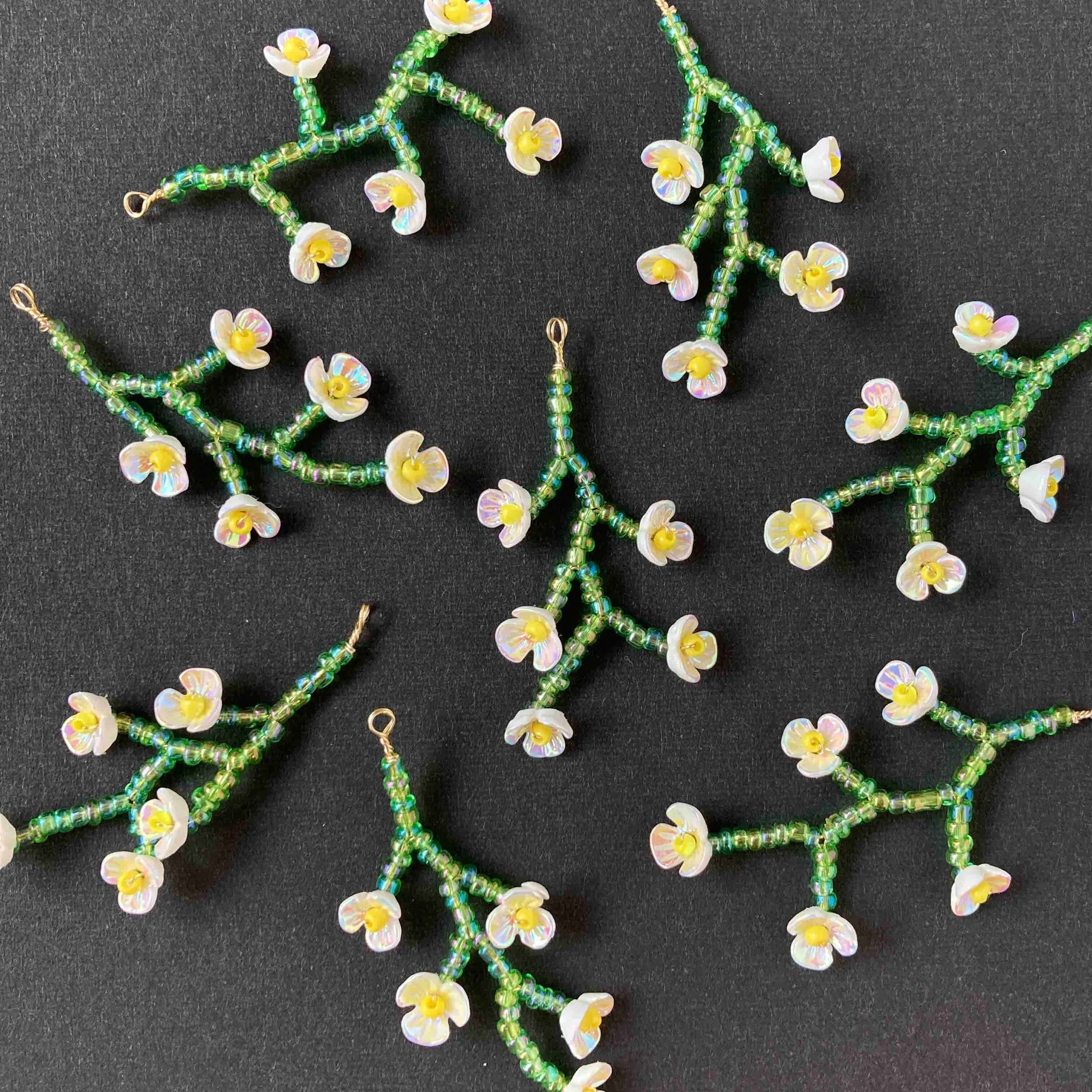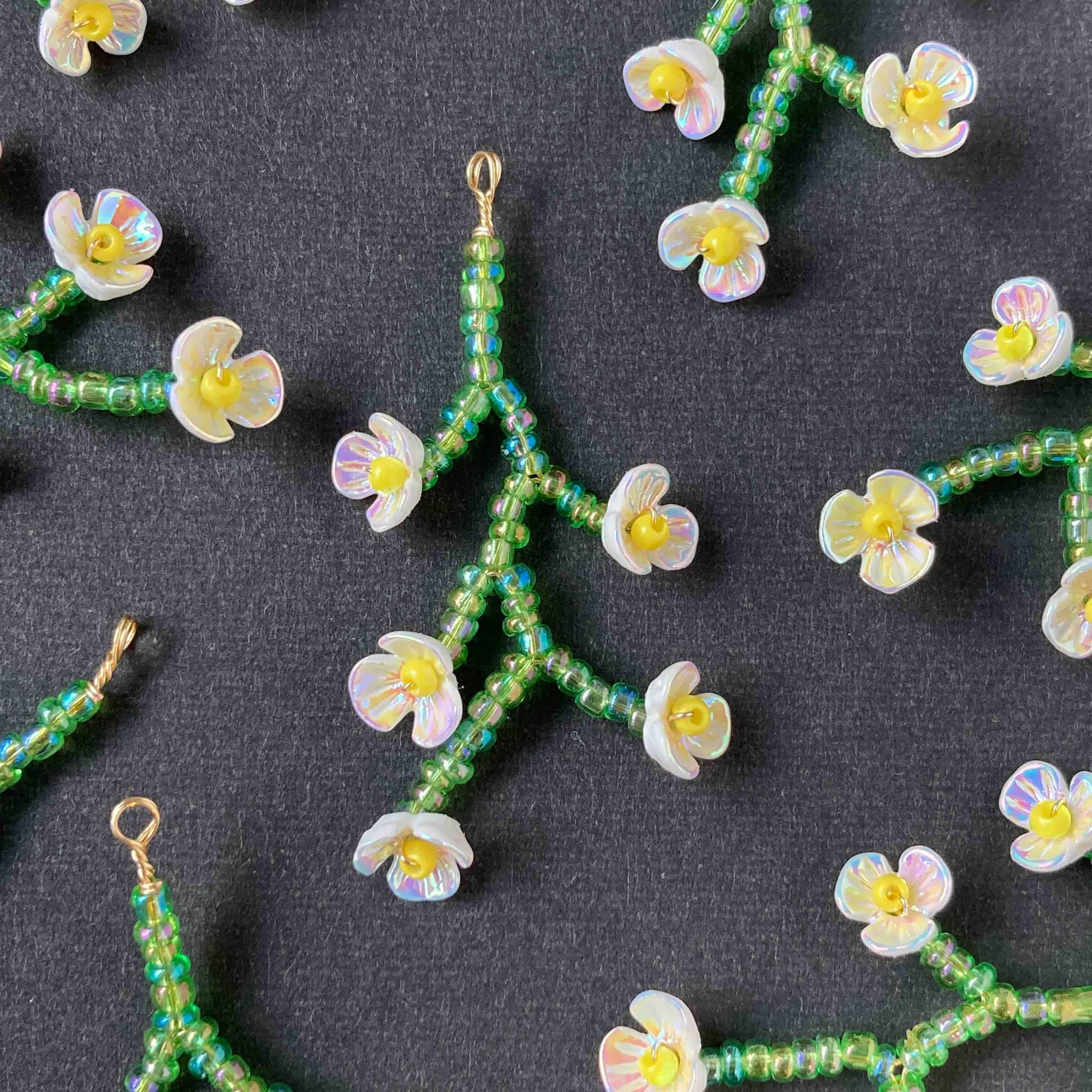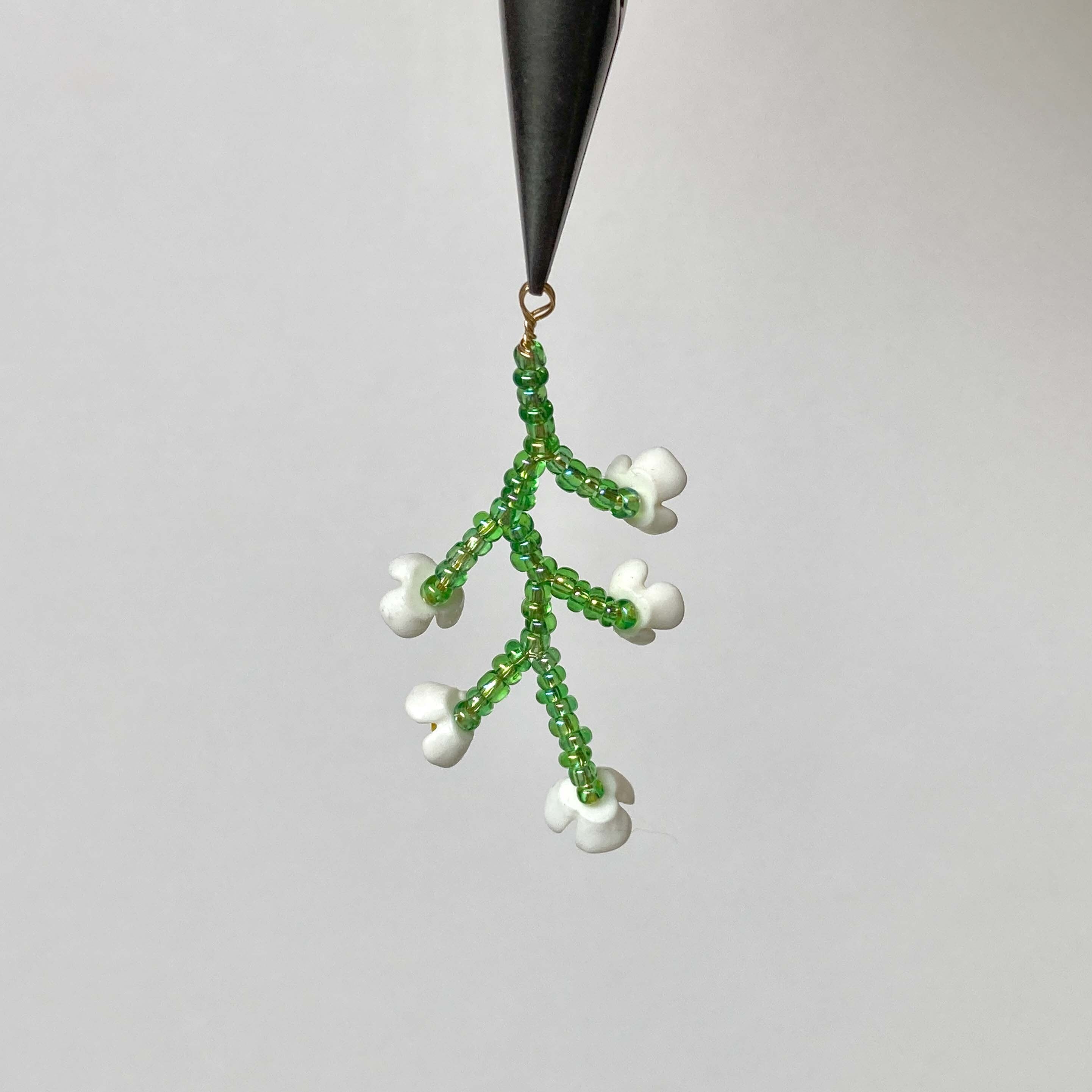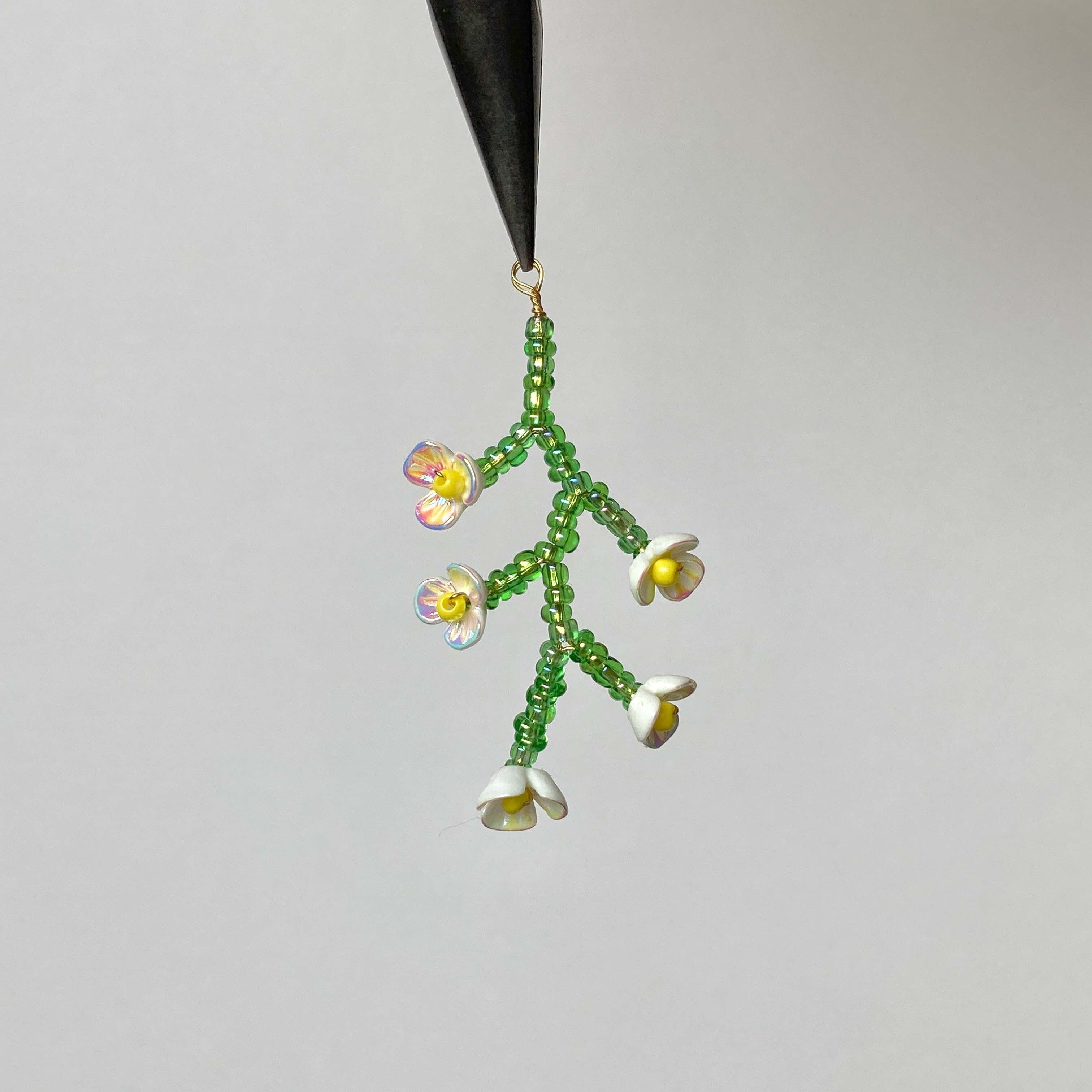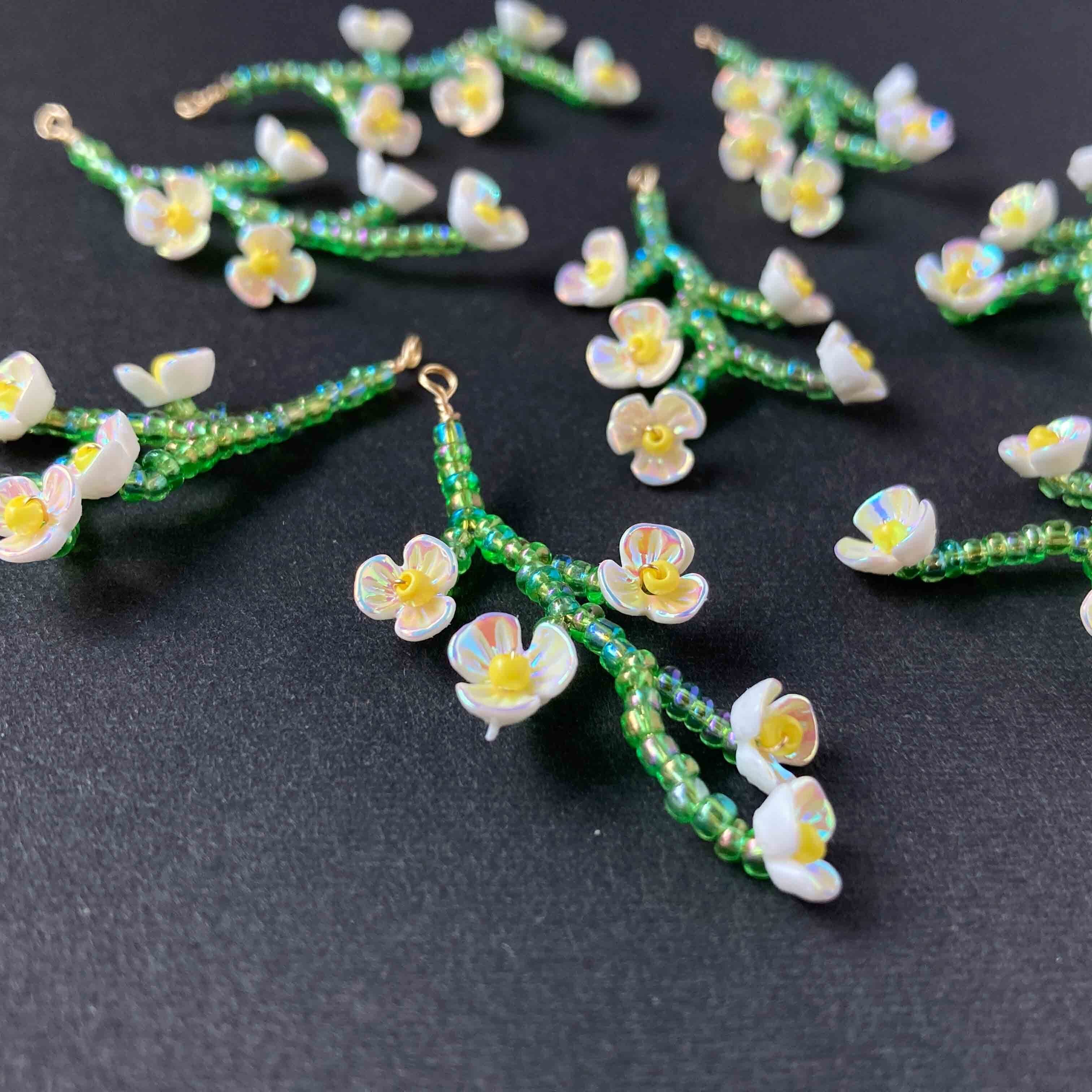 白い小花のビーズワーク枝チャーム《オンライン限定》