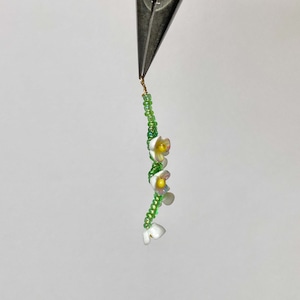 オーロラカラーが綺麗な白いお花のチャーム。 ワイヤー製なので形は自在に変えることができます。 ■販売単位:1個 ■サイズ(縦×横×厚み/奥行):約40×20×5mm ■素材:ワイヤー、ガラスビーズ、樹脂 ■形や大きさに個体差がございます。 形の歪みは、手でやさしく整えてください。 ■商品コード:CH2503019