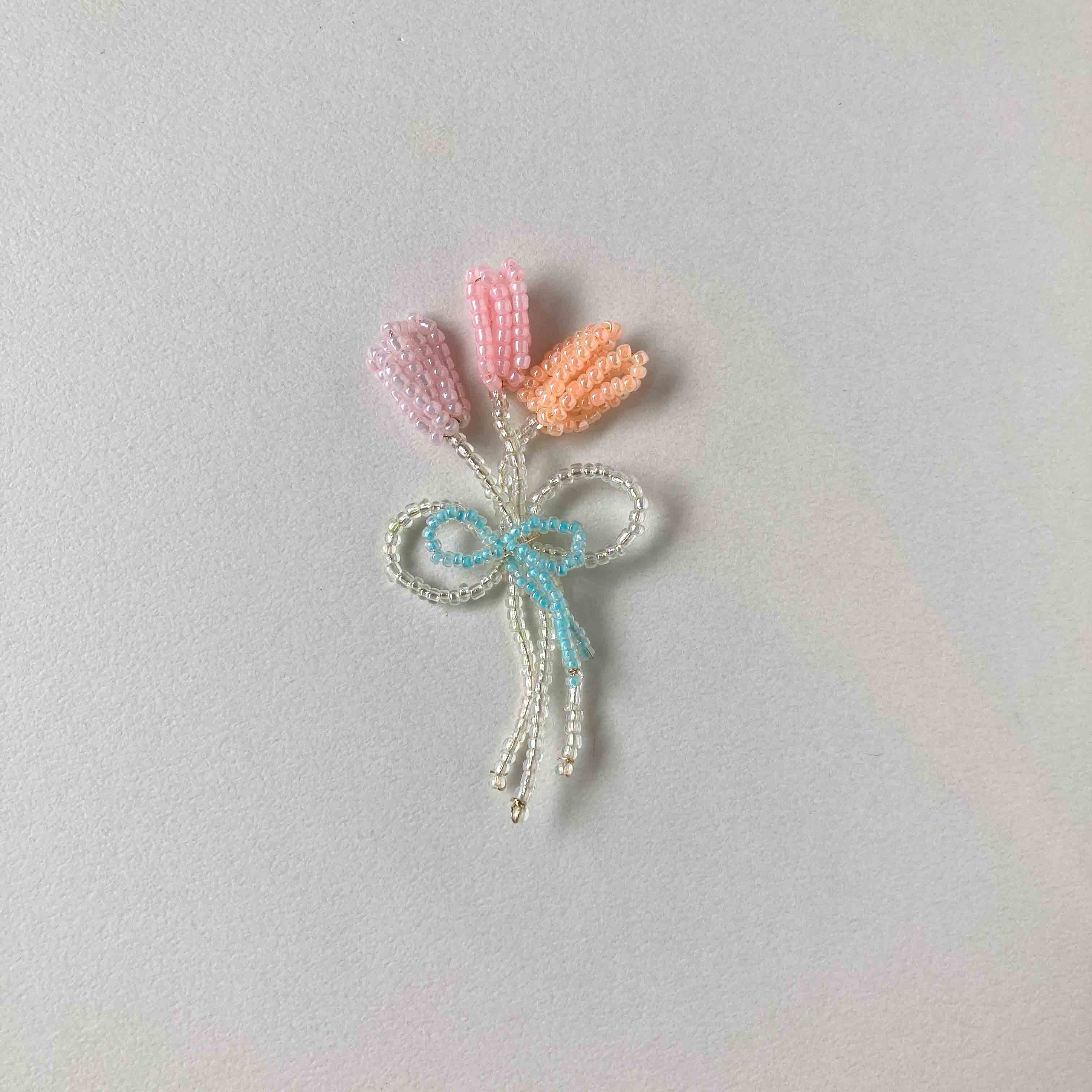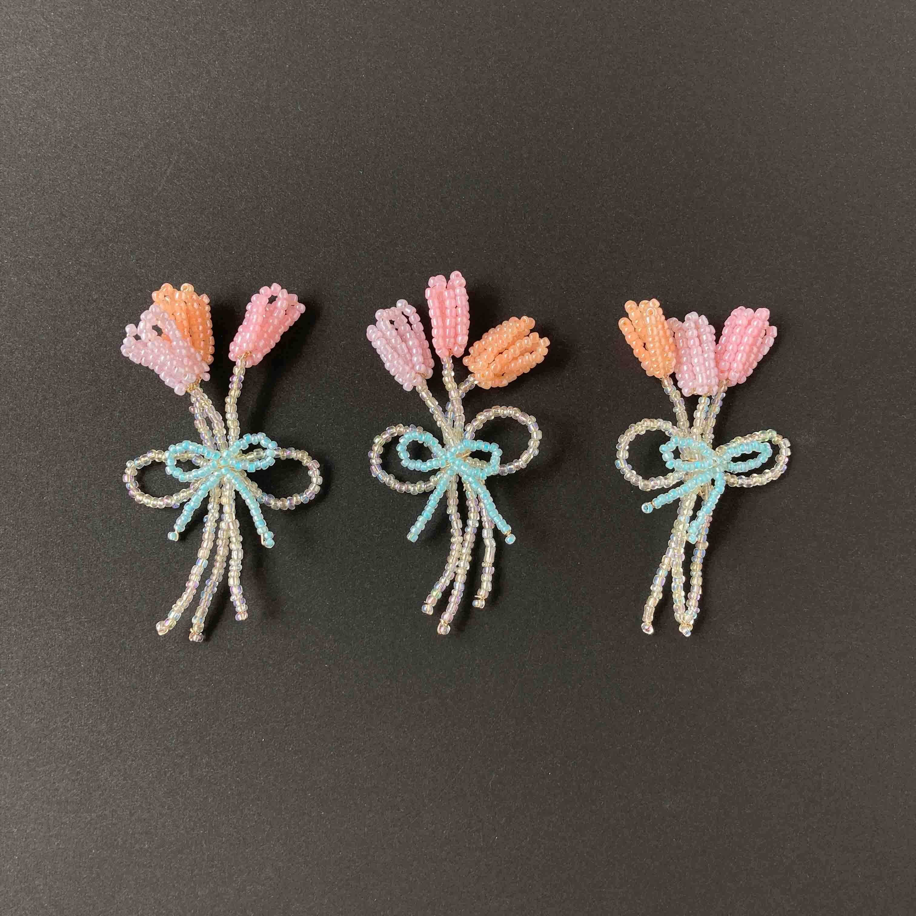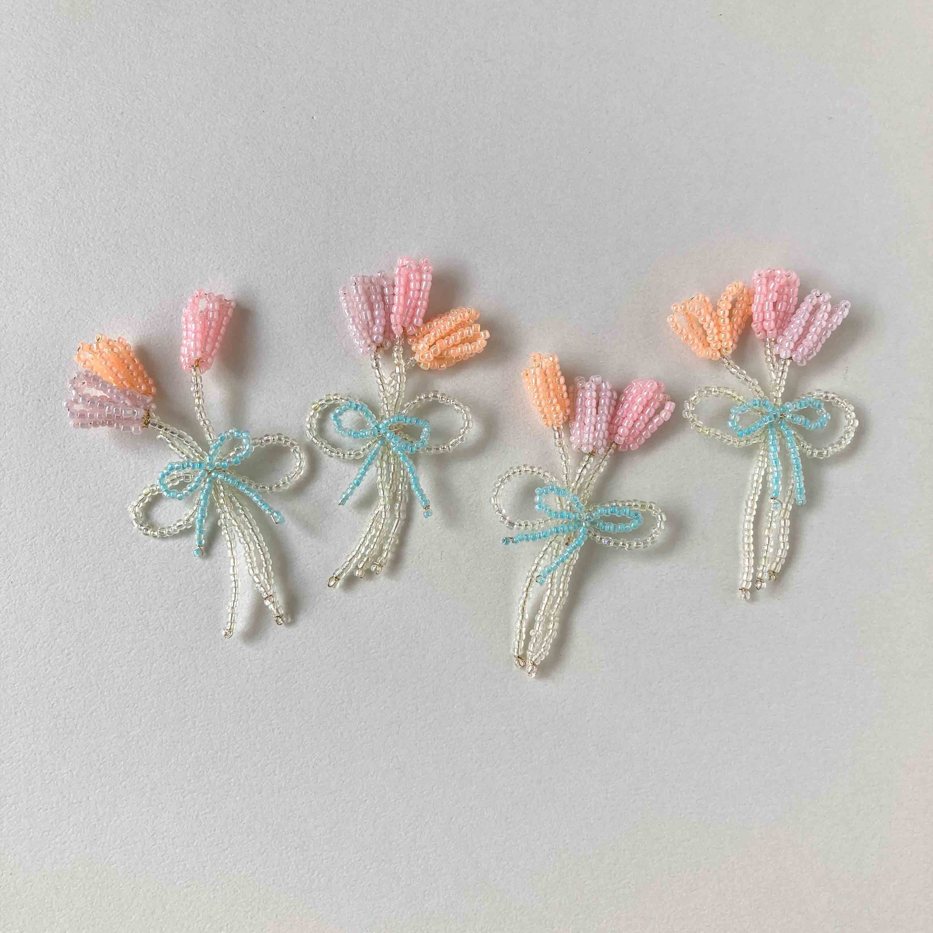 淡いピンクとオレンジのチューリップが可愛らしいデコパーツ。