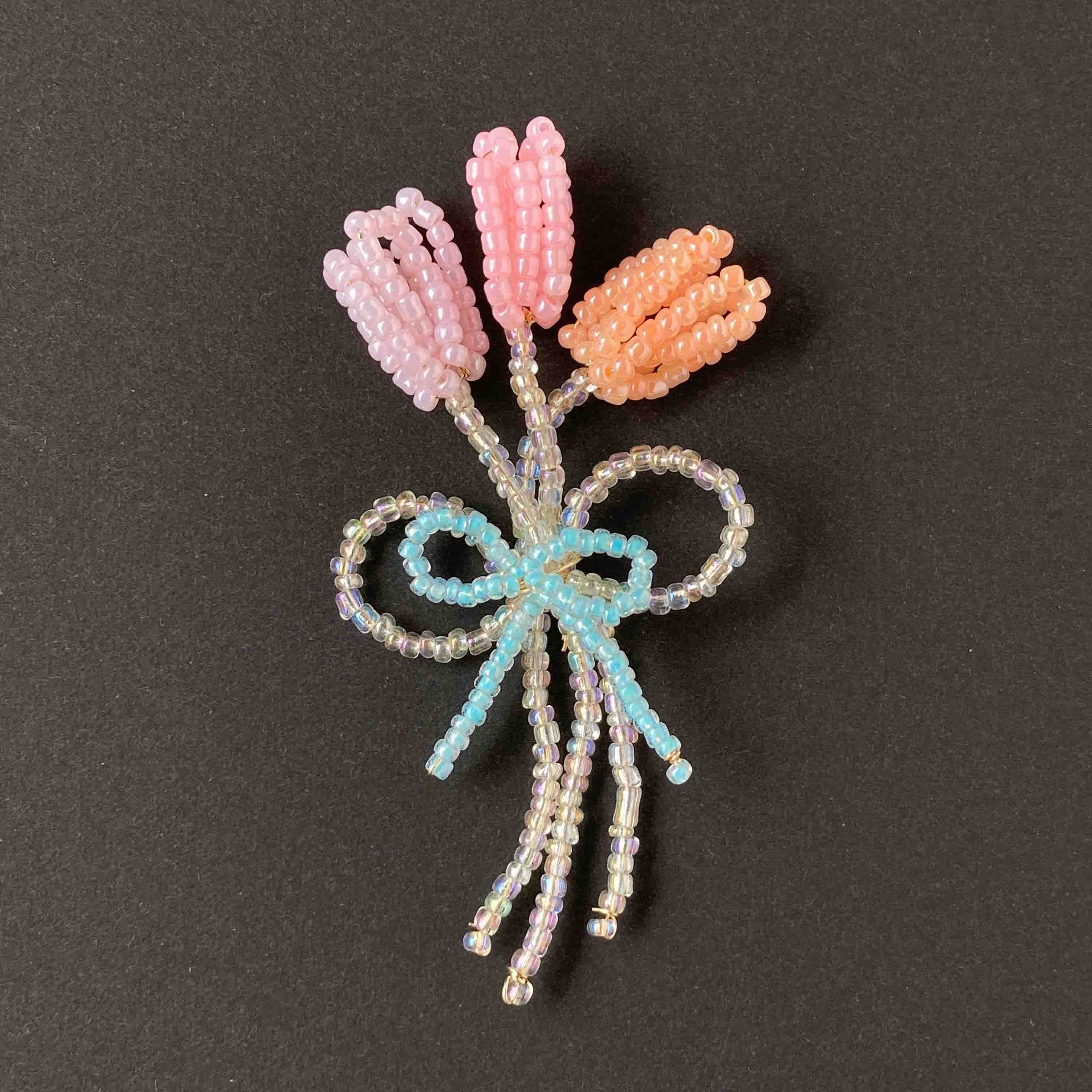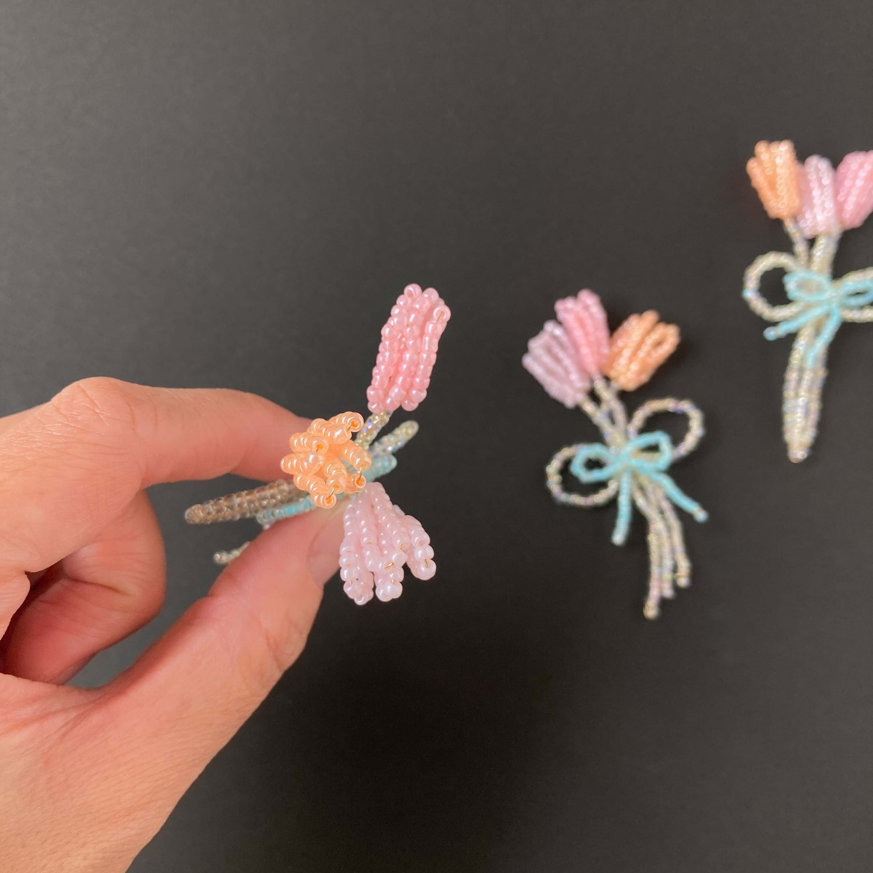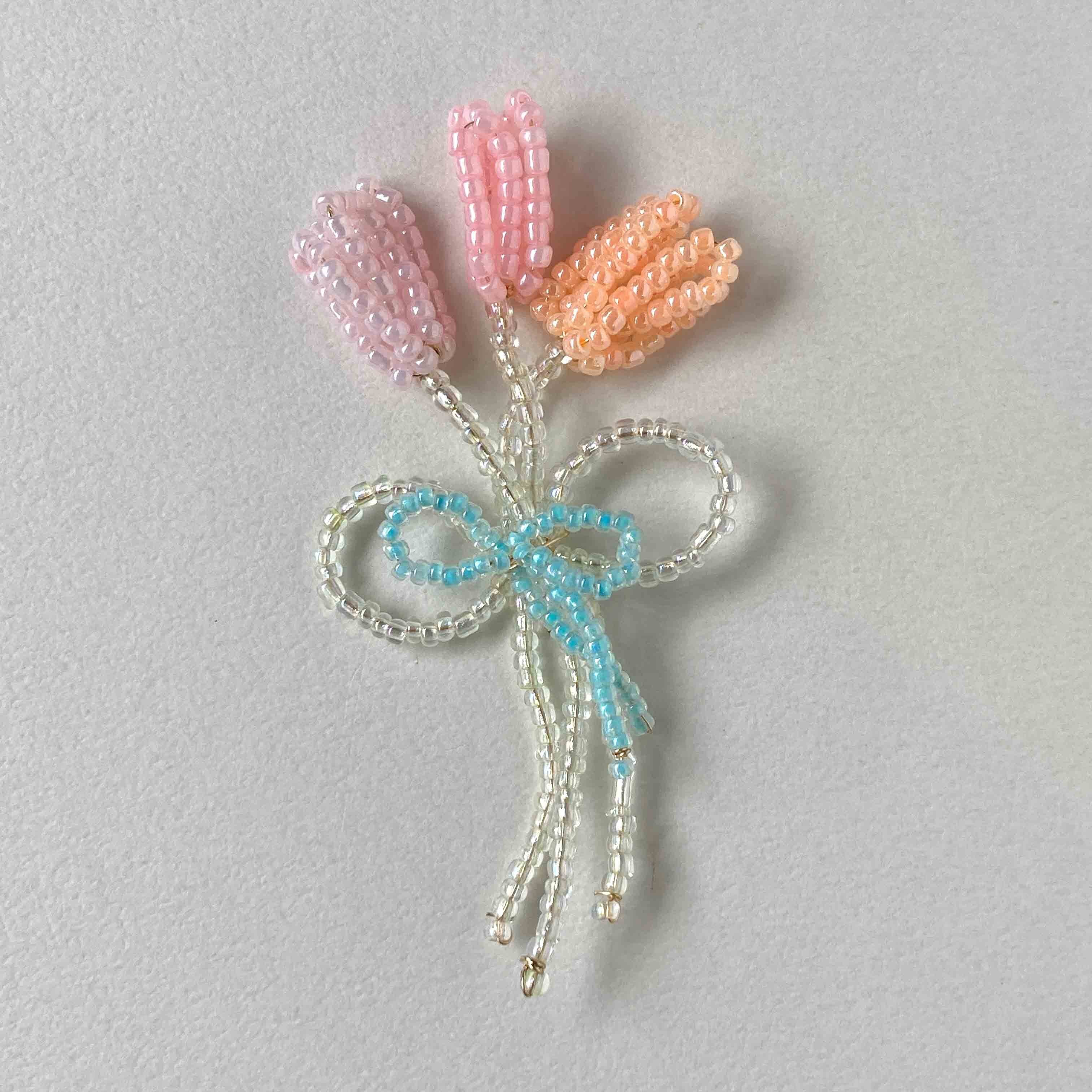 淡いピンクとオレンジのチューリップが可愛らしいデコパーツ。