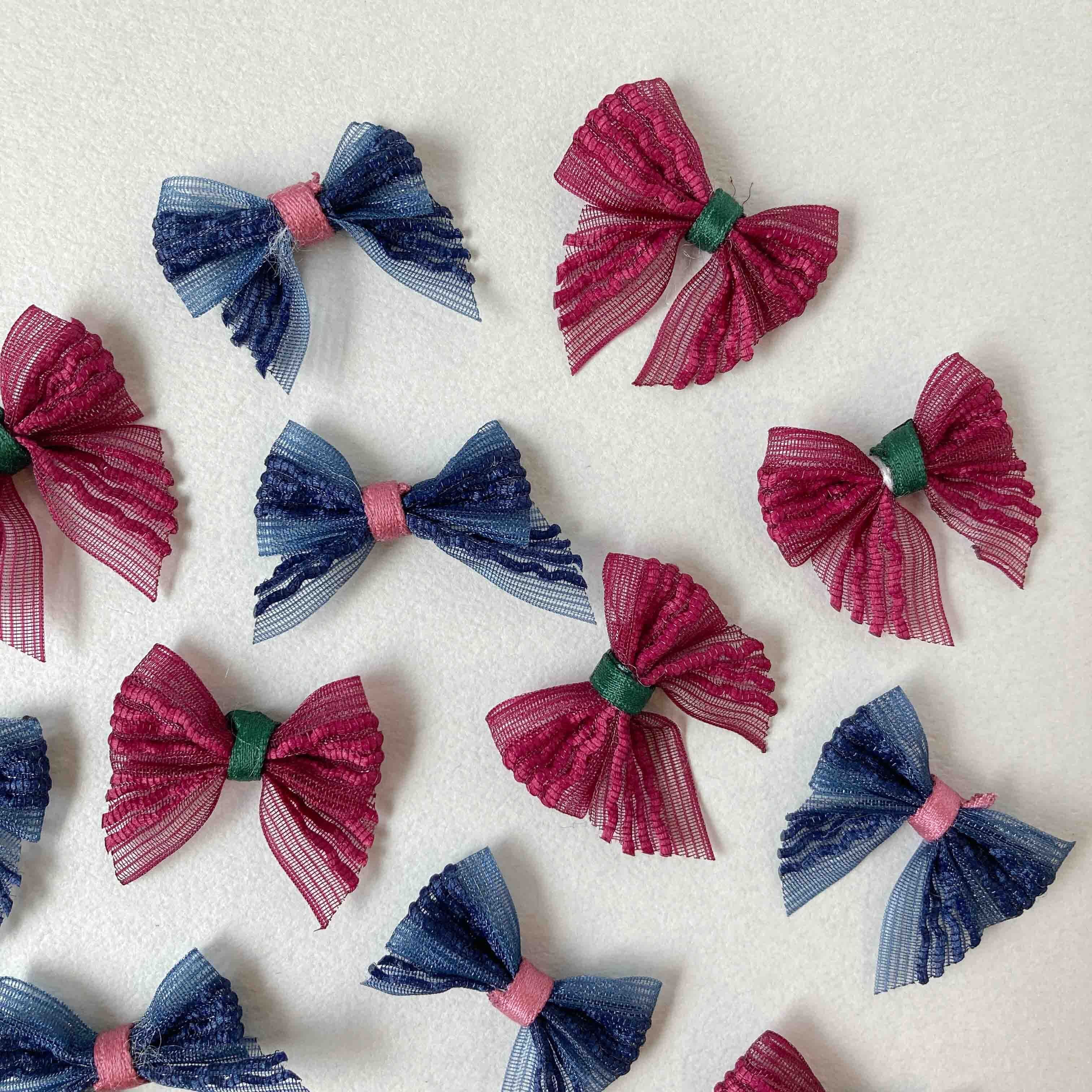 中央リボンの端糸のほつれ、左右非対称な形、型にややクセがついている場合がございます。