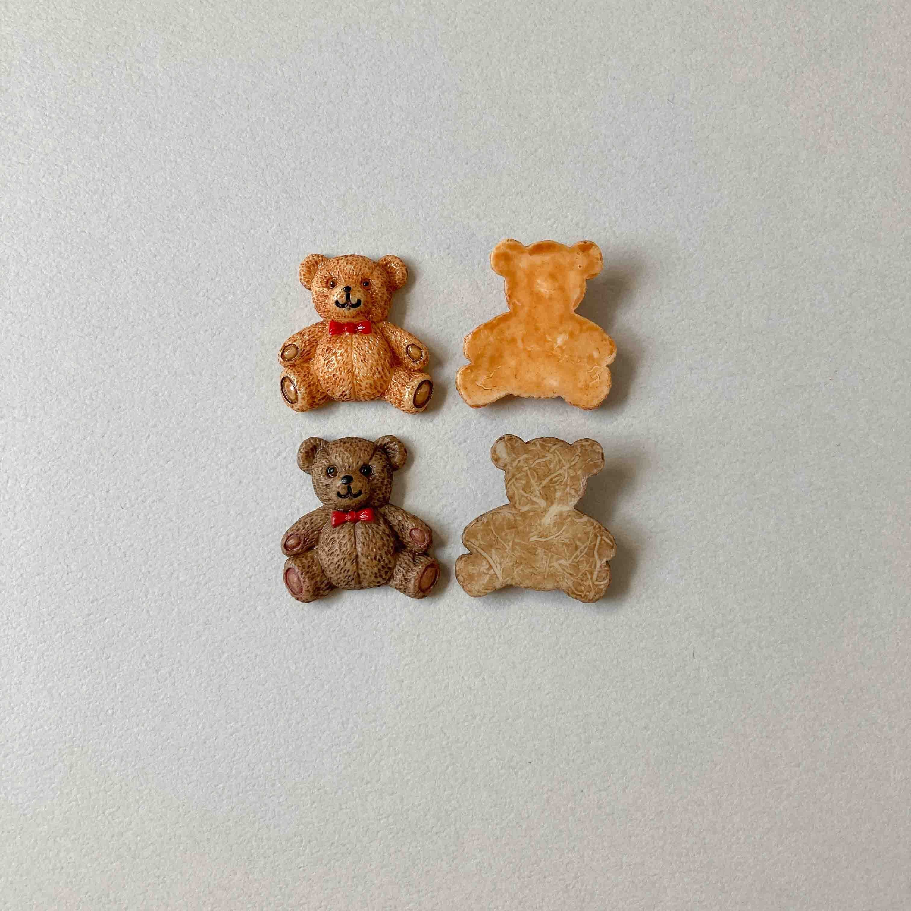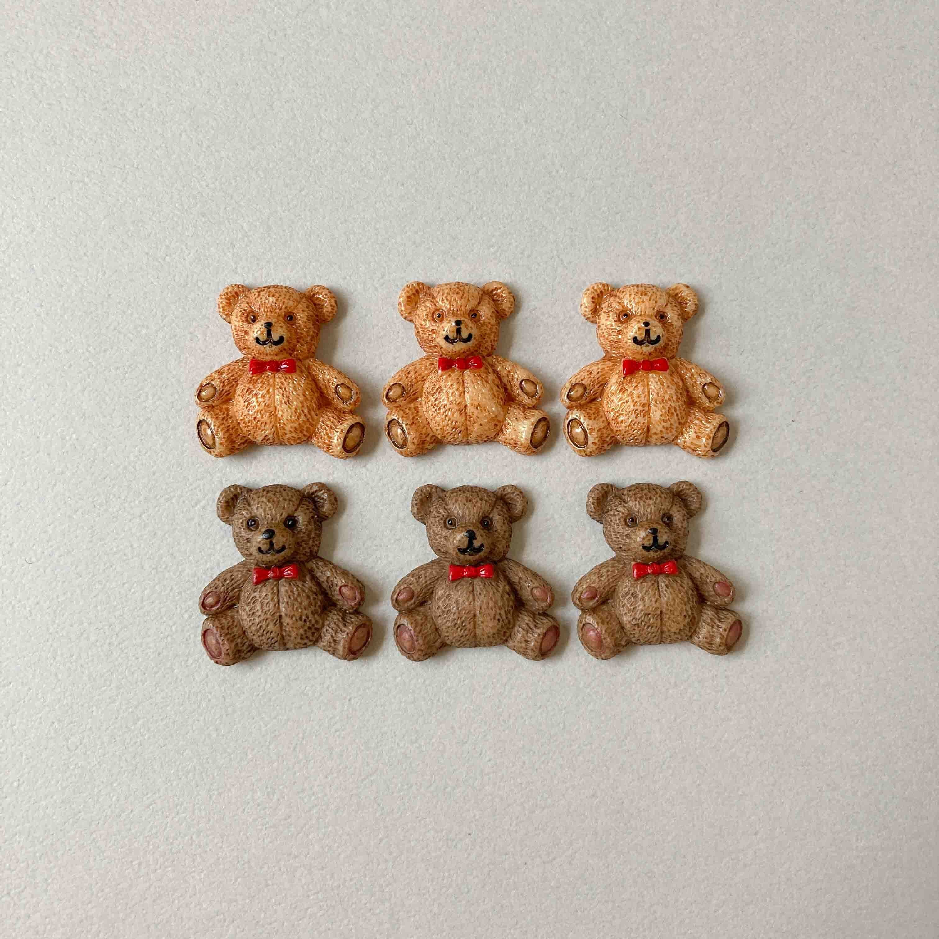 赤いリボンでおめかしされたテディベアのデコパーツ。