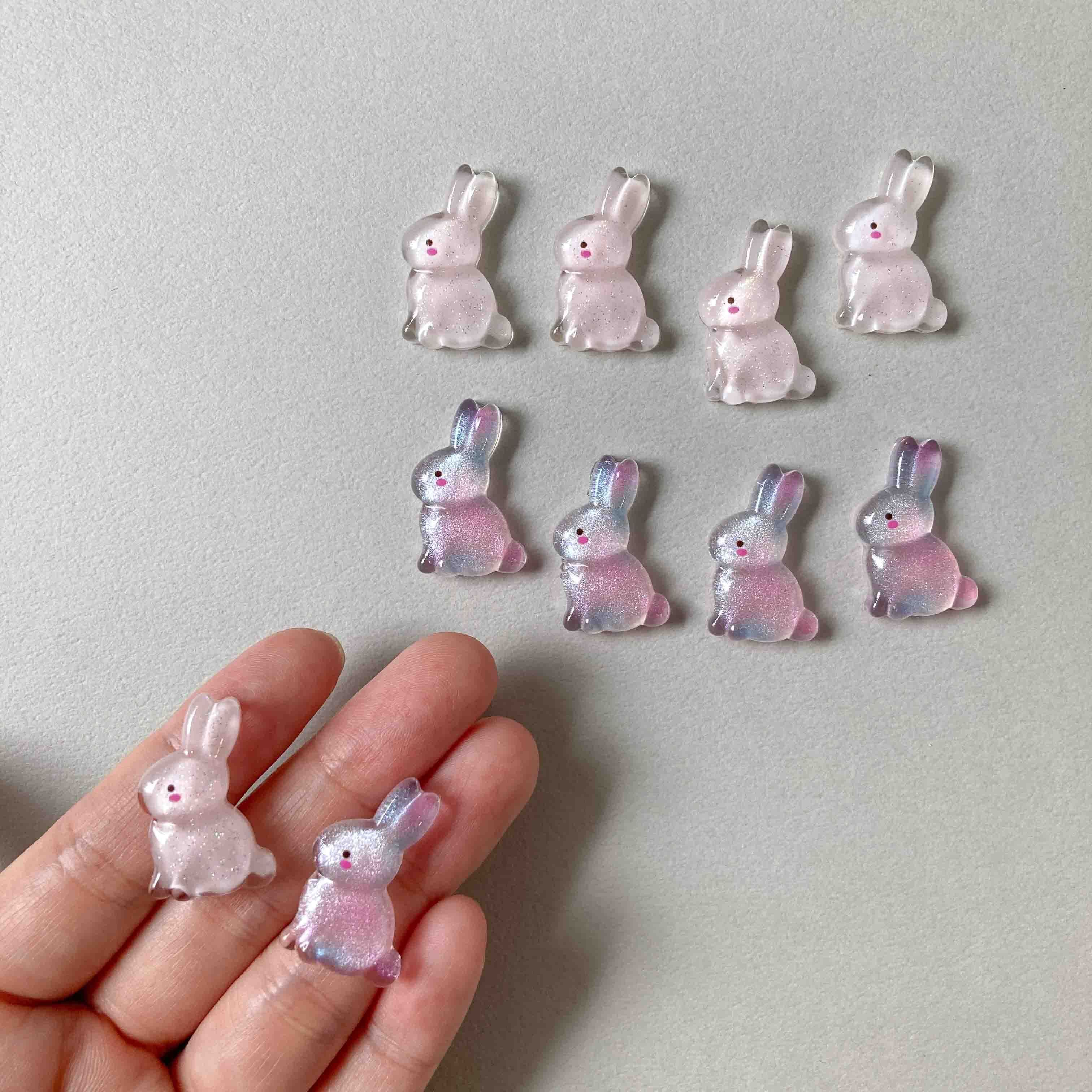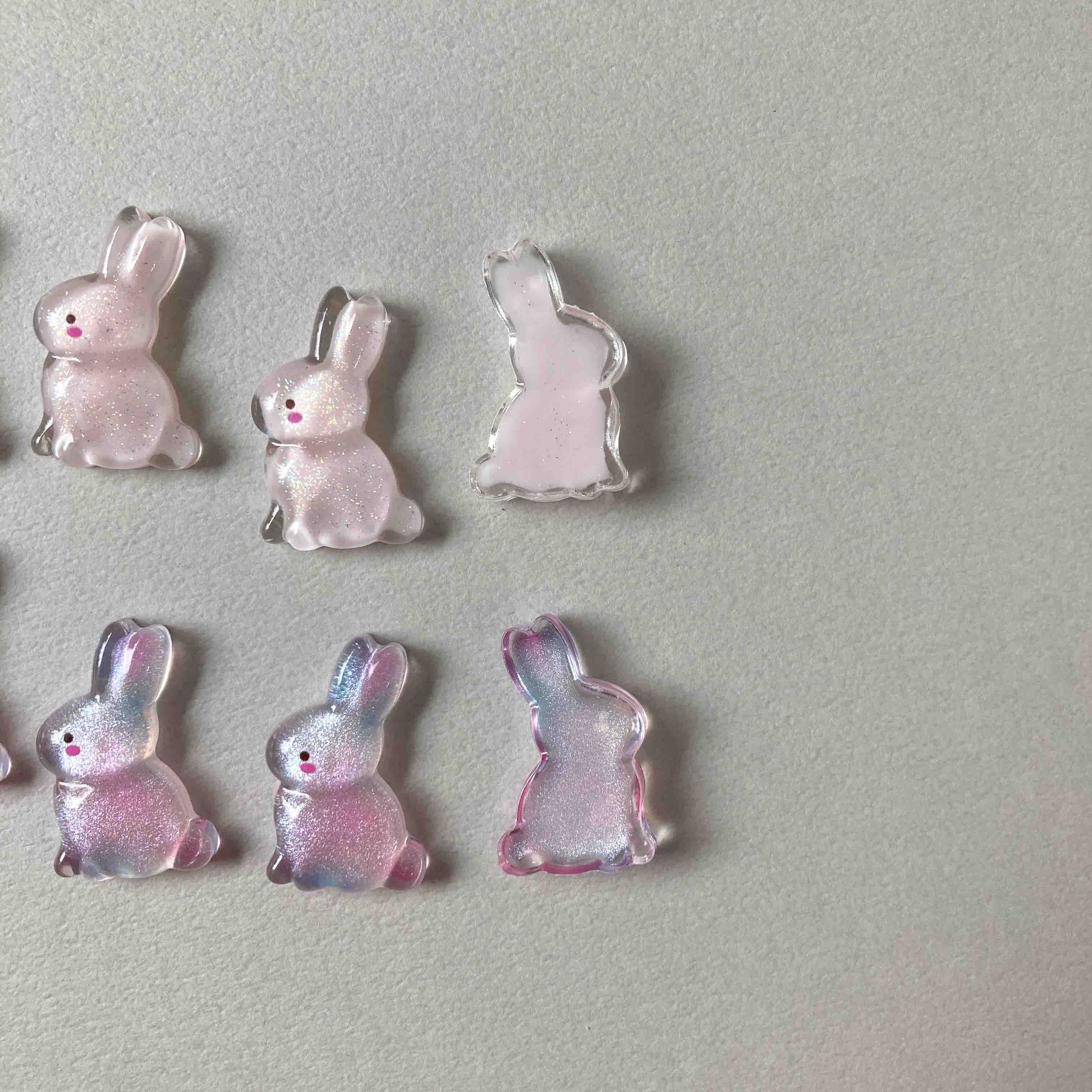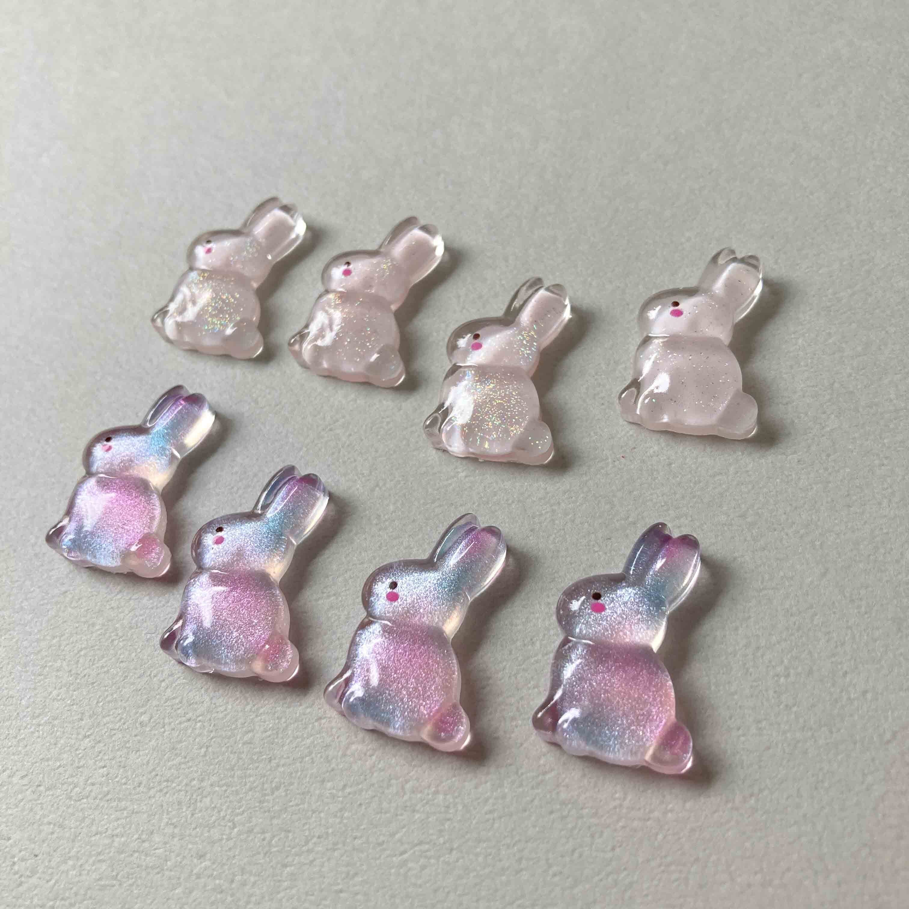 ラメ入りおすわりウサギのぷっくりデコパーツ