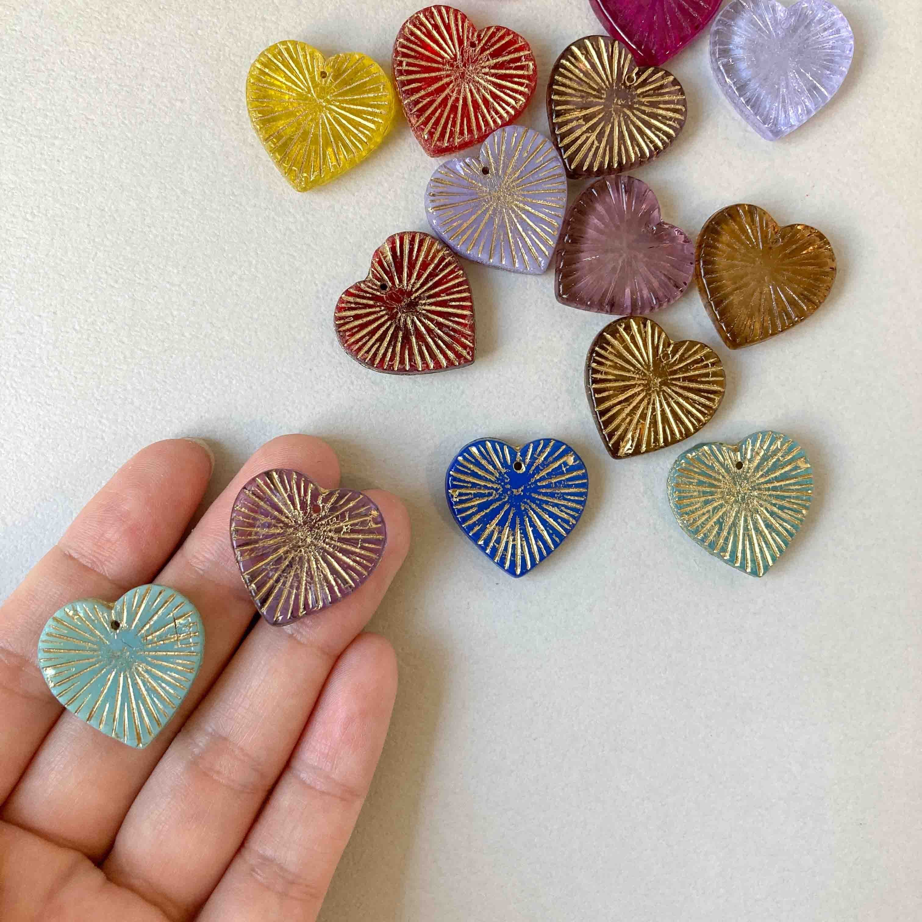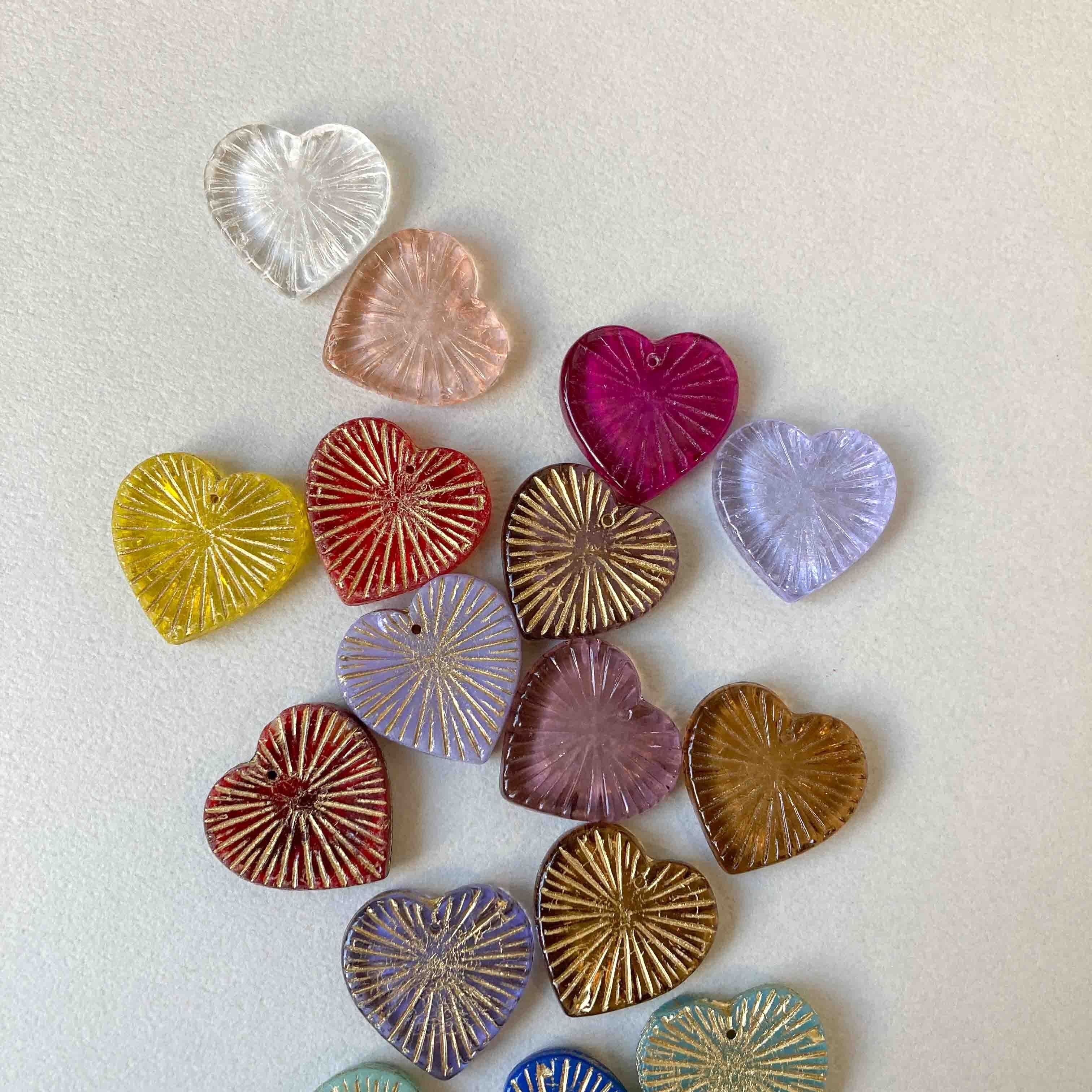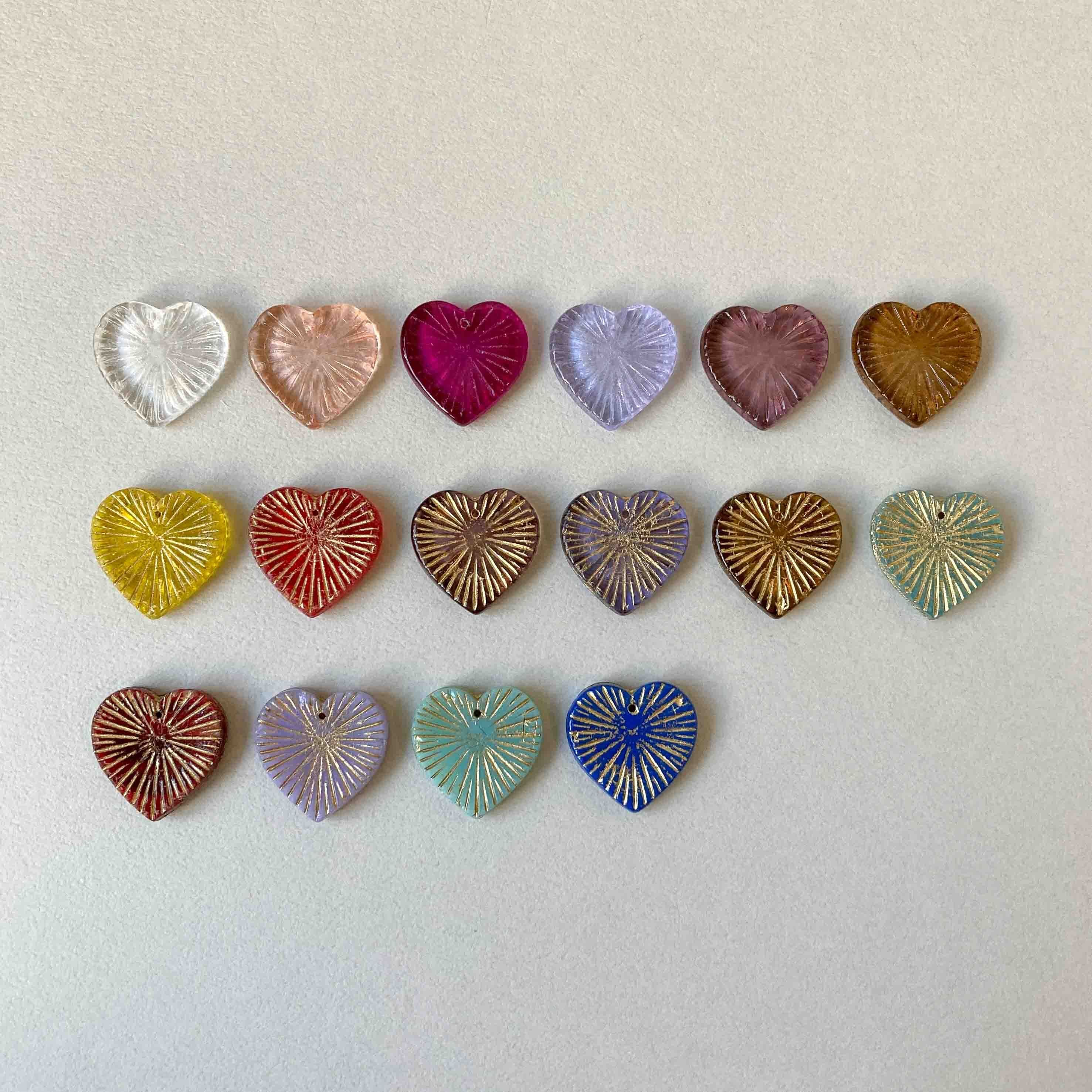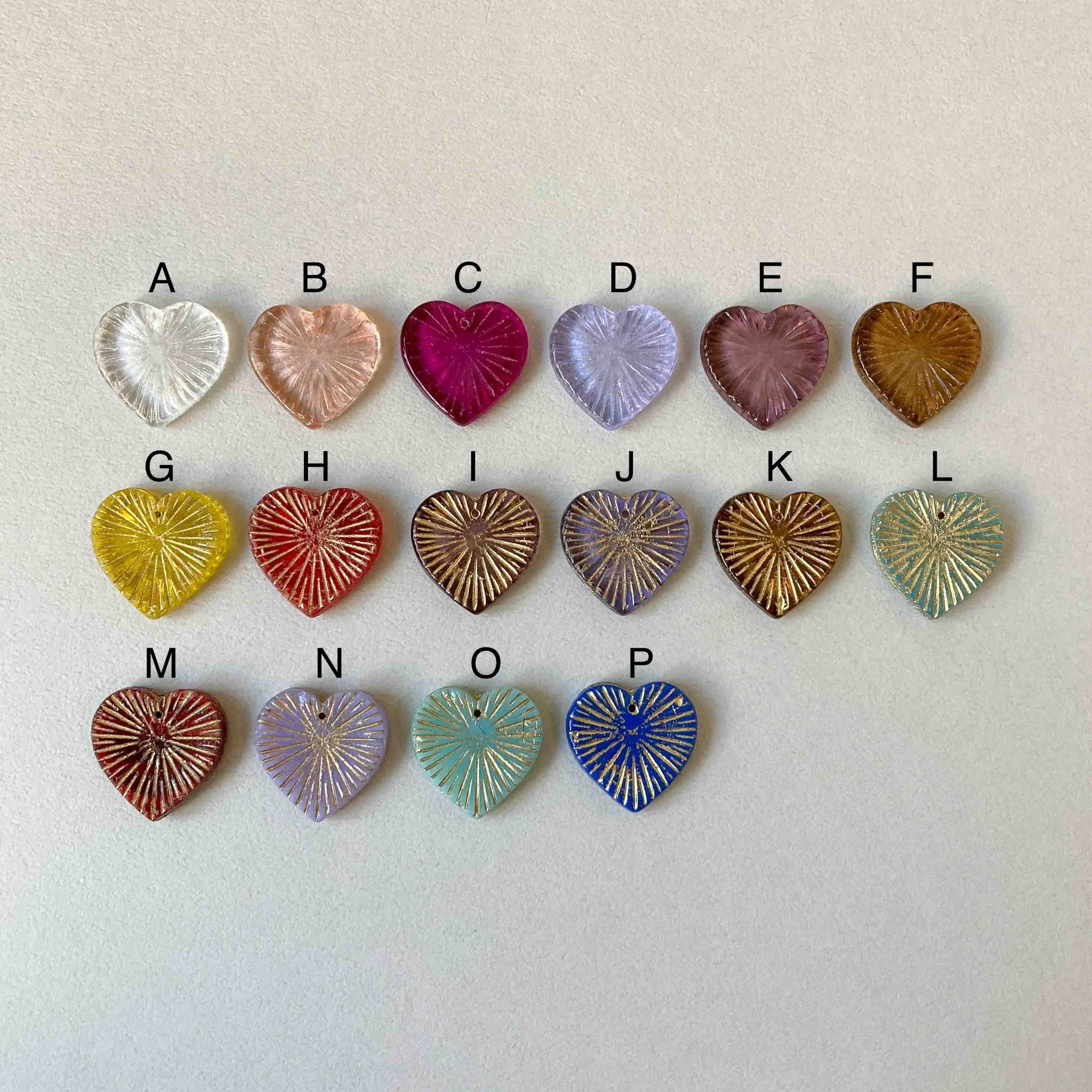 〈新色追加・再入荷〉チェコ放射模様入りハートチャーム