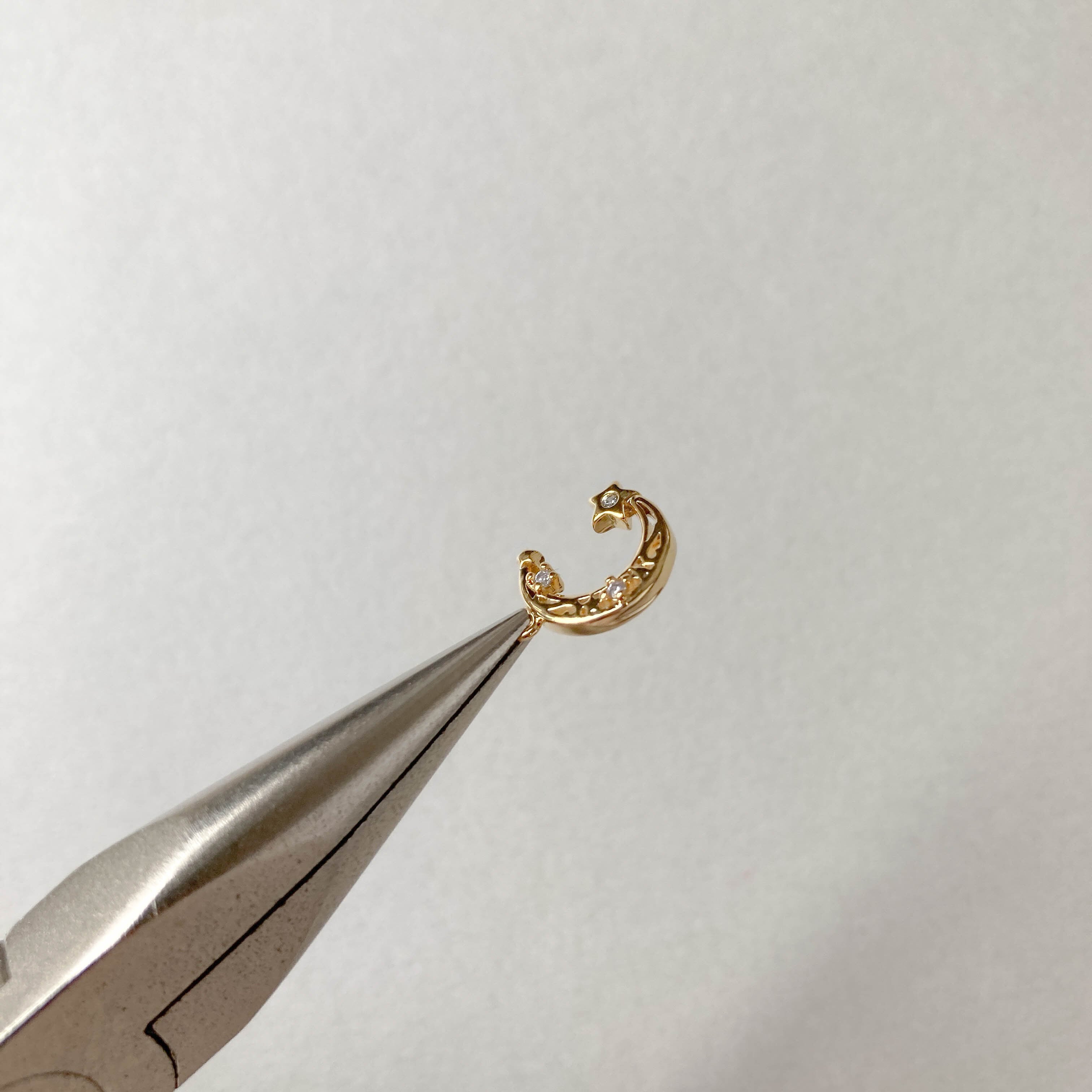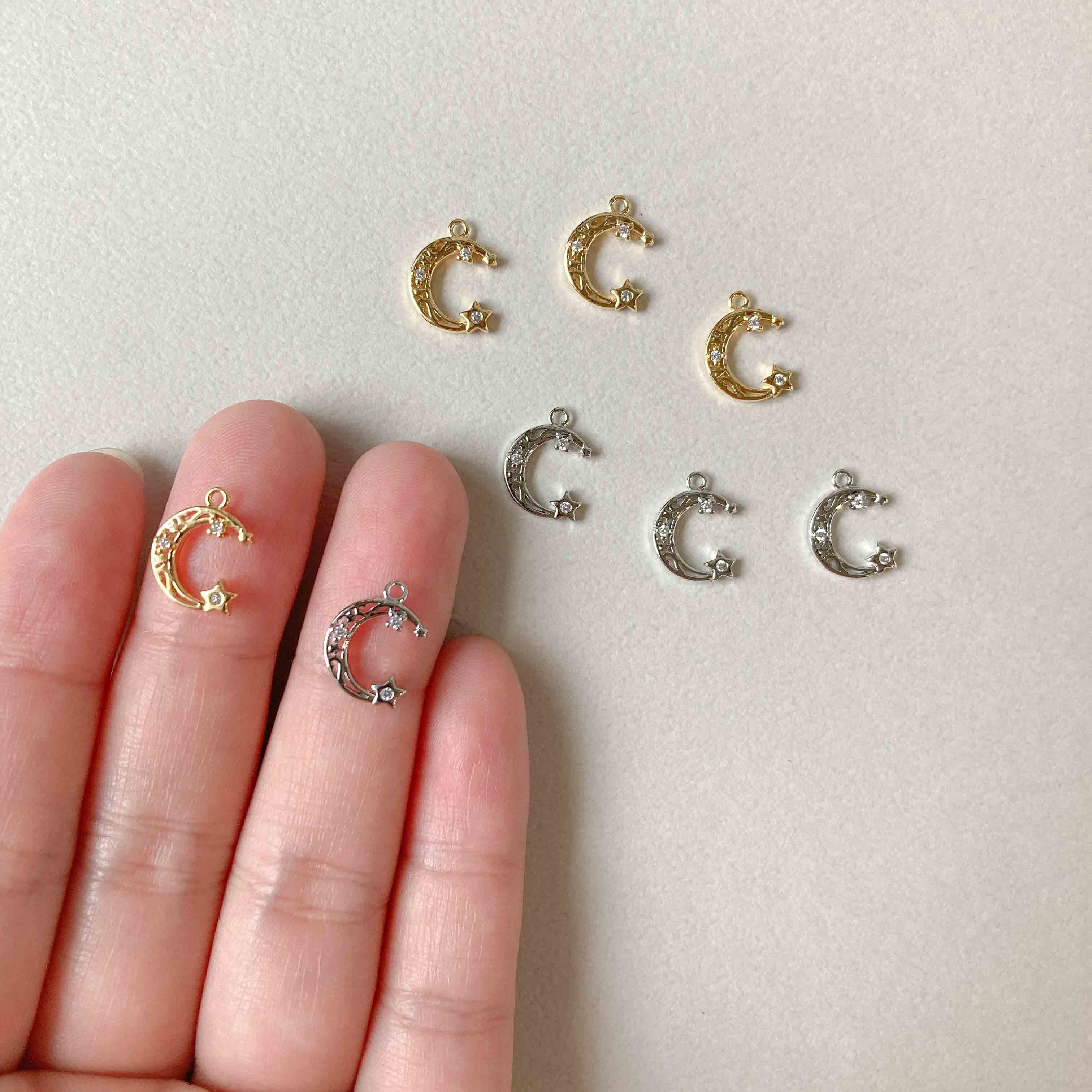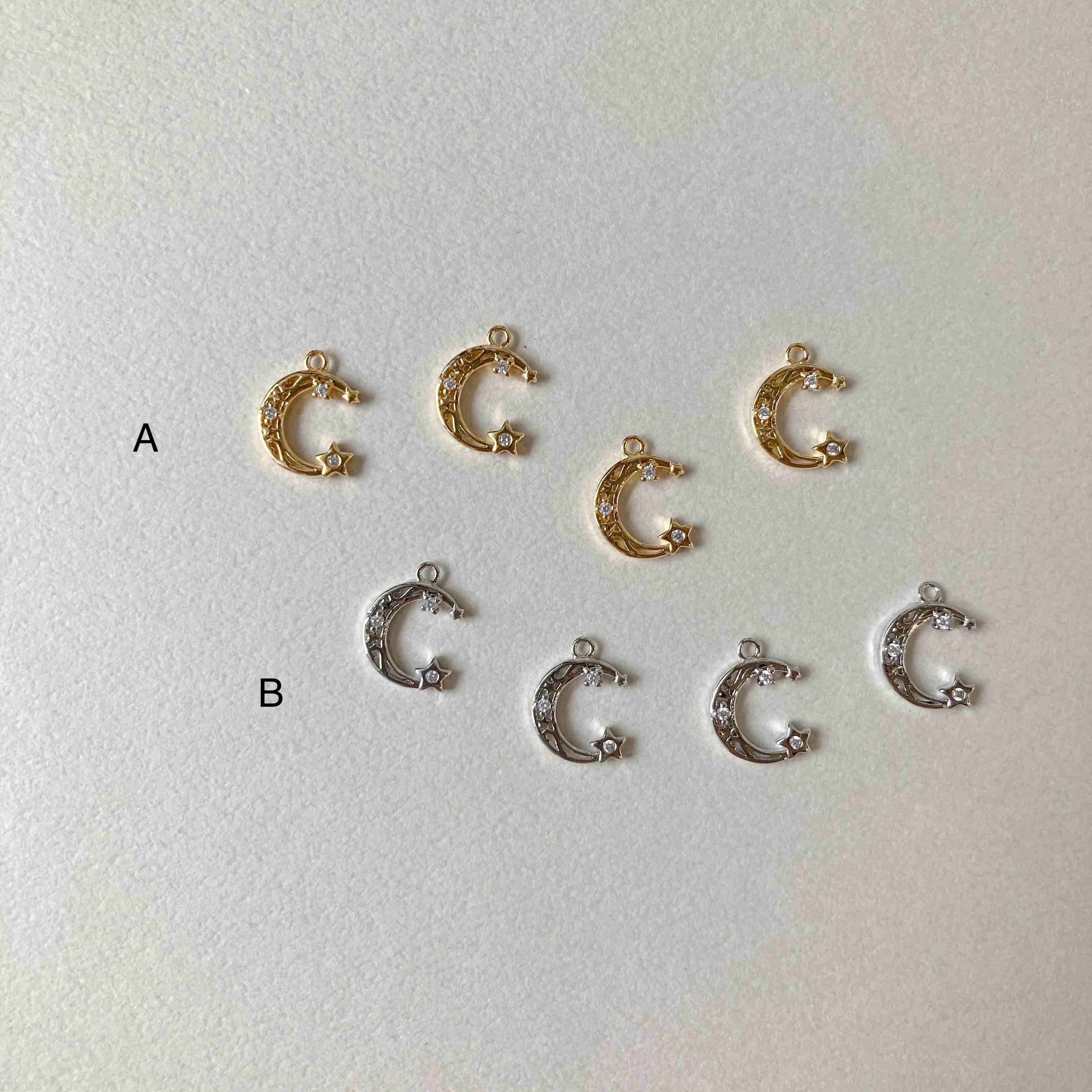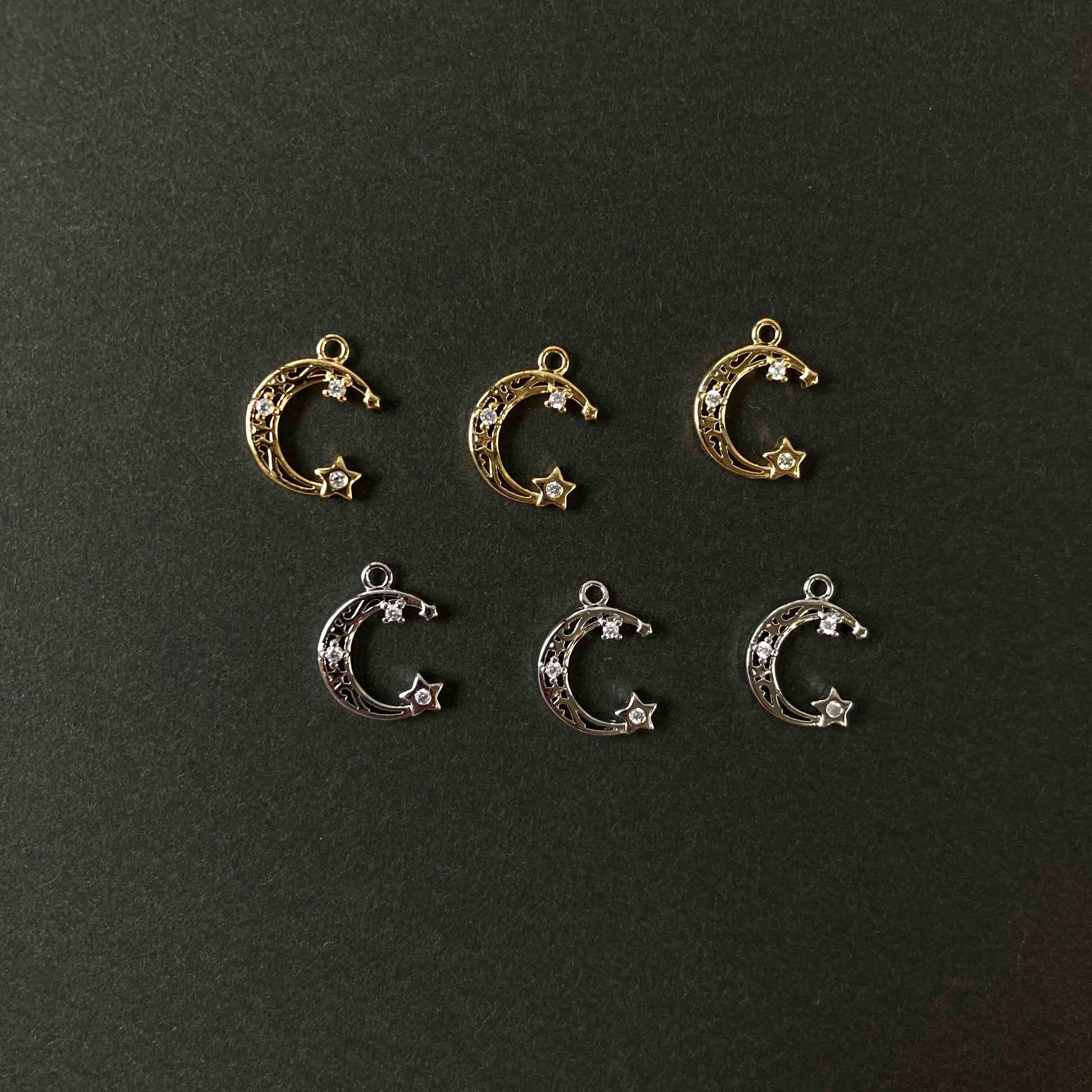 透かし模様月と星モチーフのチャーム(16K/プラチナメッキ)