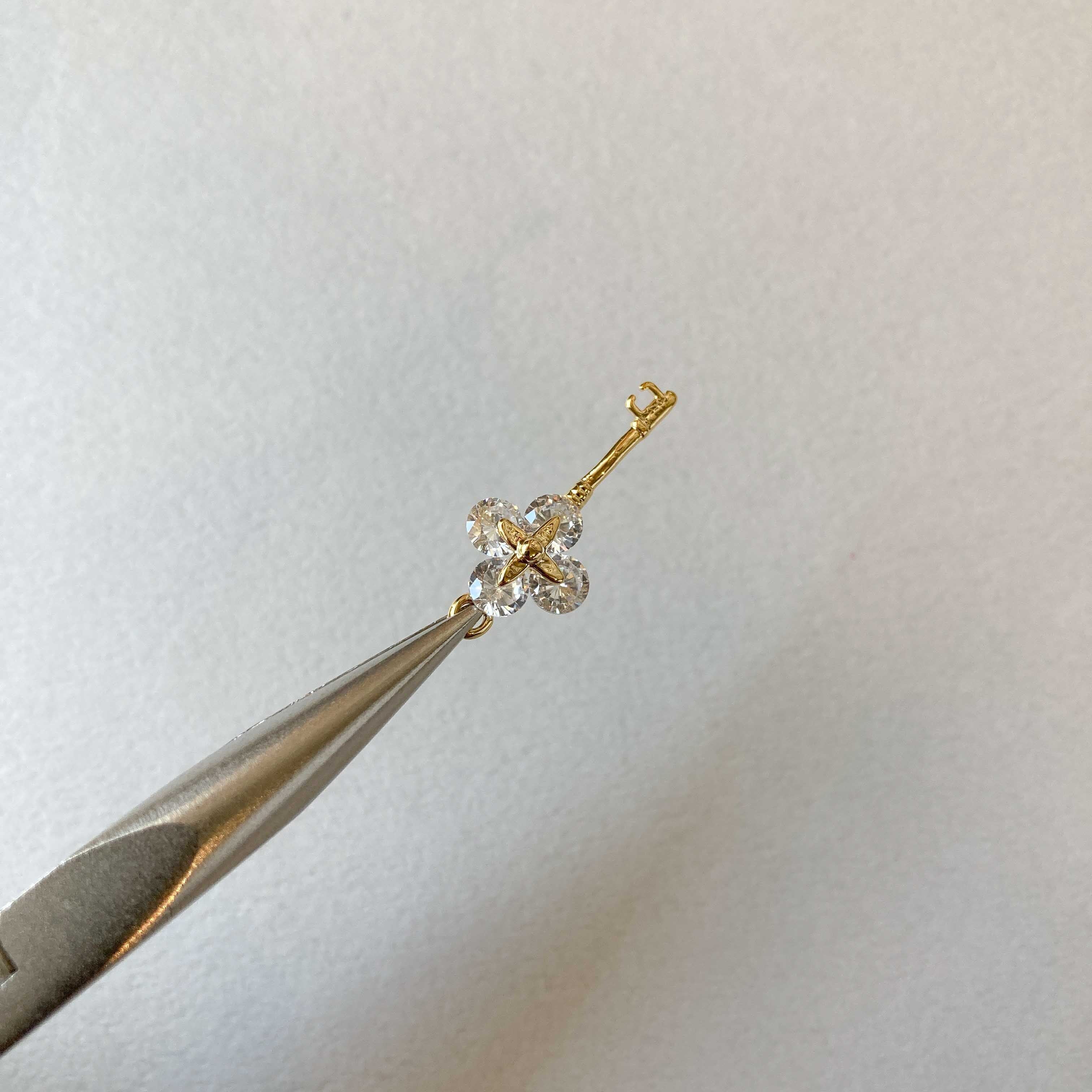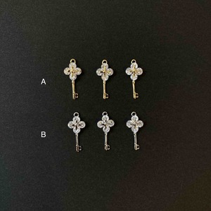 四つ葉ビジューの鍵メタルチャーム(16K/プラチナメッキ)