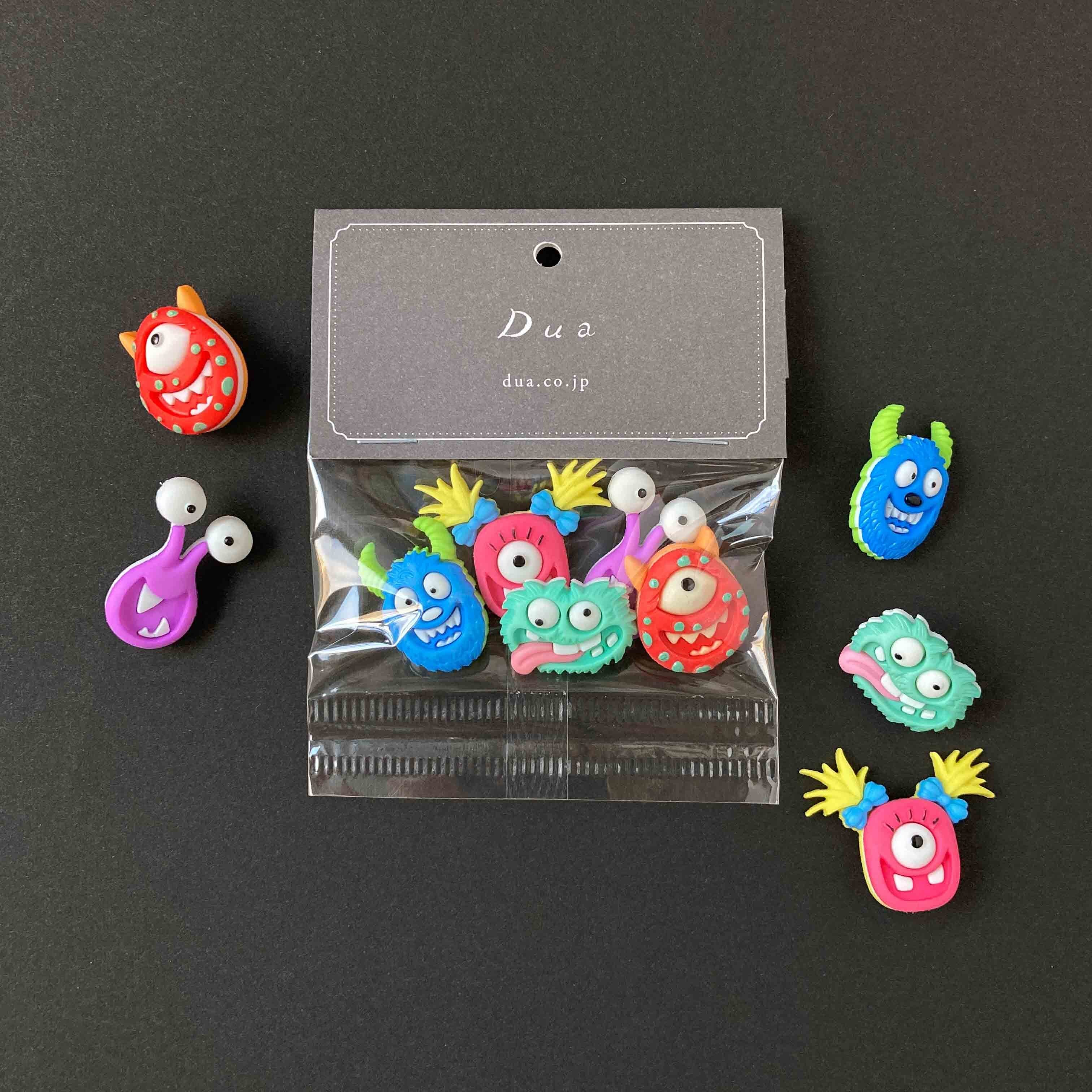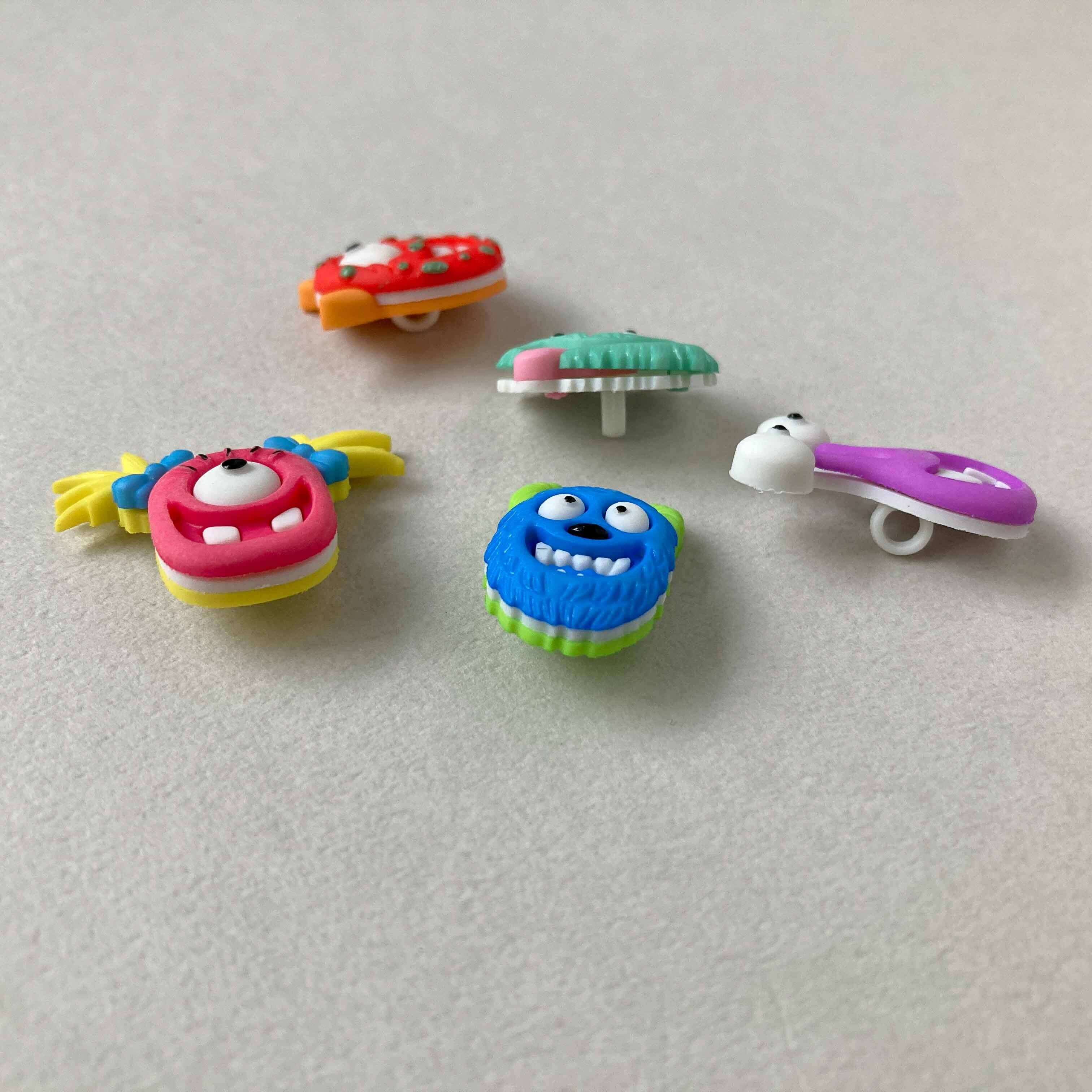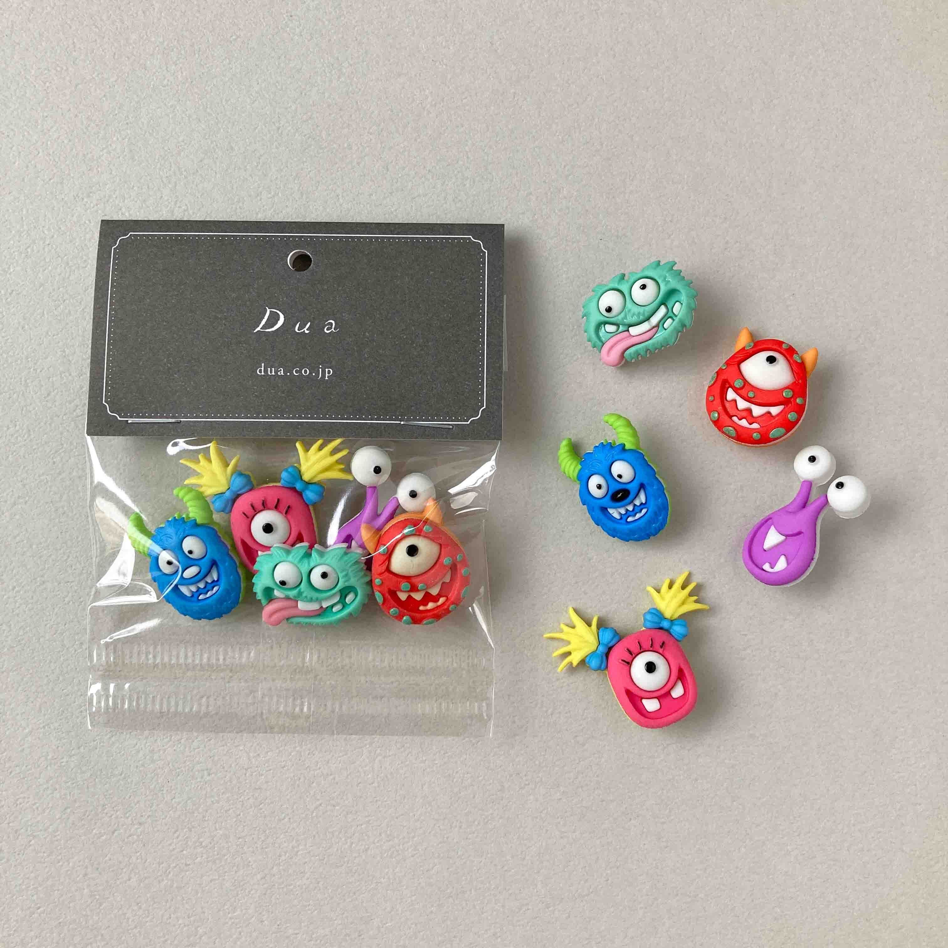 ポップな5匹のモンスターたちが可愛らしいボタンセットです。