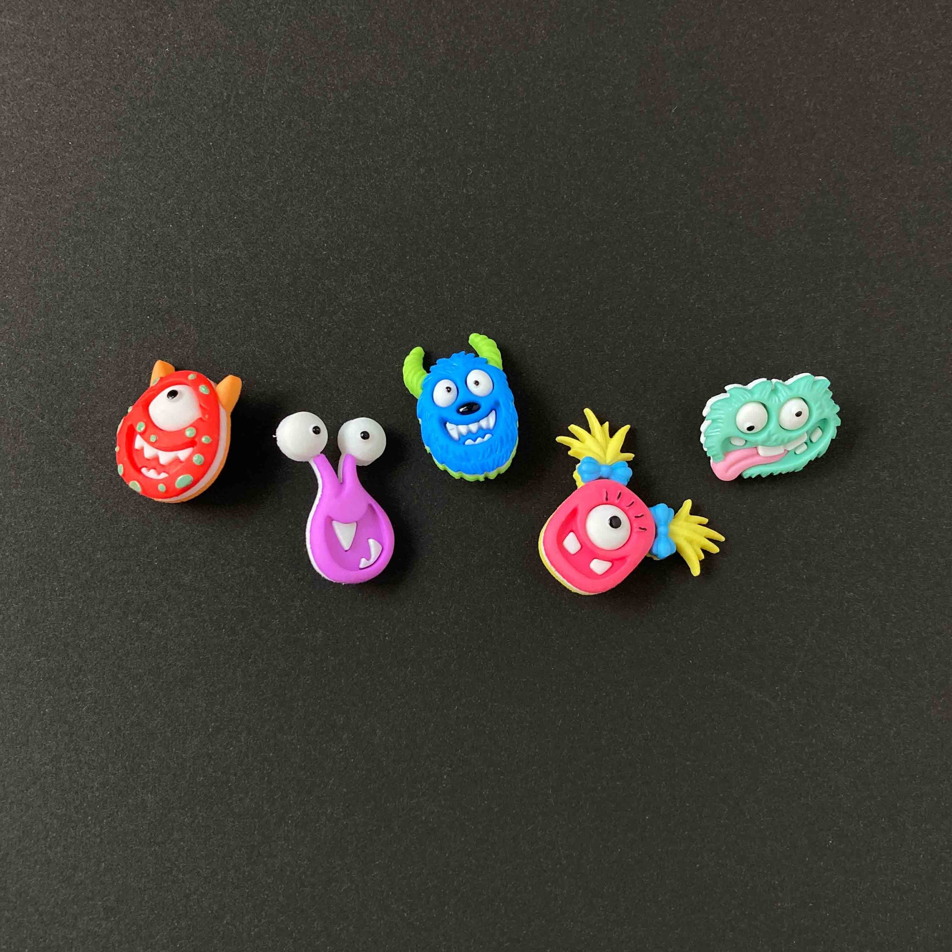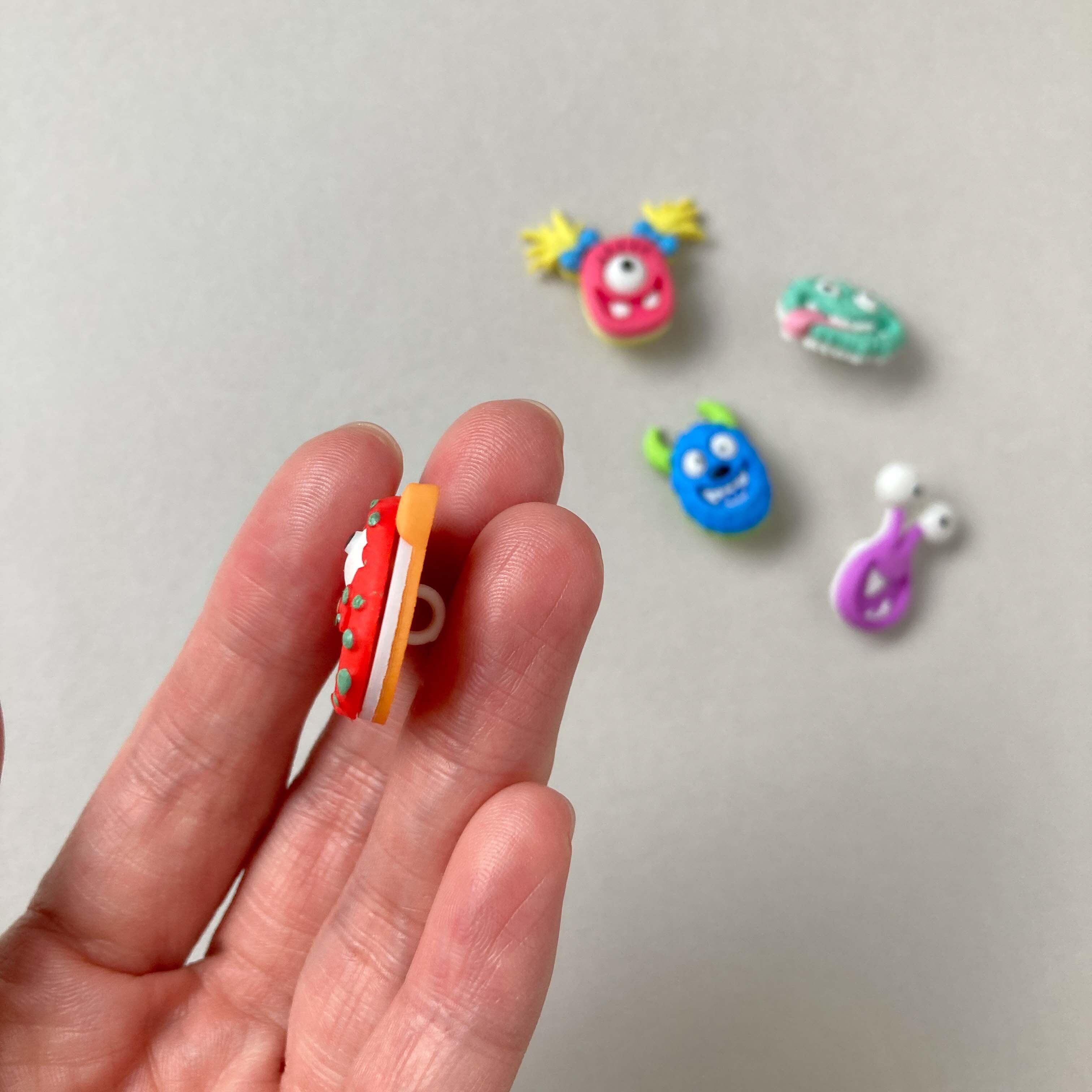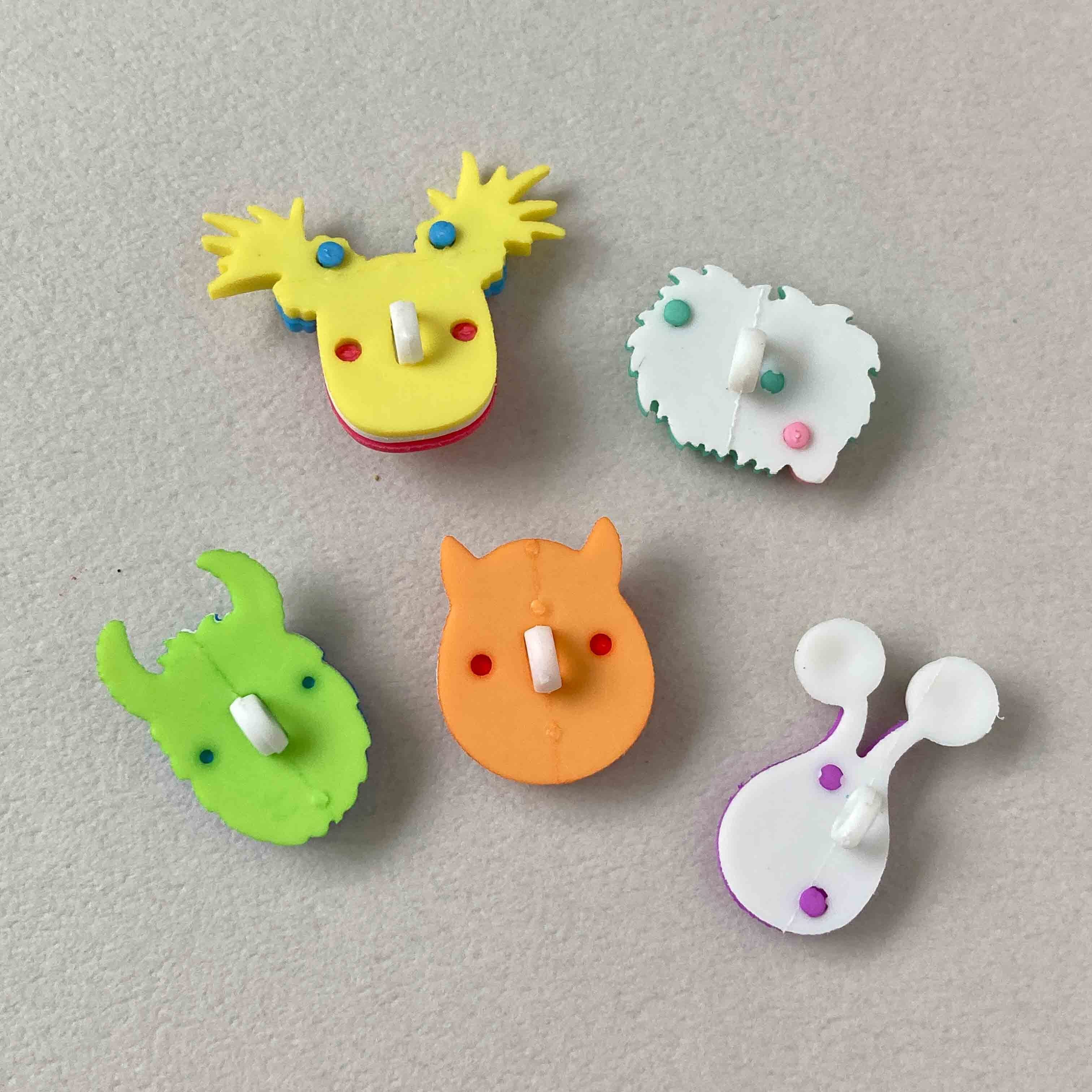 ポップな5匹のモンスターたちが可愛らしいボタンセットです。