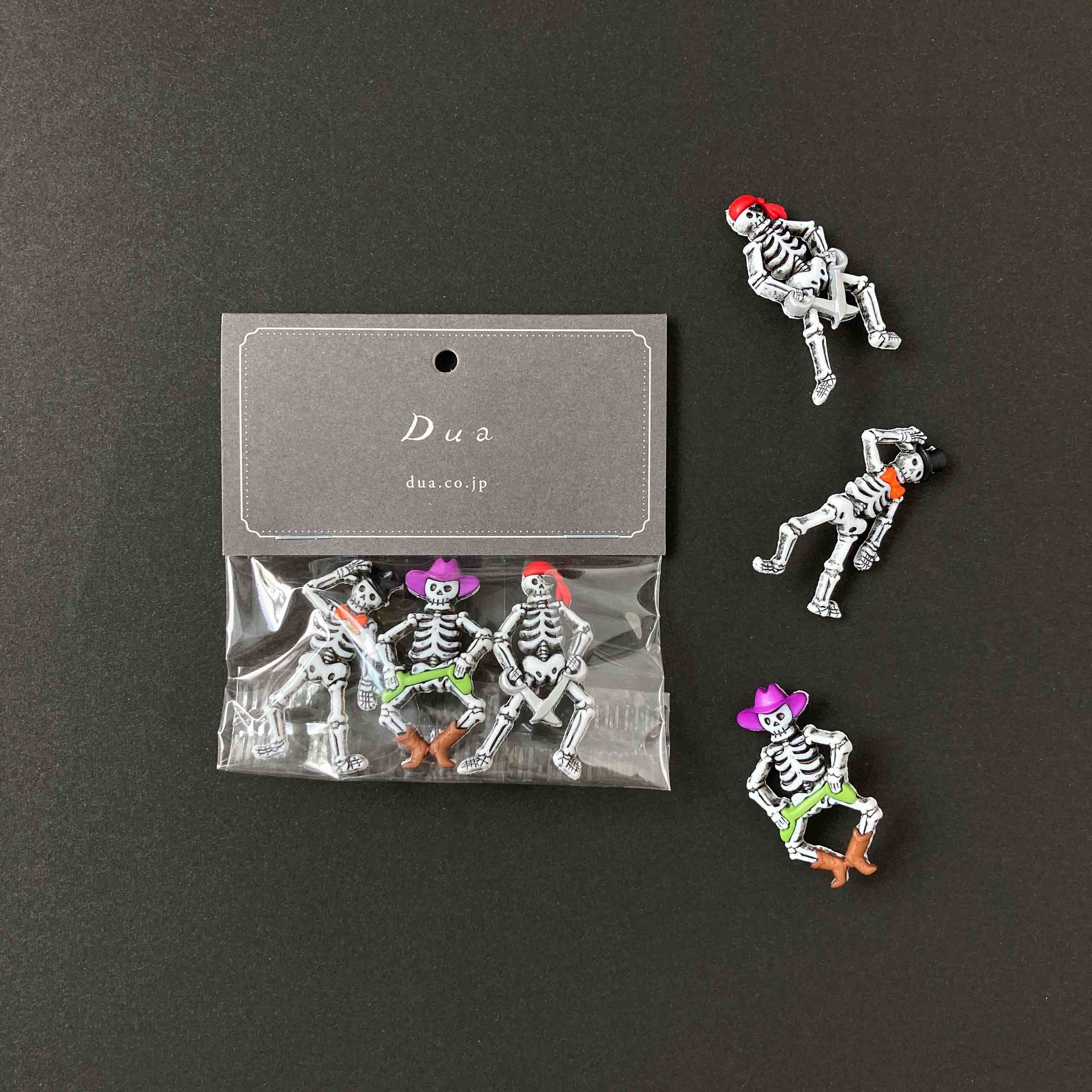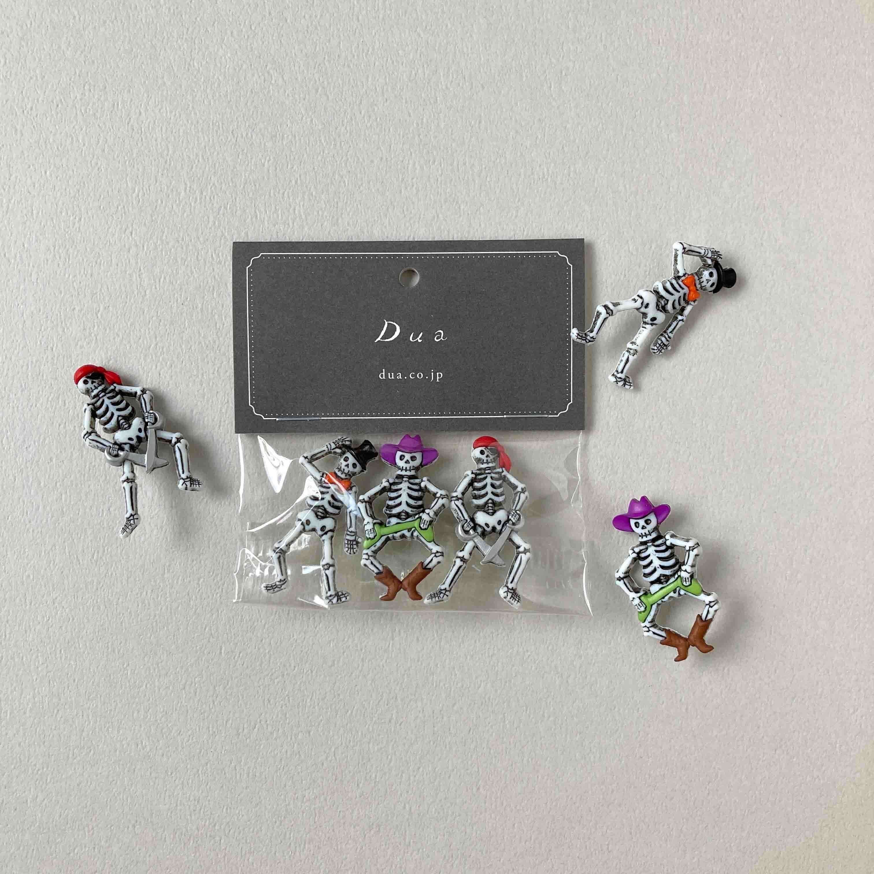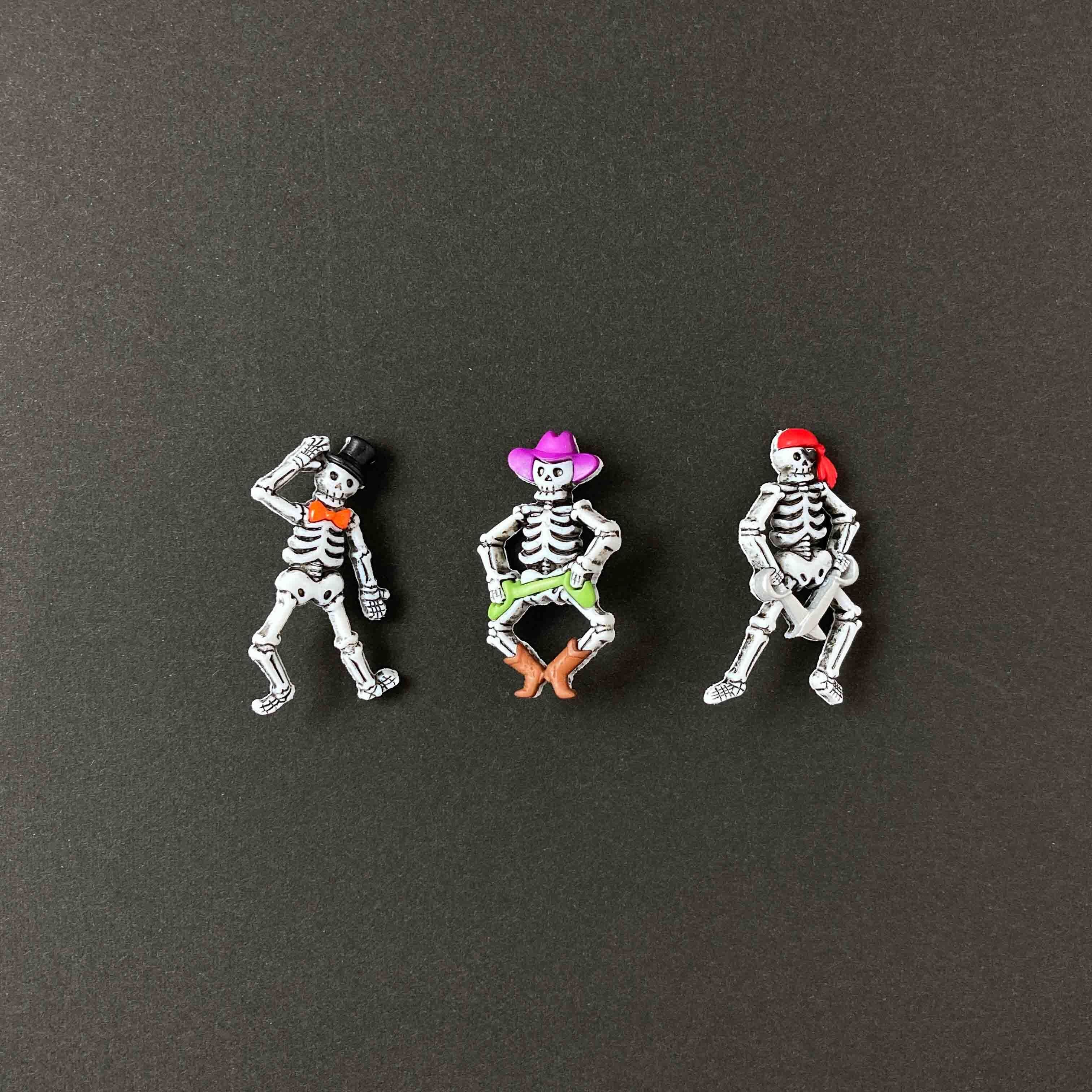 海賊やマジシャンなど、愉快な雰囲気のガイコツたちのボタンです。