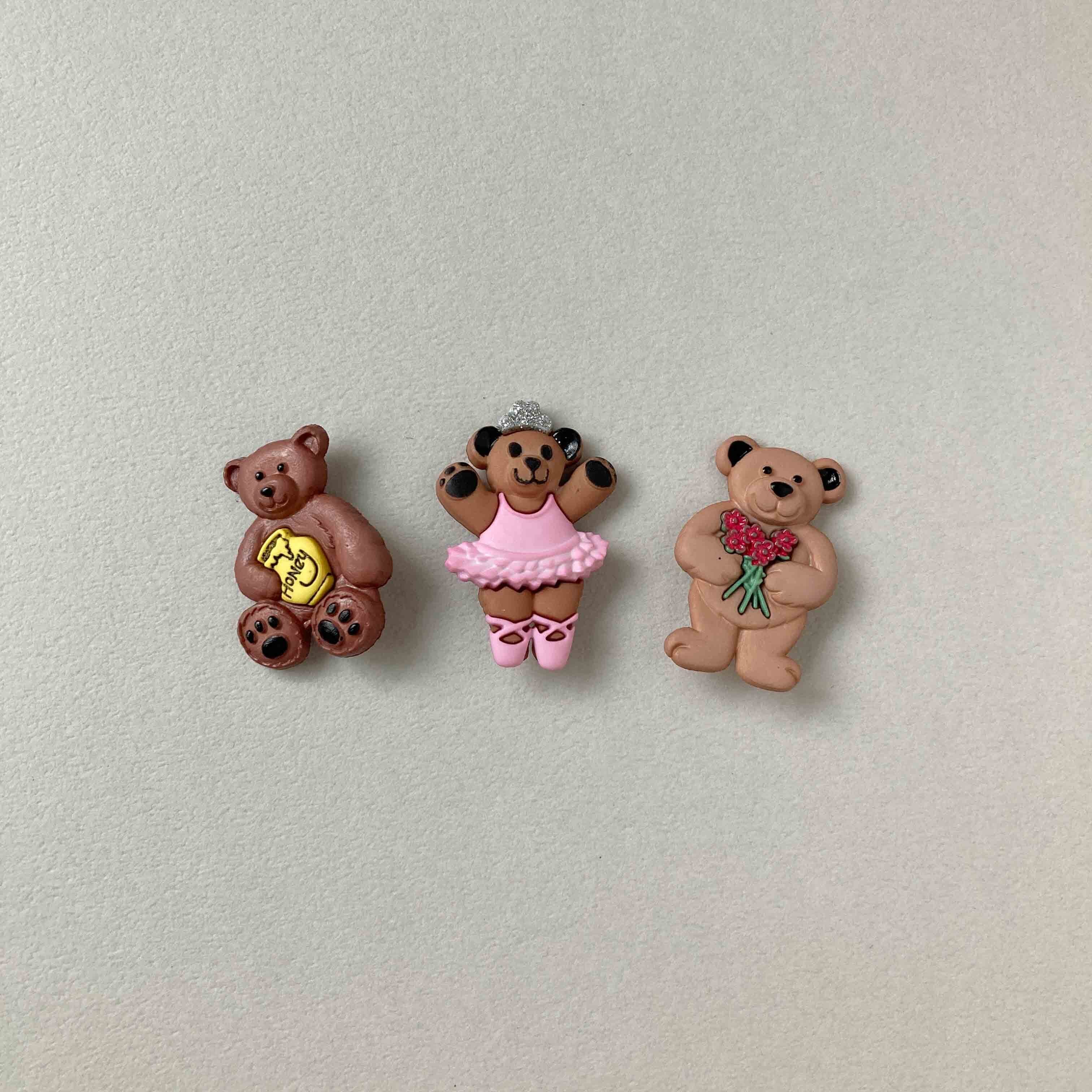 ■サイズ(縦×横×厚み/奥行):花を持ったクマ約35×23×10mm