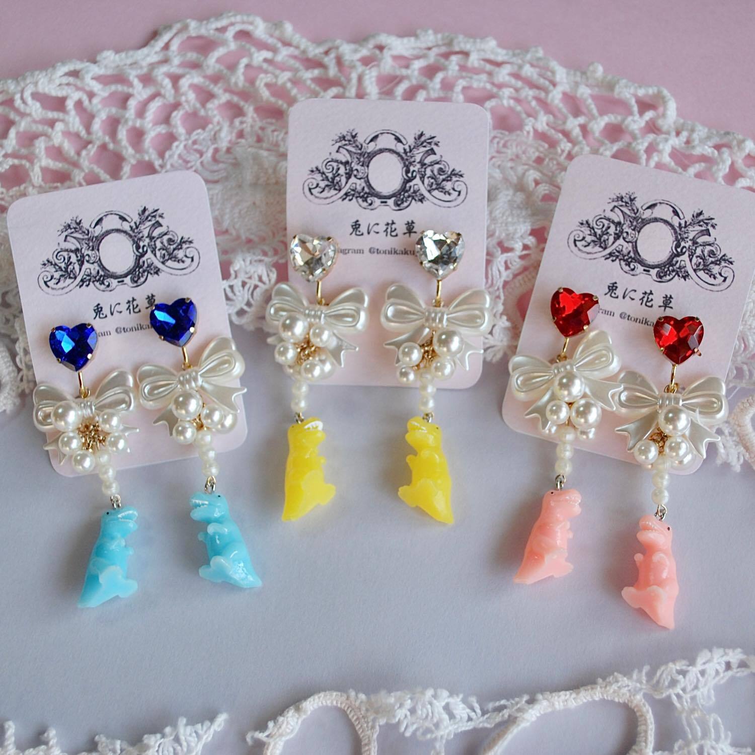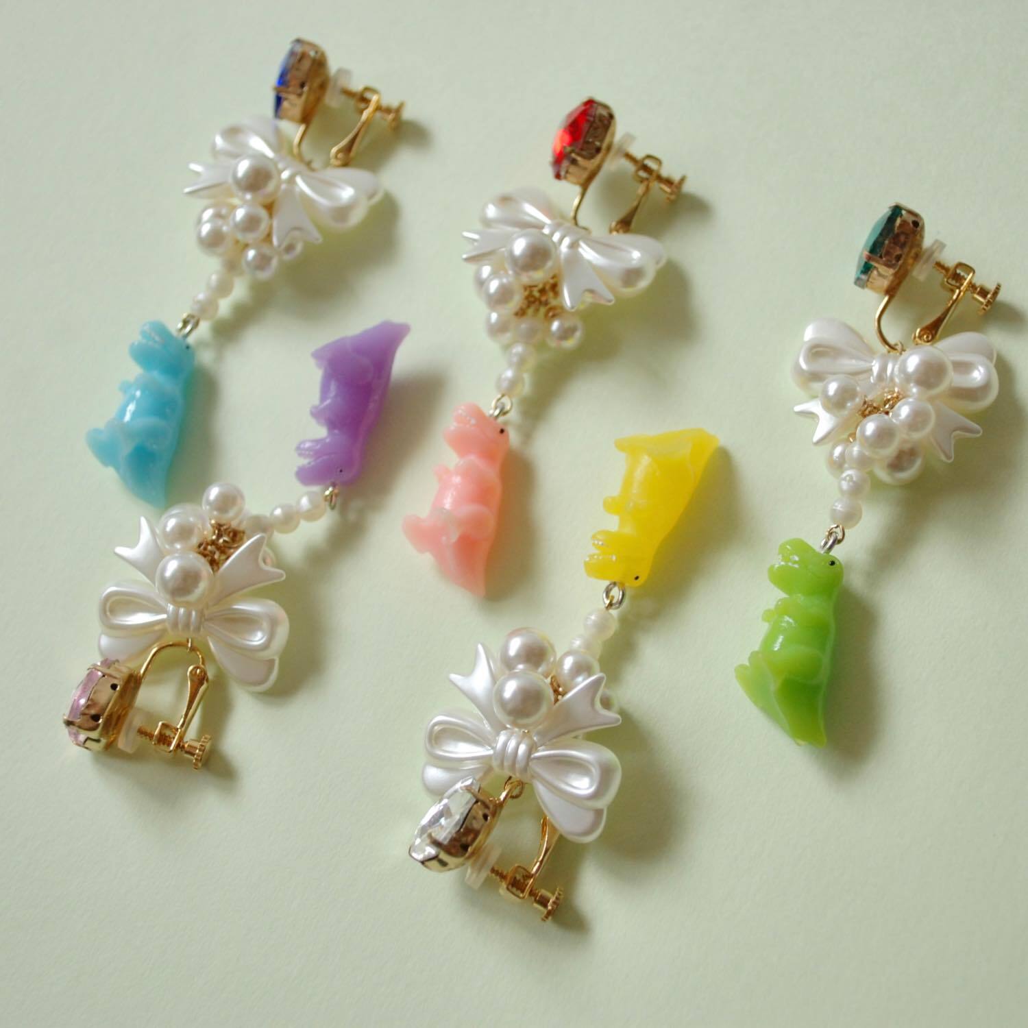 砂糖菓子の様にポップカラーがキュートな恐竜のイヤリング。