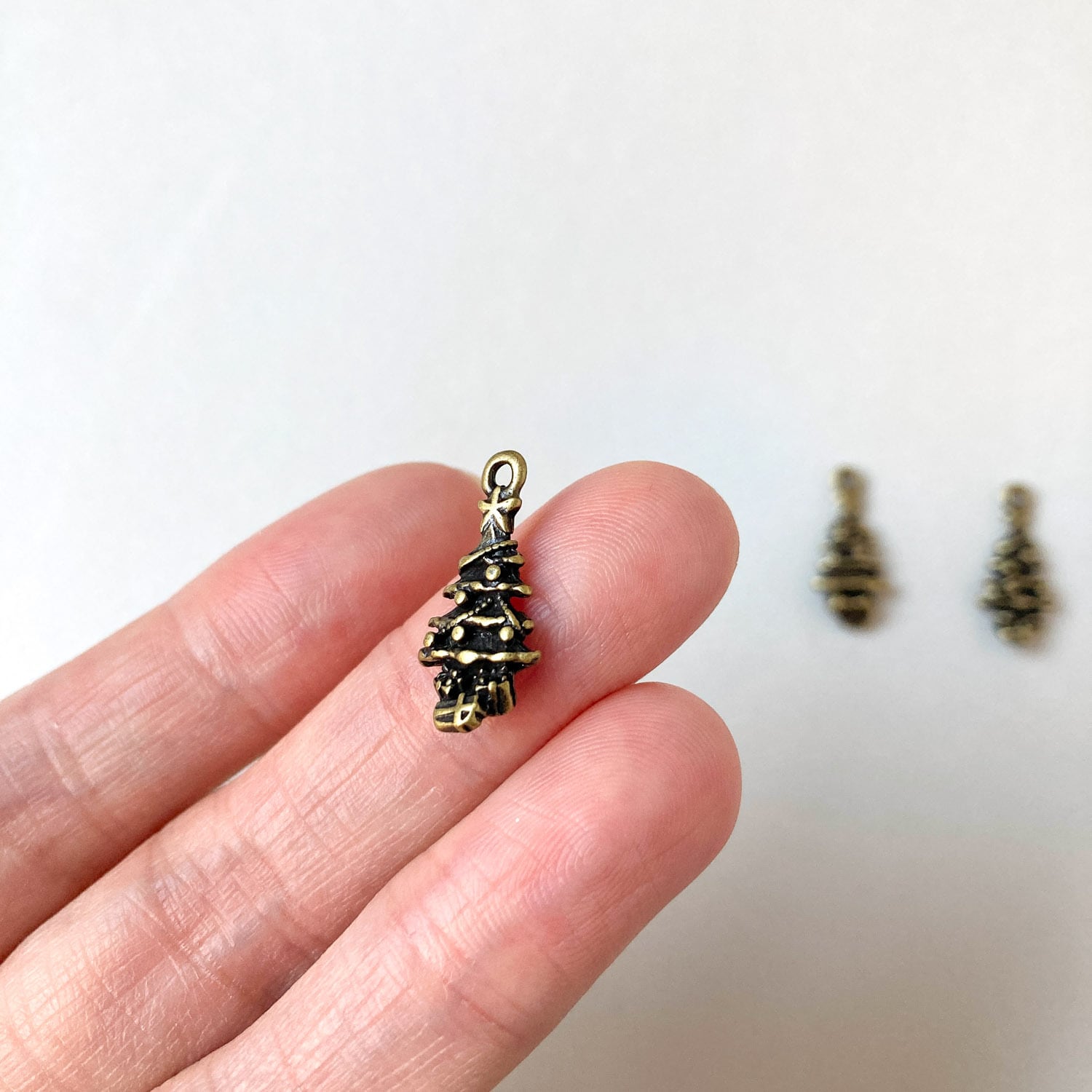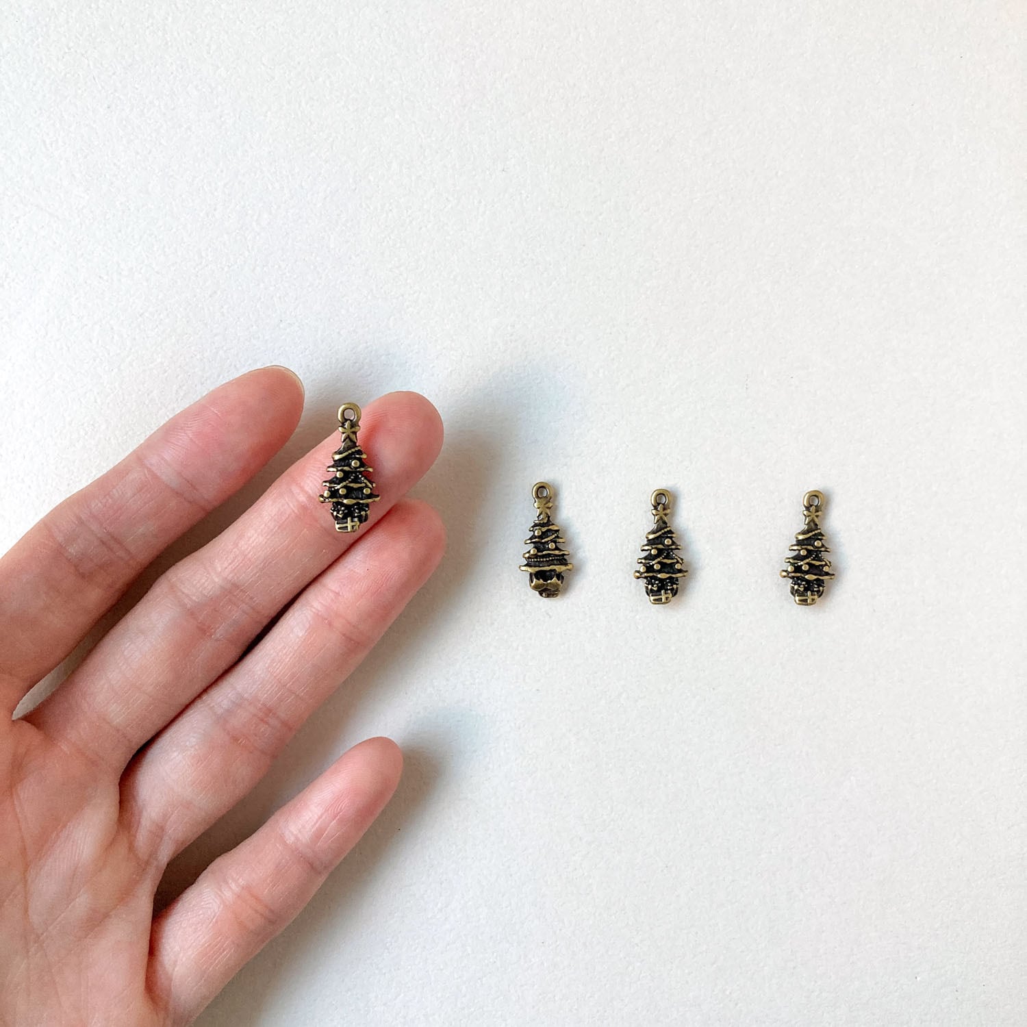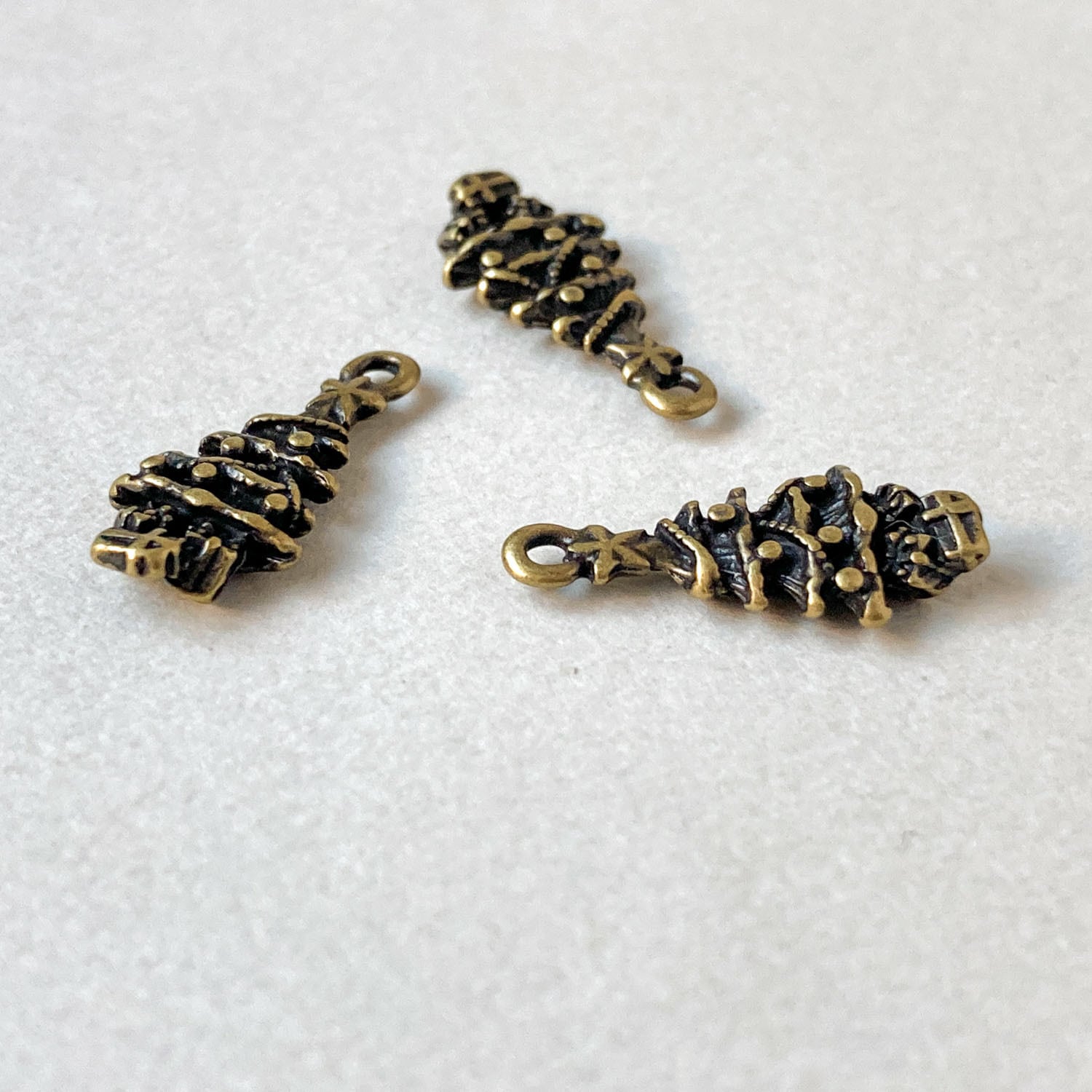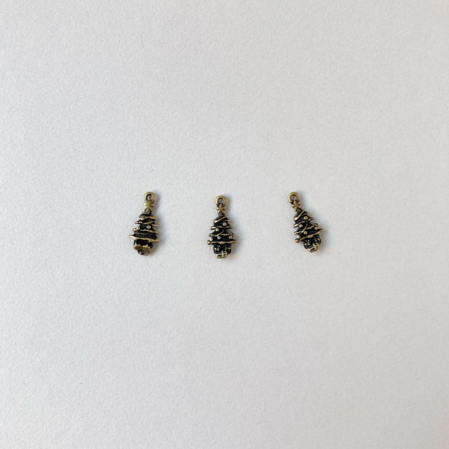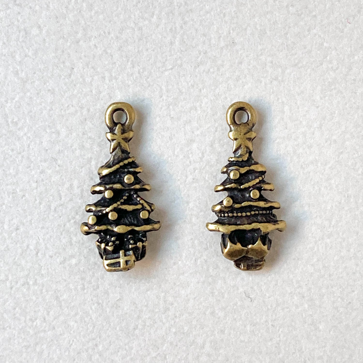 アンティーク風 プレゼント置いたクリスマスツリーの小さなメタルチャーム