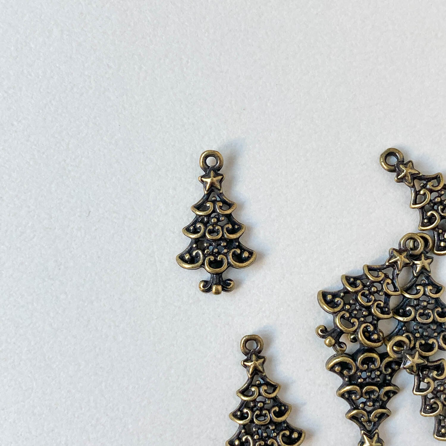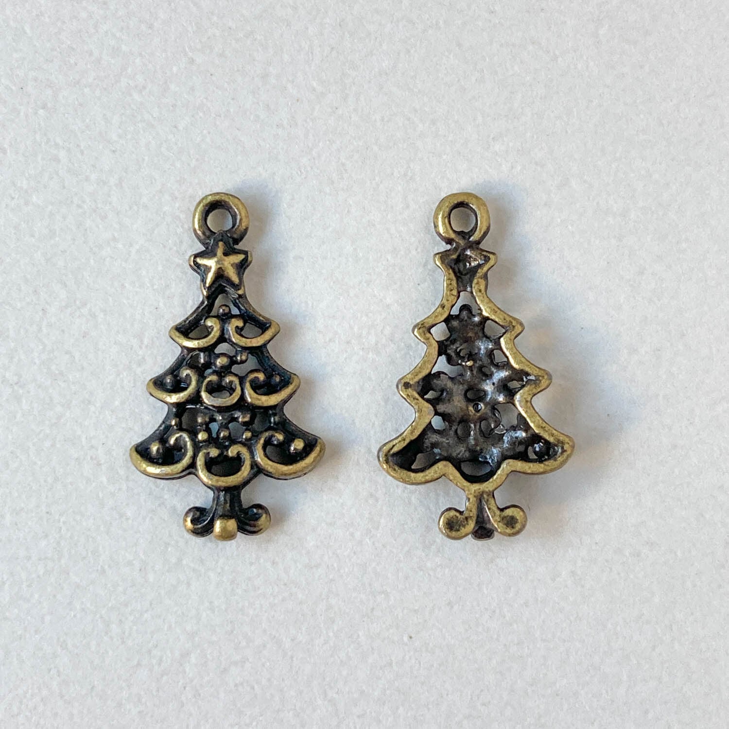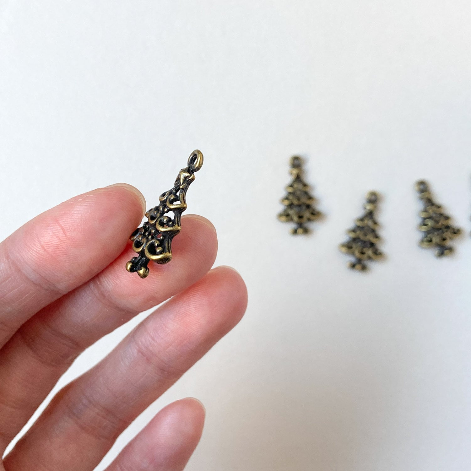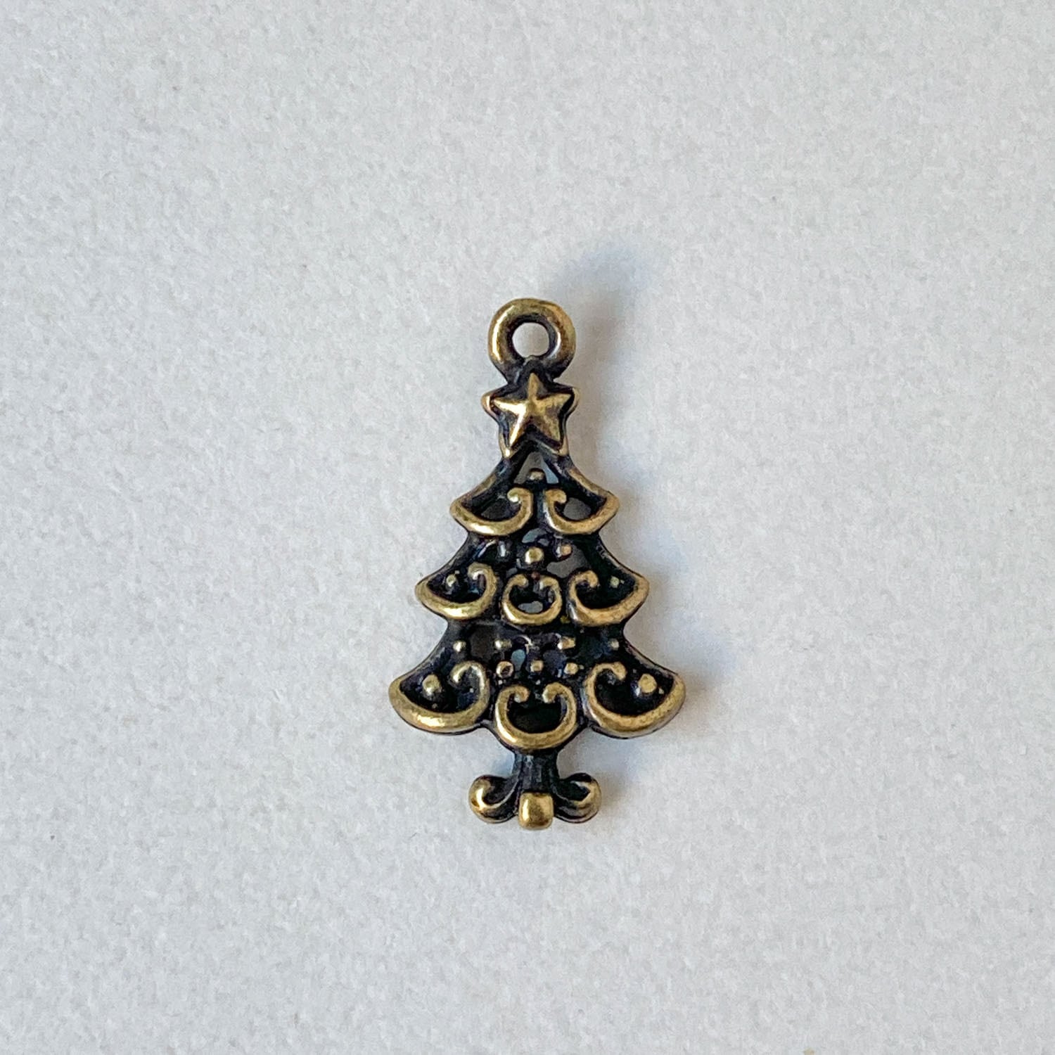 アンティーク風 くるんとしたツリーの透かしメタルチャーム