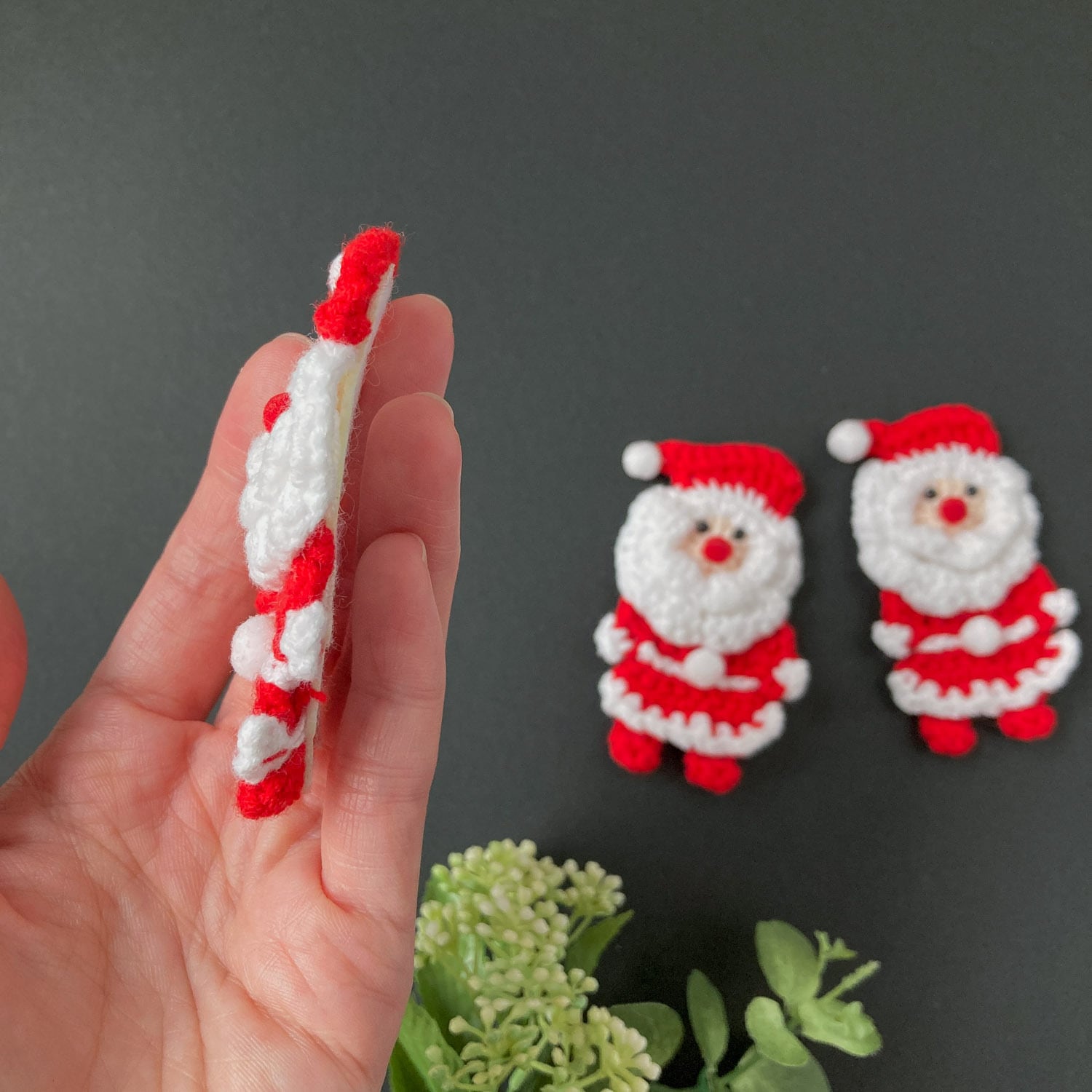 直立サンタクロースの編みデコパーツ