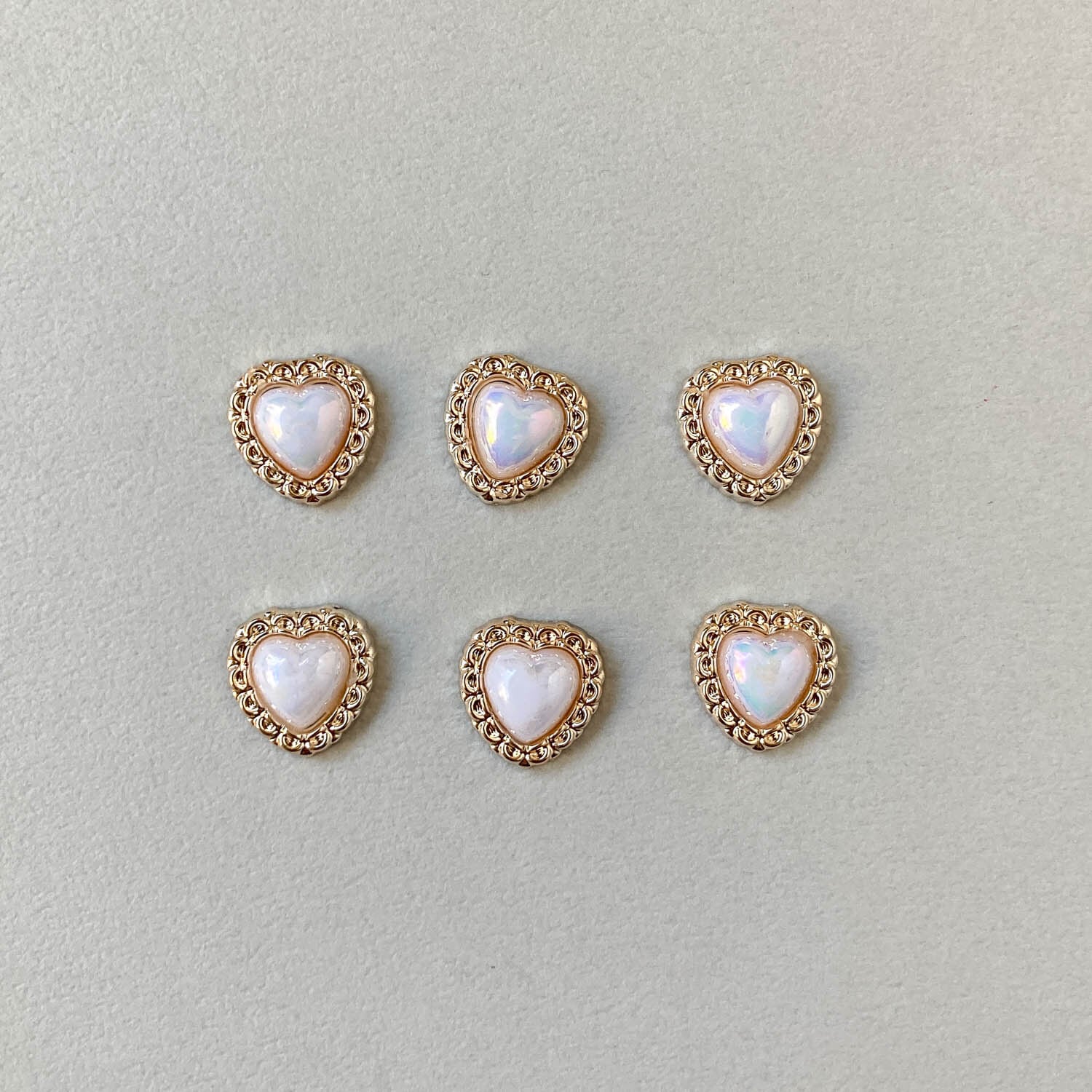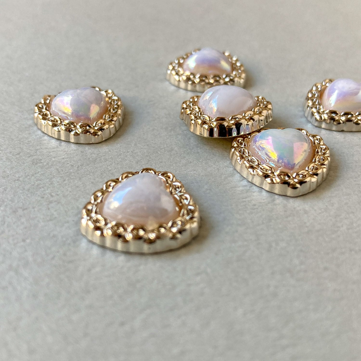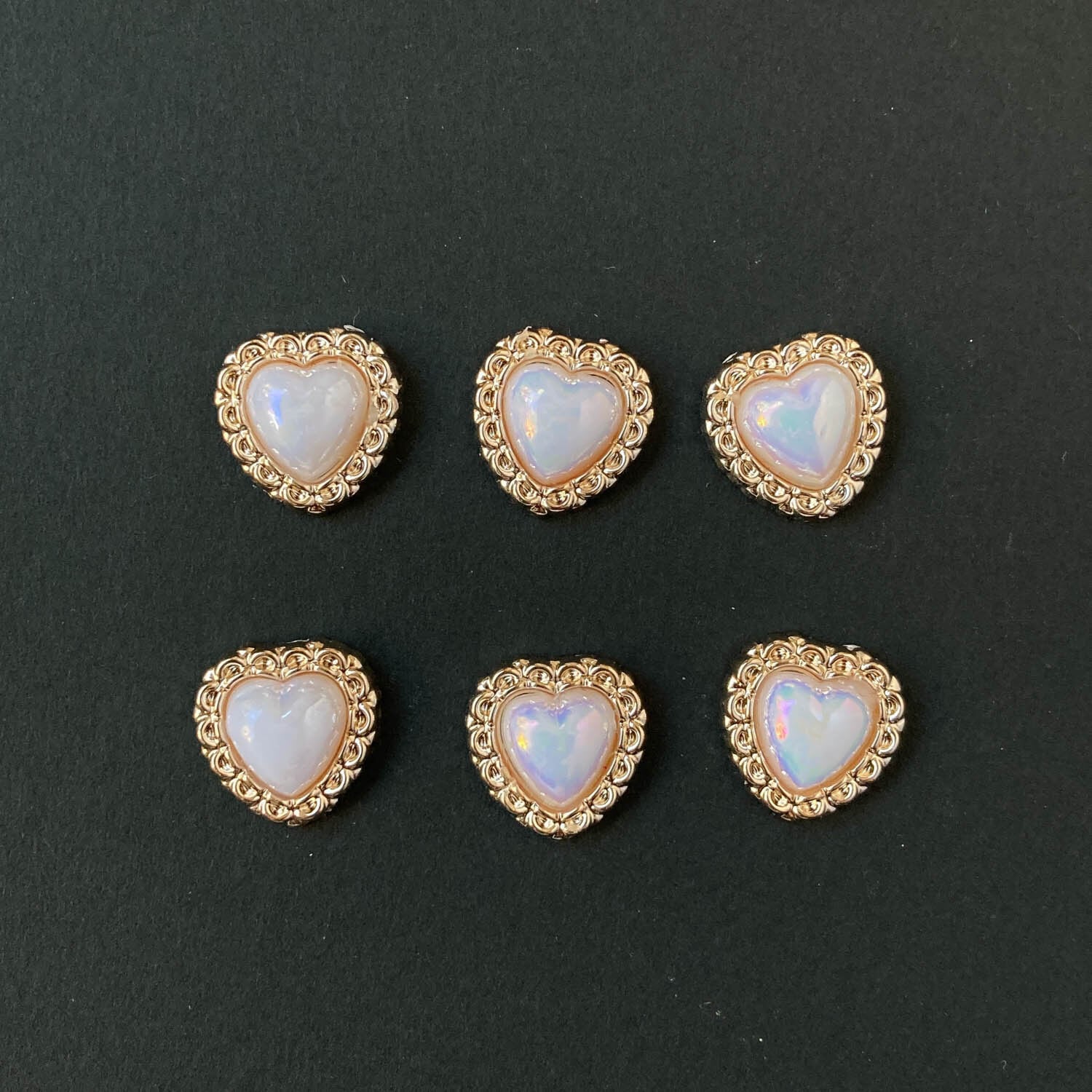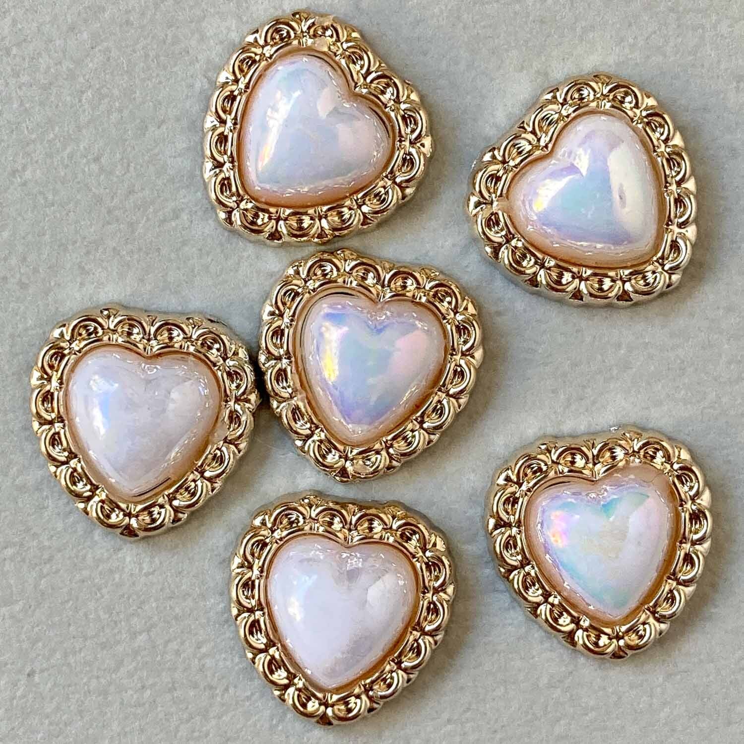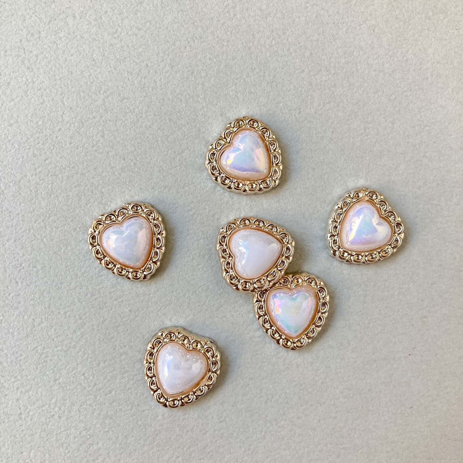 スカラップ縁オーロラハートデコパーツパック(6p)