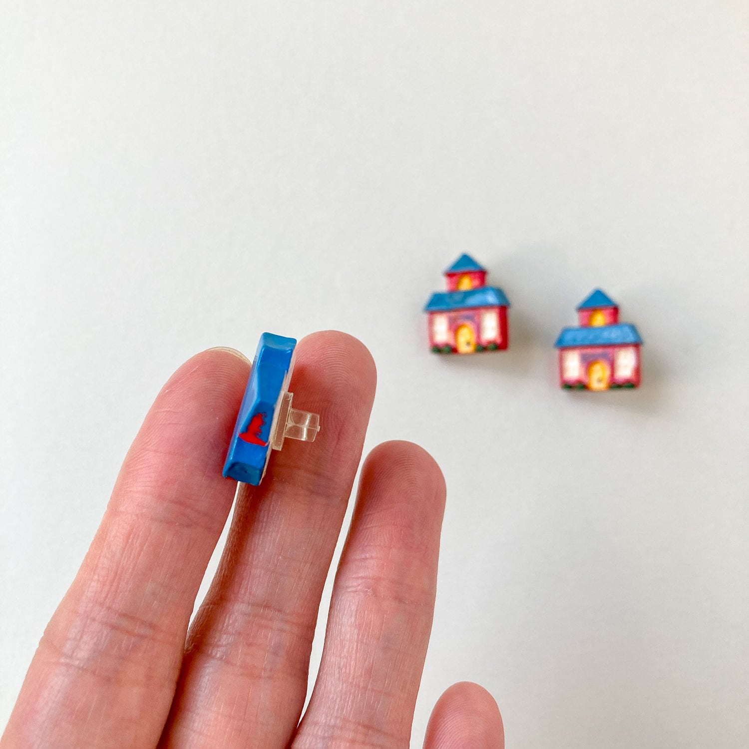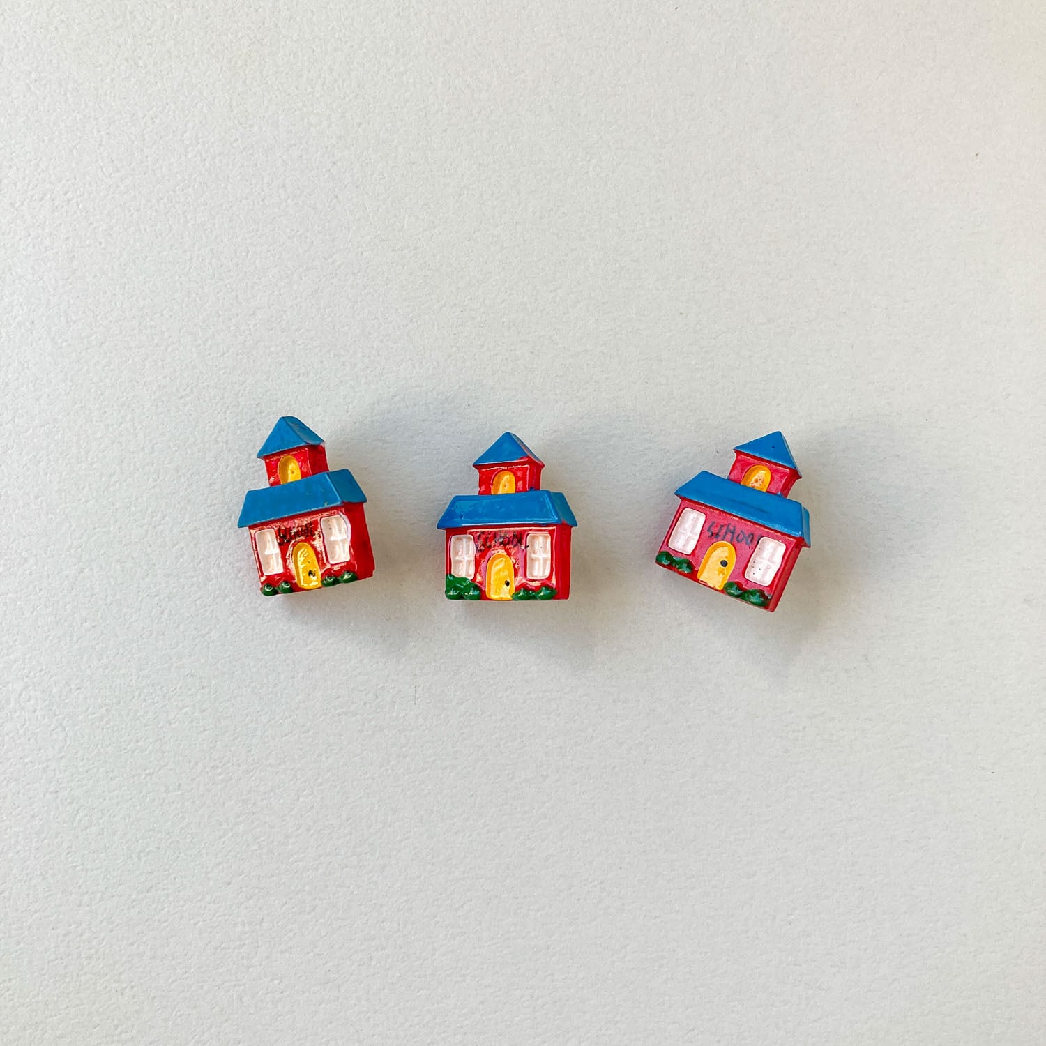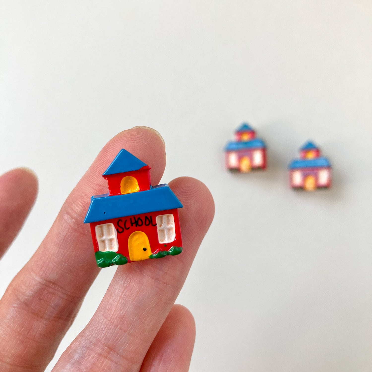 ハンドペイントの「SCHOOL」文字が可愛らしいボタン。