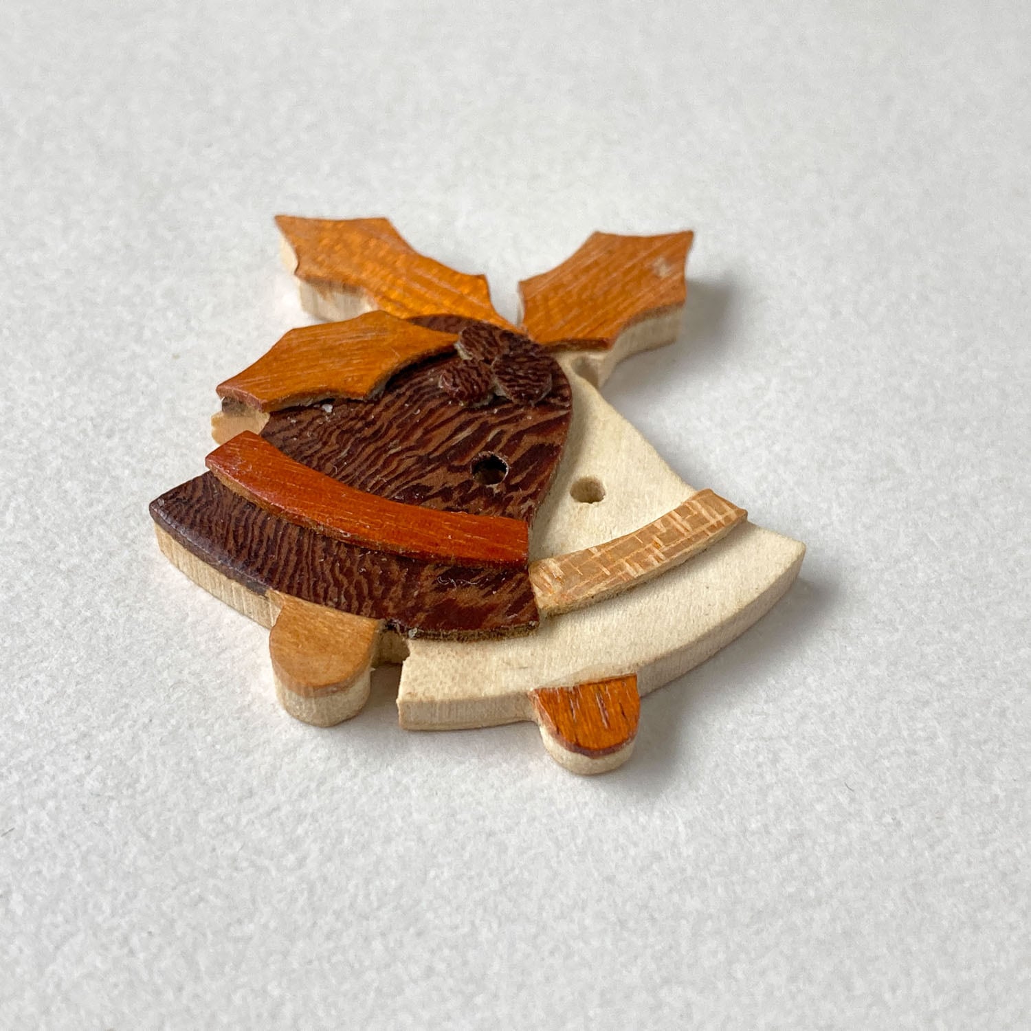 木製ヒイラギとクリスマスベルのフランスボタン(36mm)