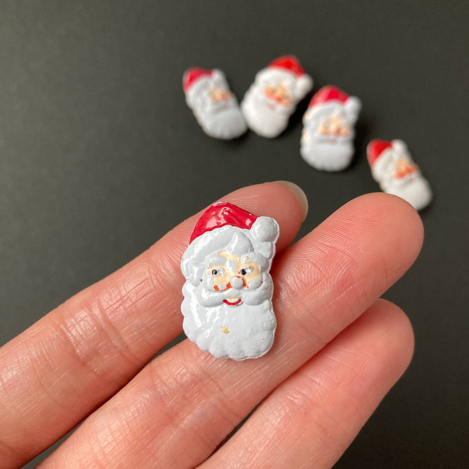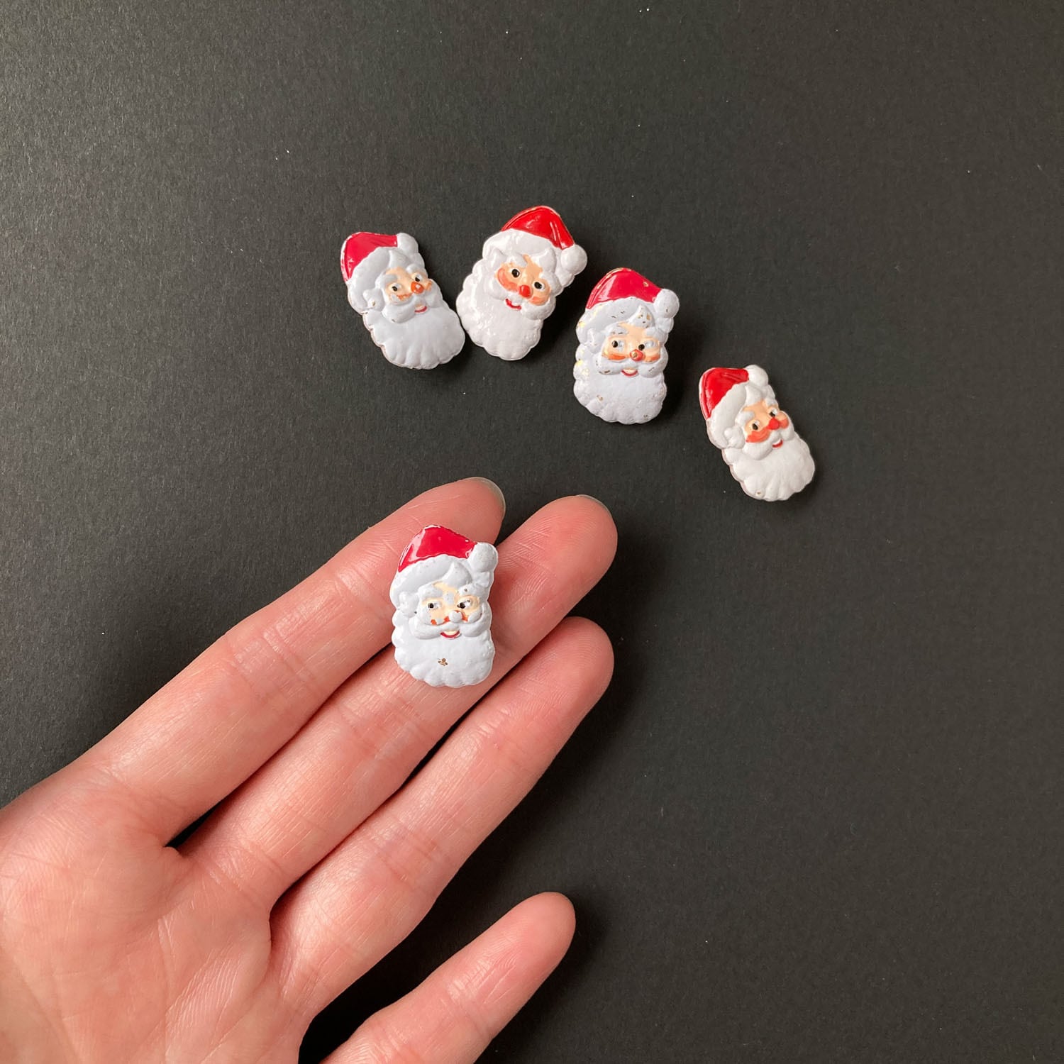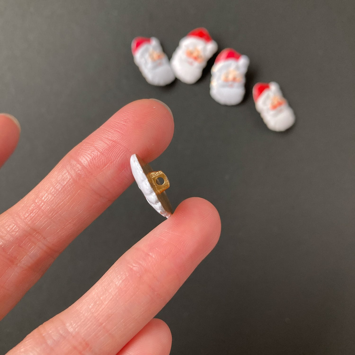 寒くてほっぺと鼻を赤くしたサンタのボタン。