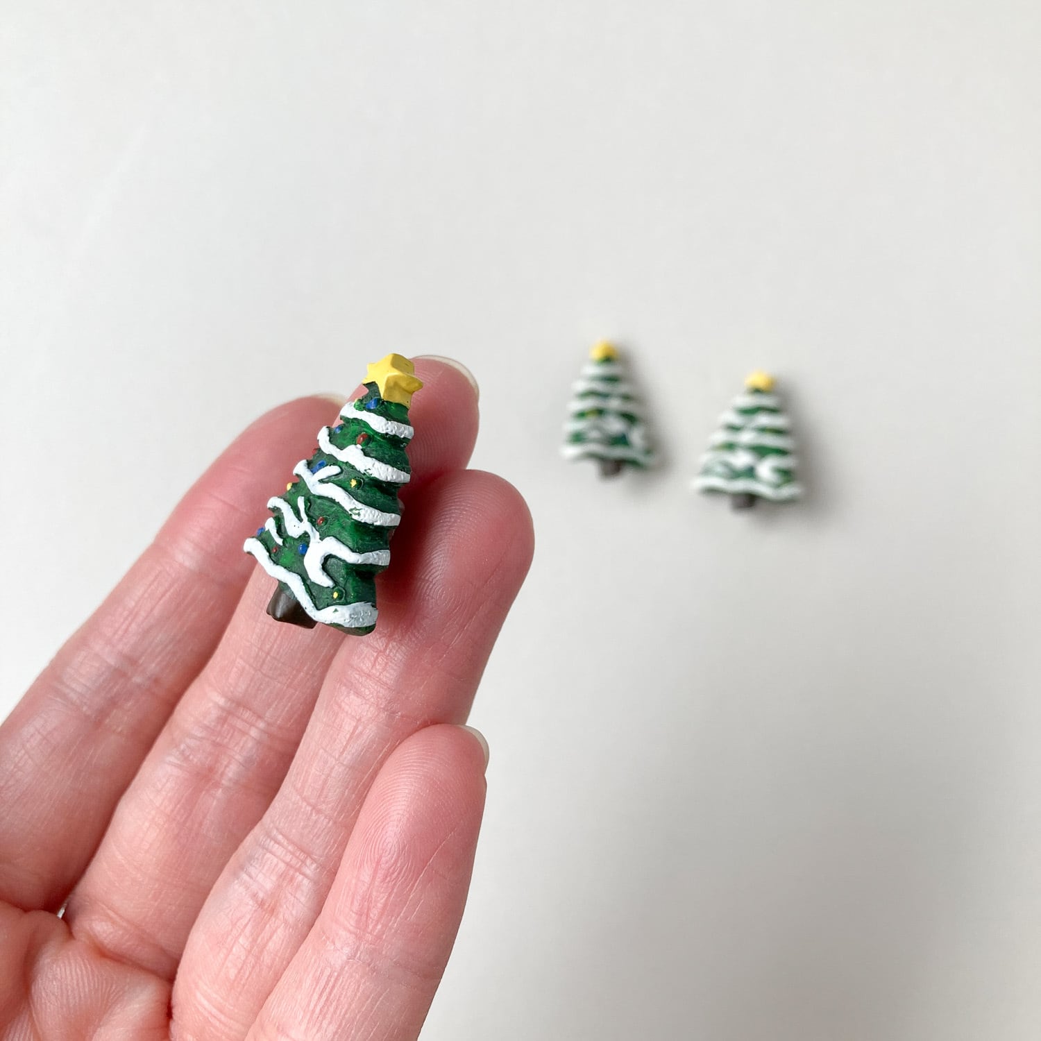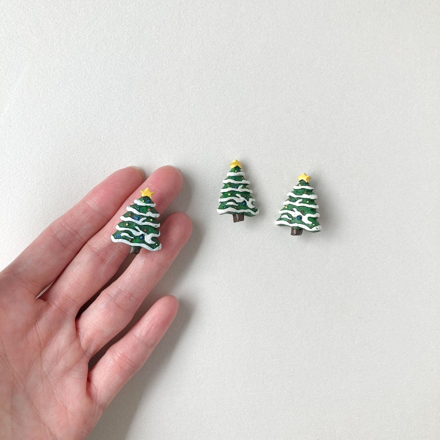 雪が積もったクリスマスツリーのフランスボタン(26mm)