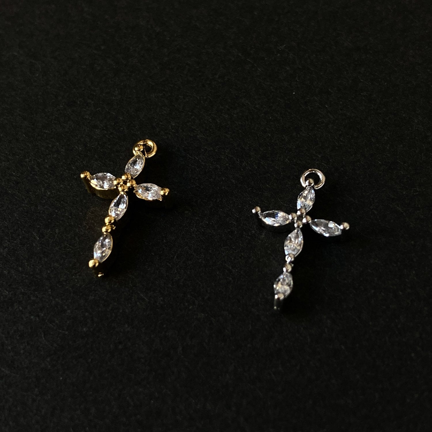 なつめビジューのクロスメタルチャーム(16K/プラチナメッキ)