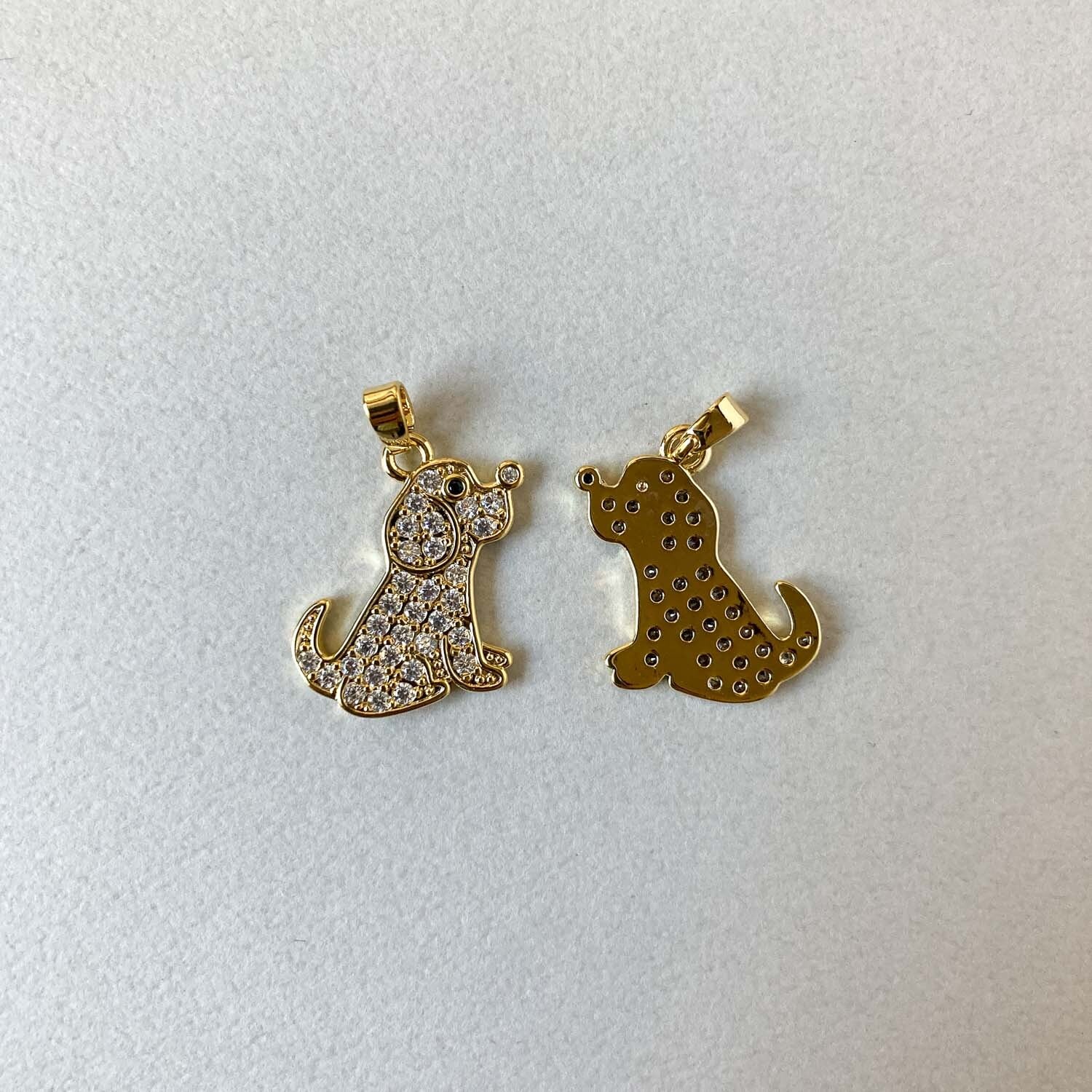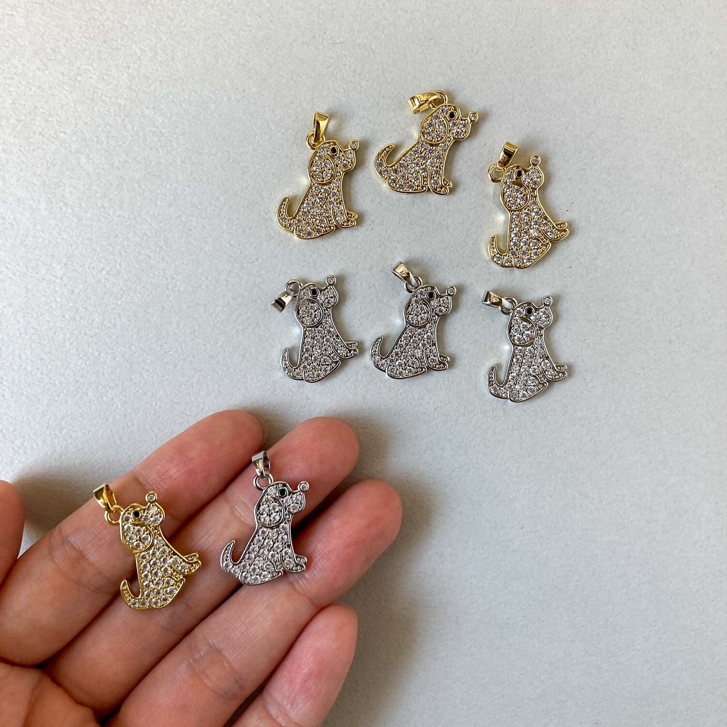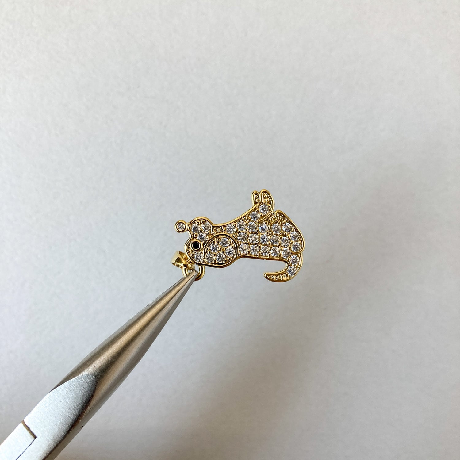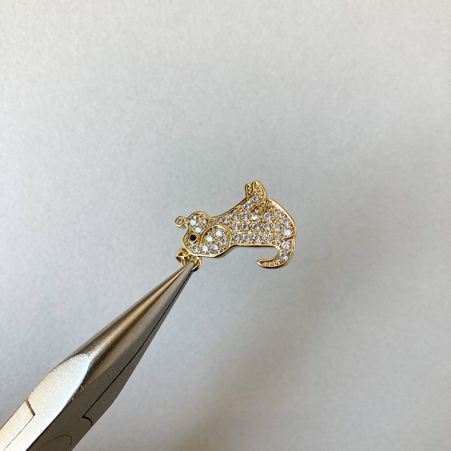 全面ビジューおすわりイヌのメタルチャーム(16K/プラチナメッキ)