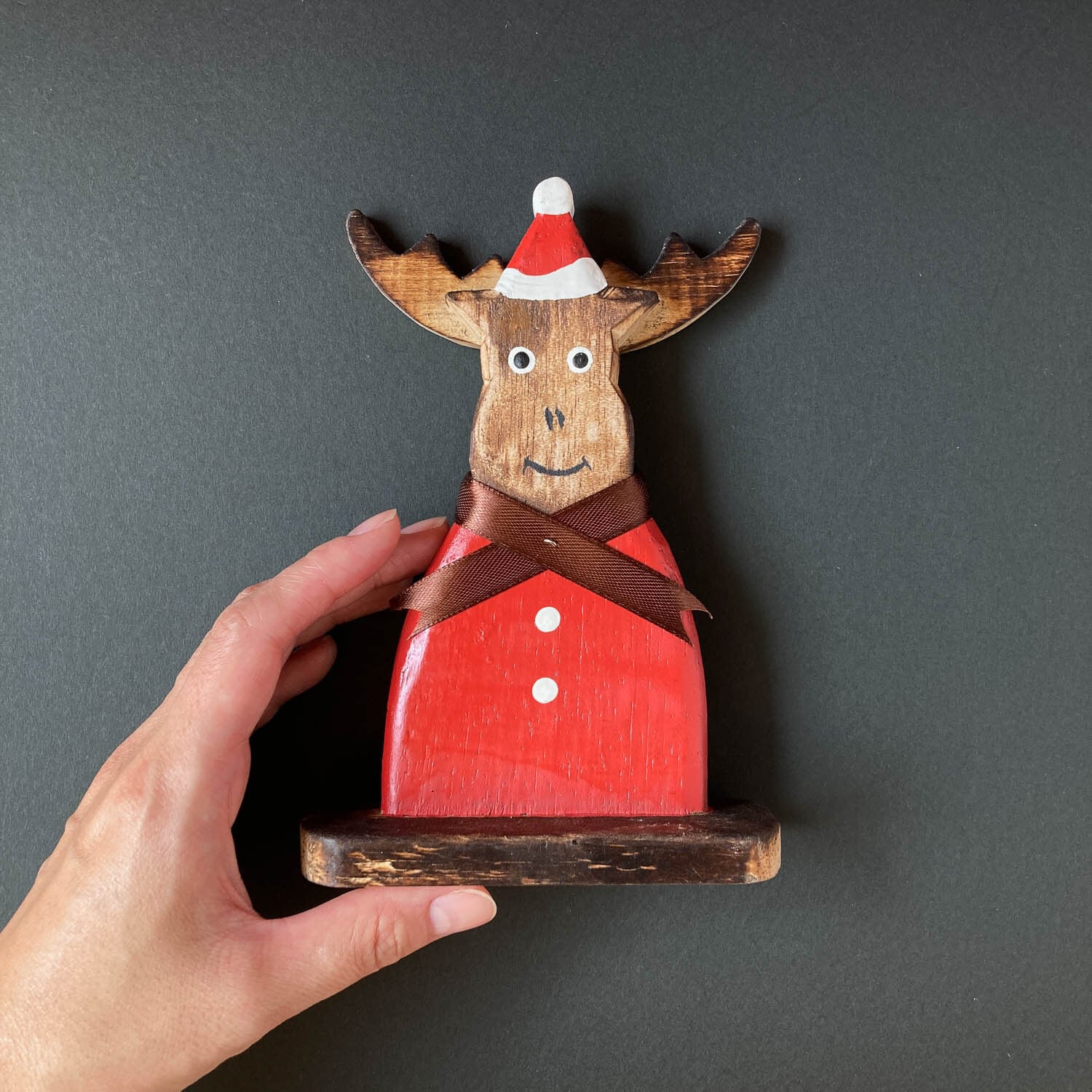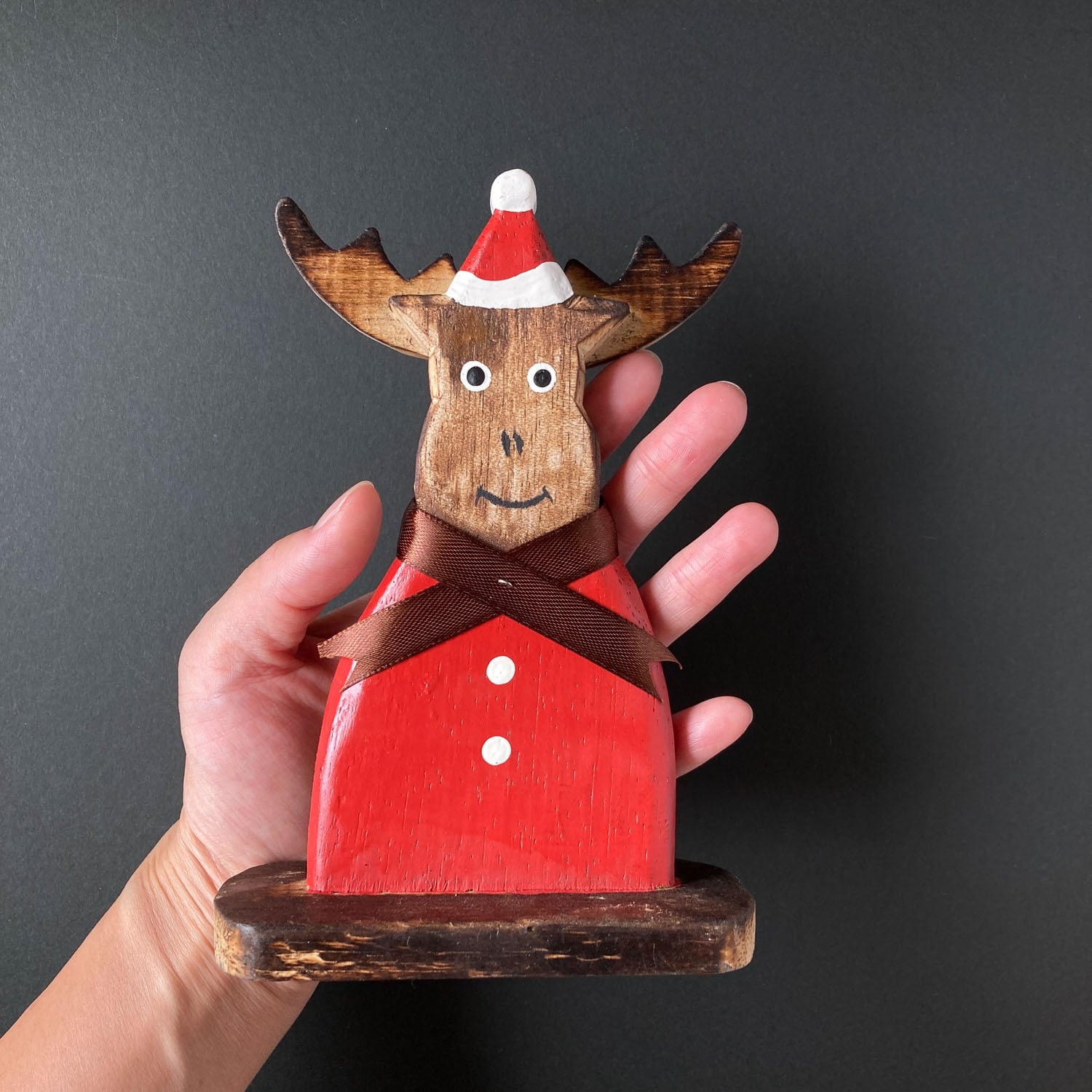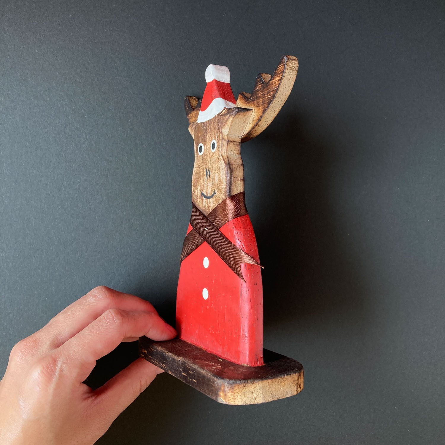 →サンタ衣装の被ったトナカイの置き物L(22cm)
