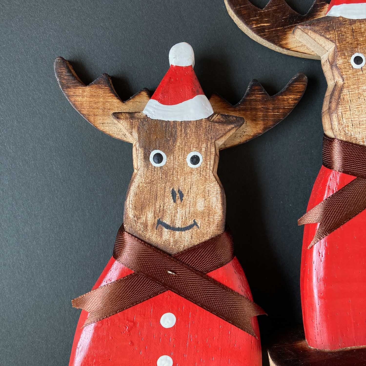 にっこり微笑むクリスマス衣装のトナカイ。