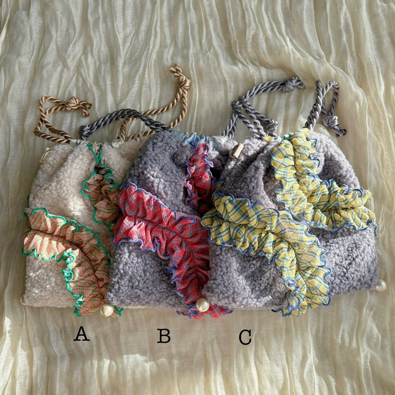もこもこな素材にチェック柄が可愛い軽やかなフリル。