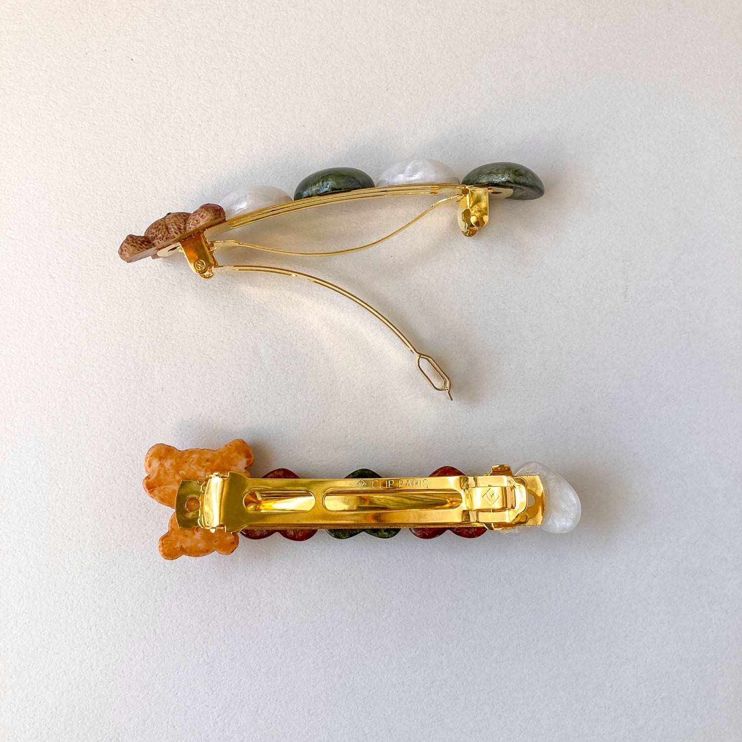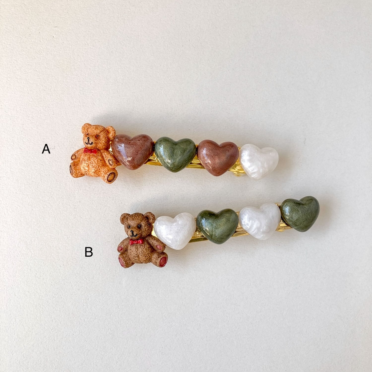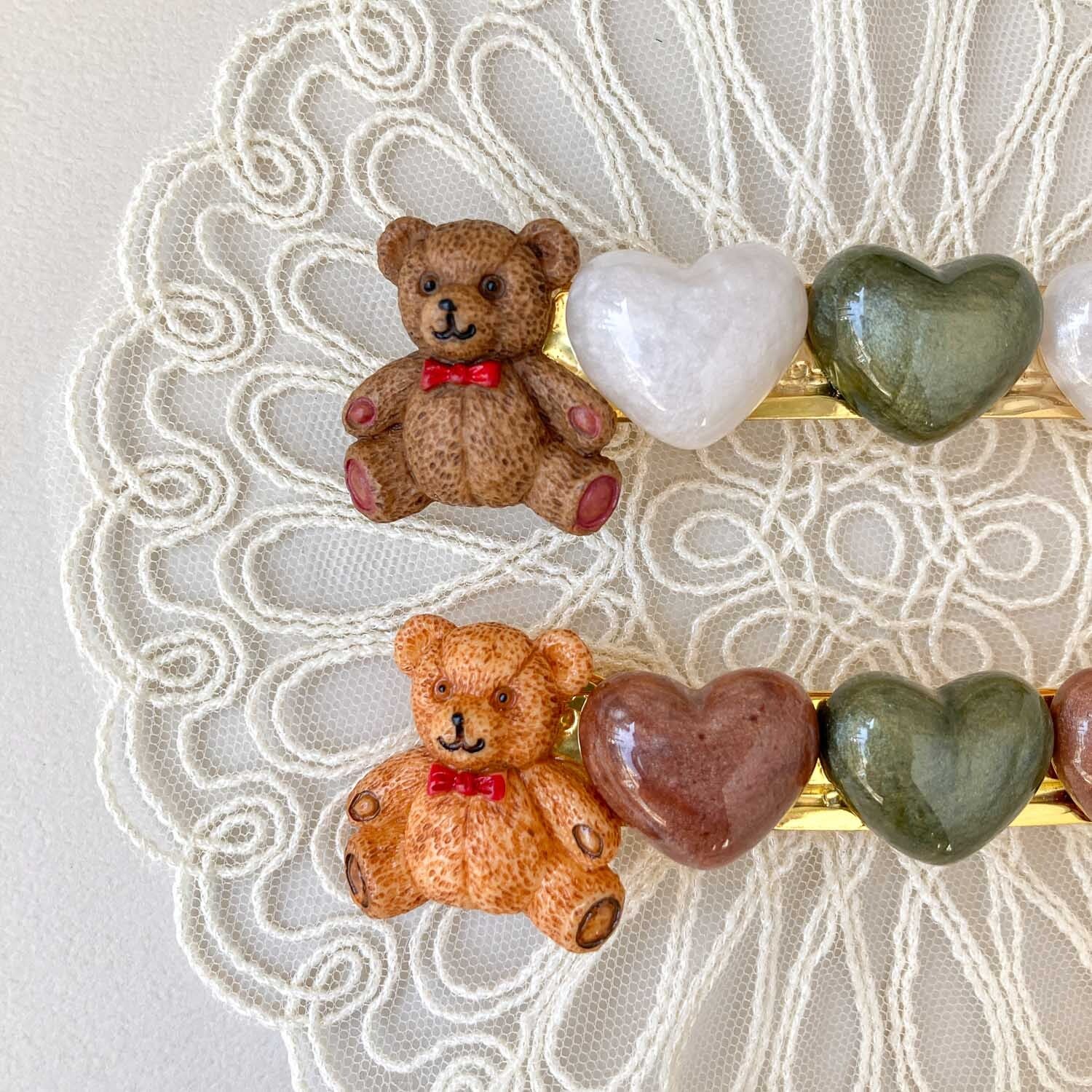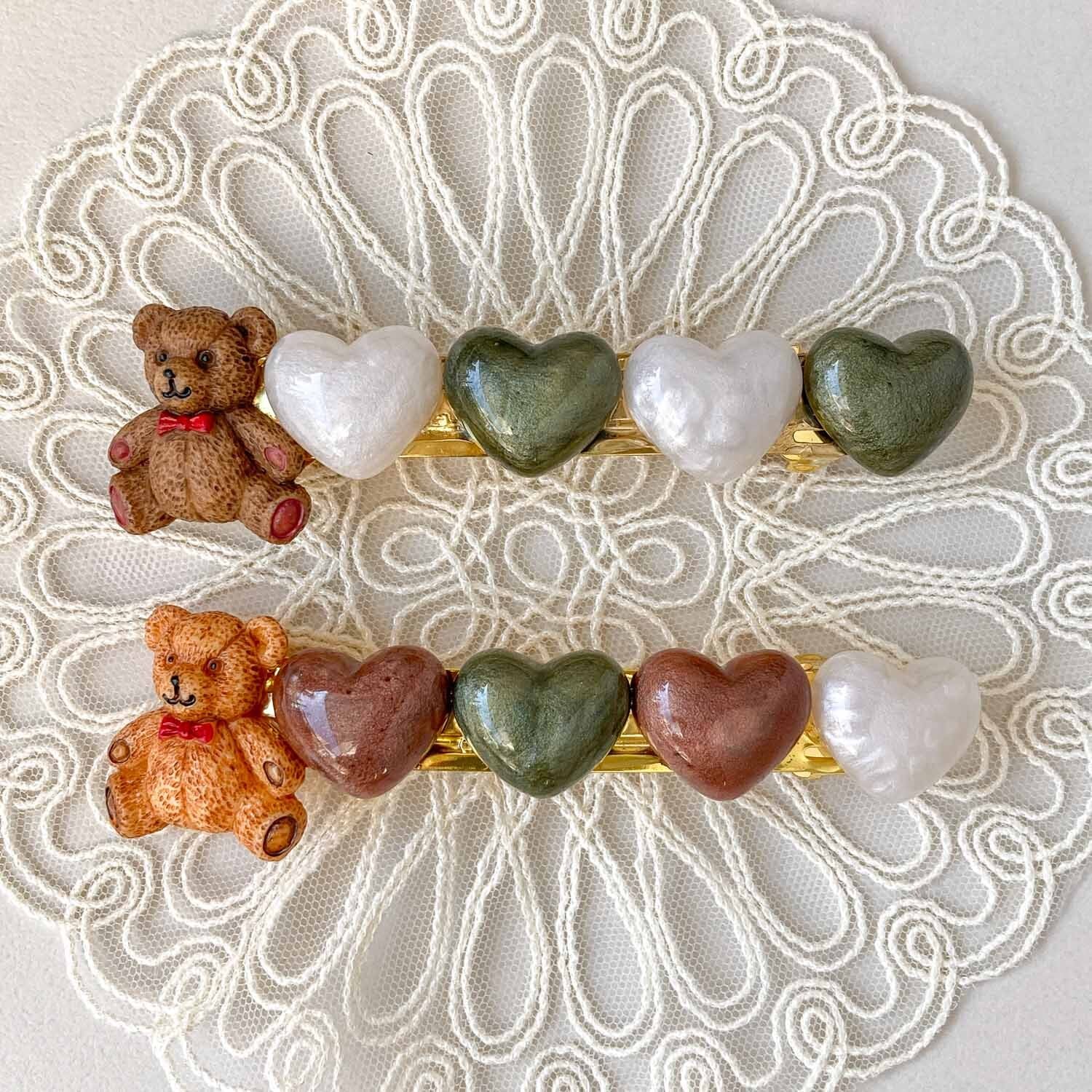 おすわりテディベアとハートのバレッタ