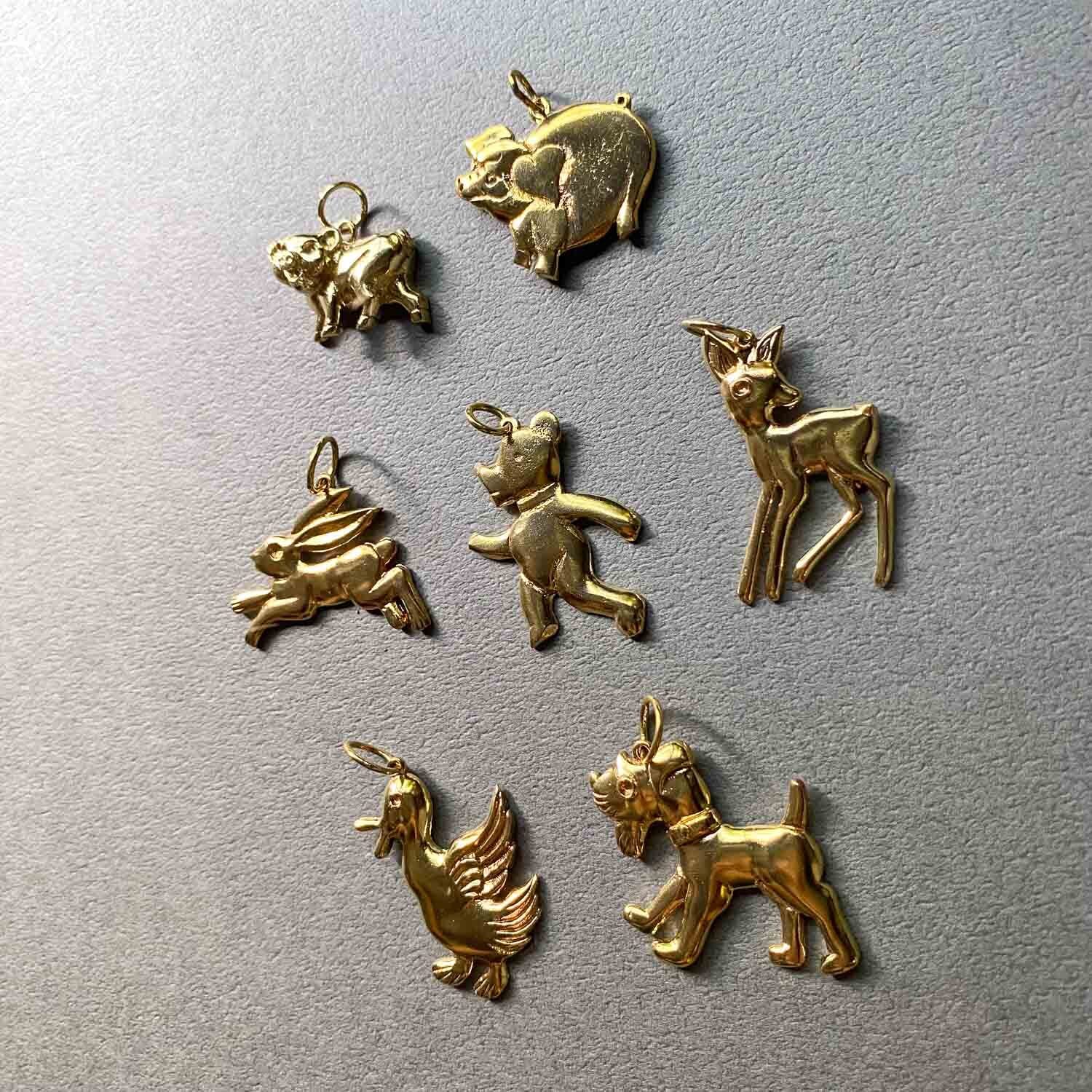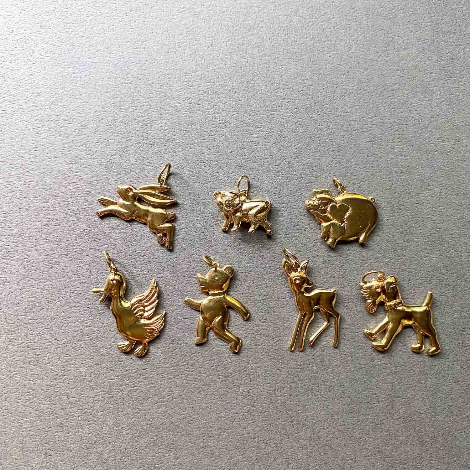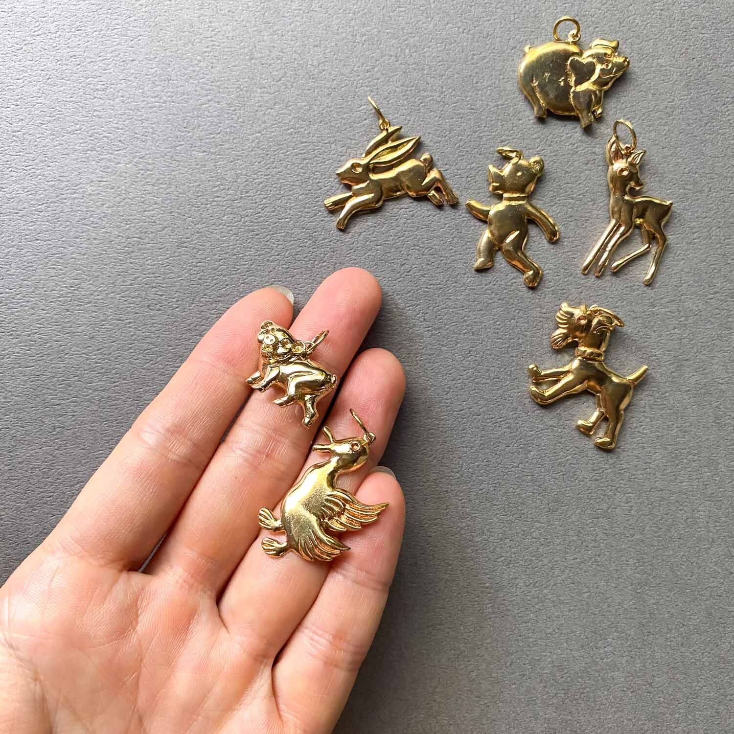 かわいらしい表情の動物たちの真鍮チャーム。