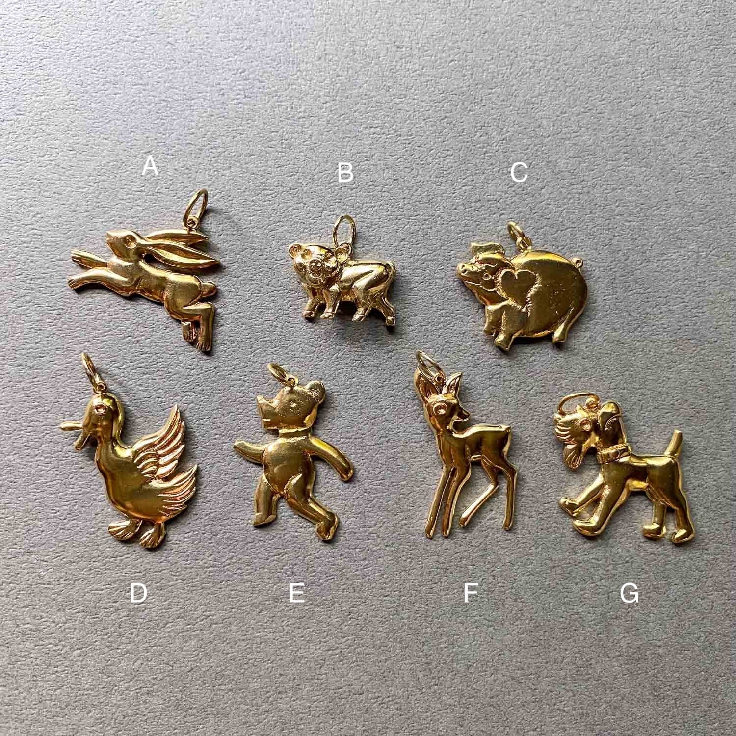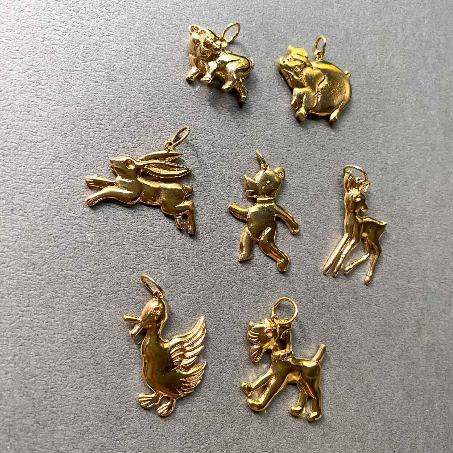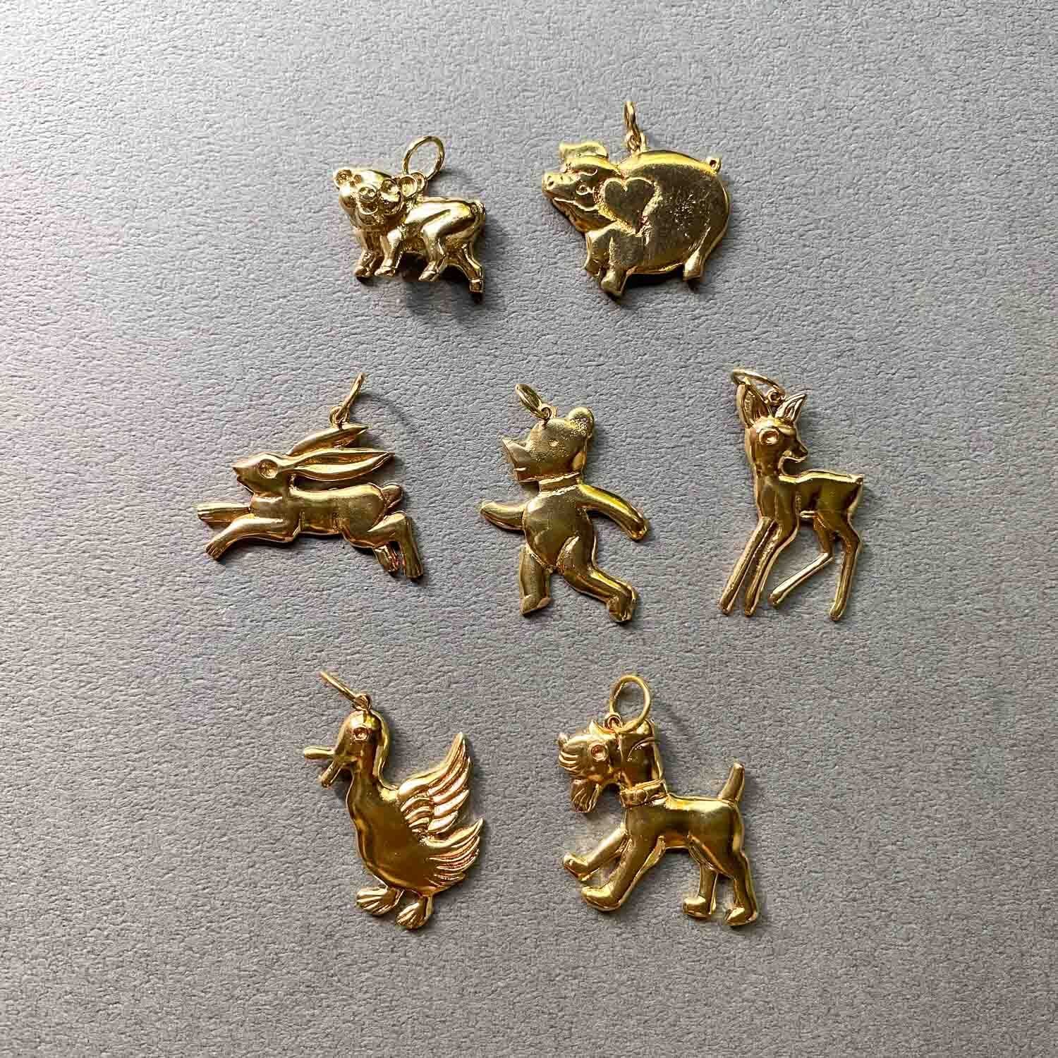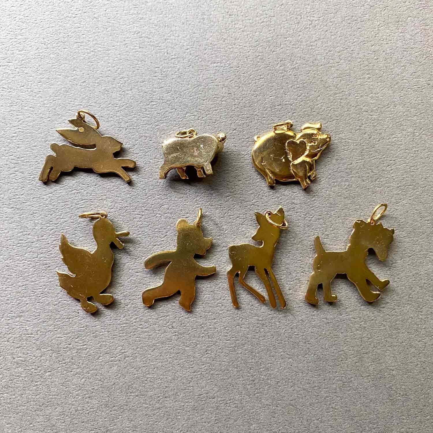 かわいらしい表情の動物たちの真鍮チャーム。