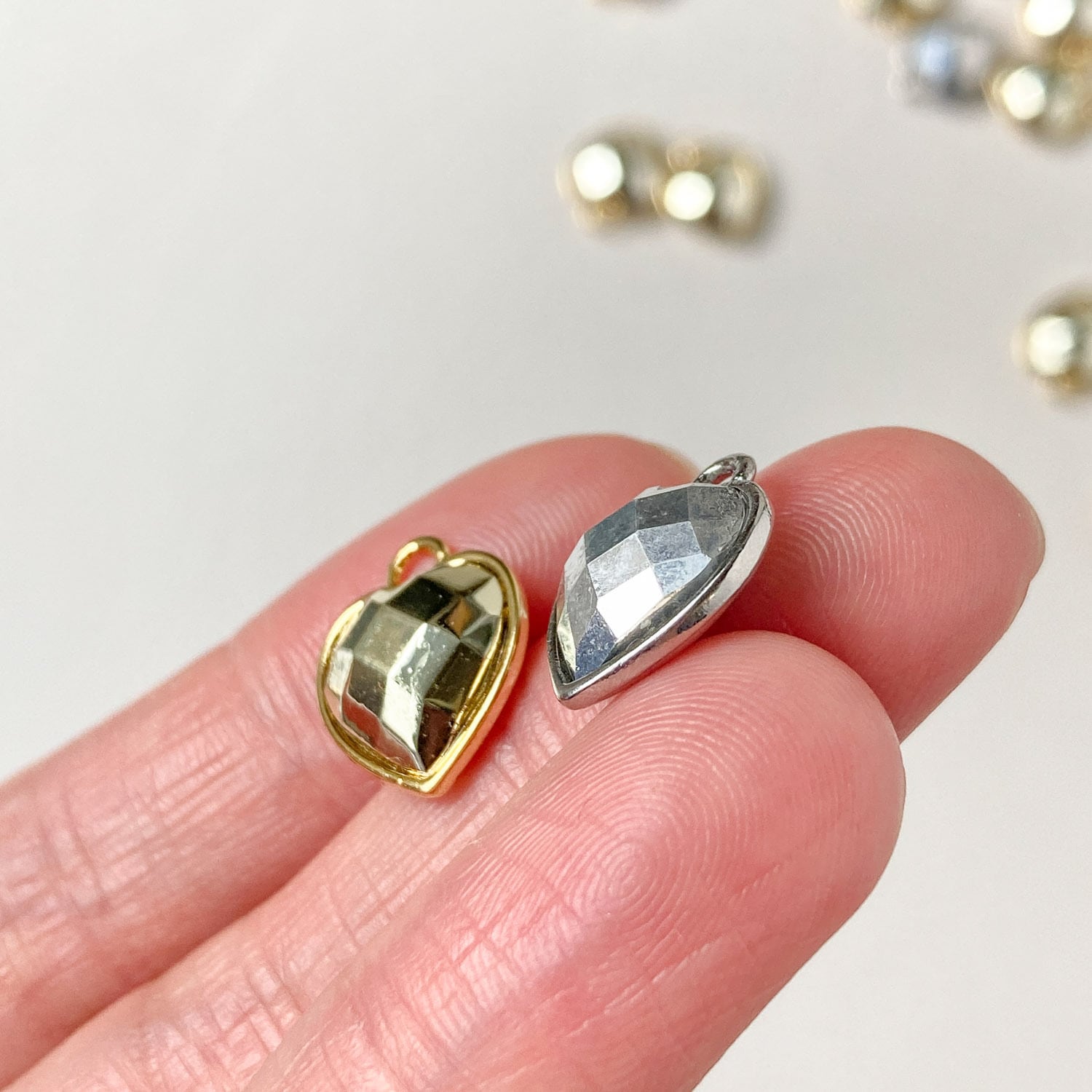 ミラーボールのようなハート型がクールなチャーム。