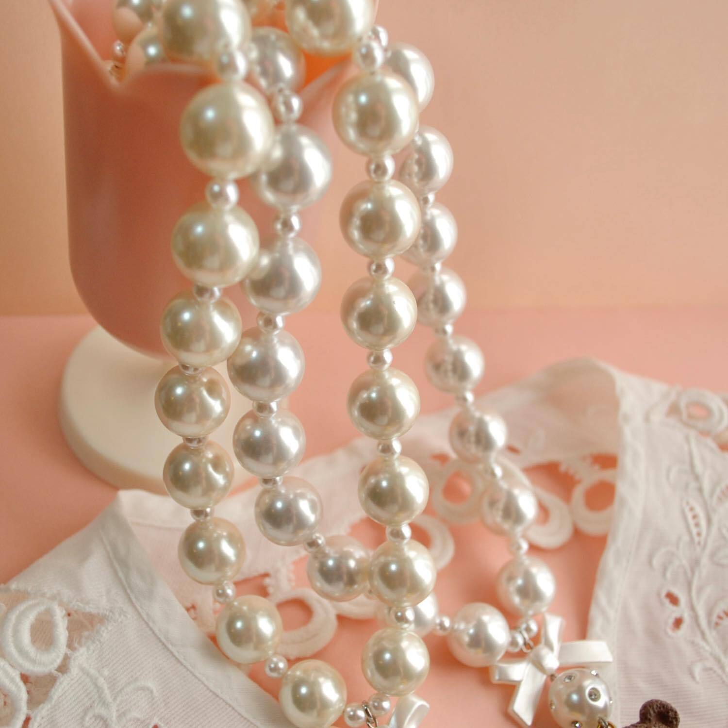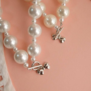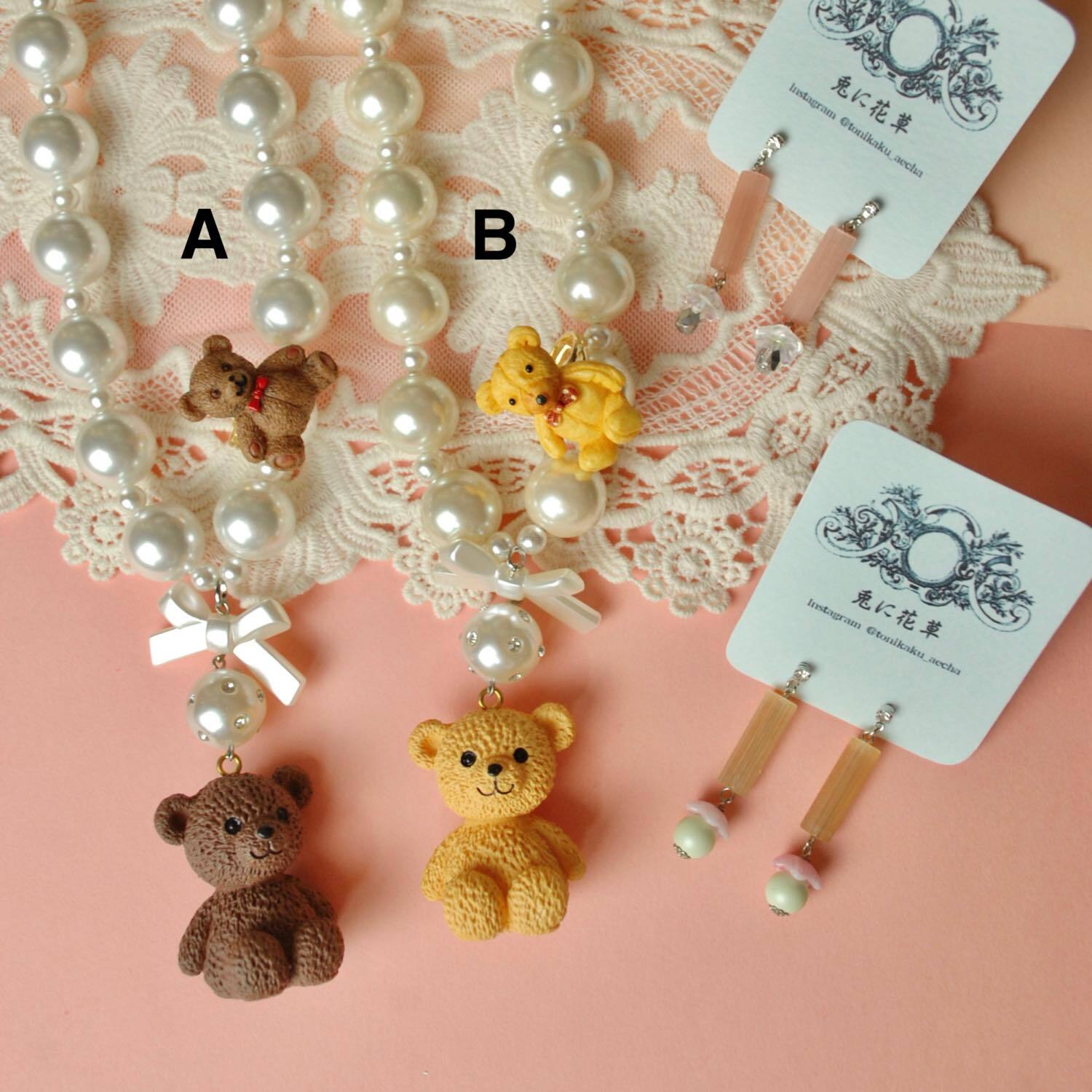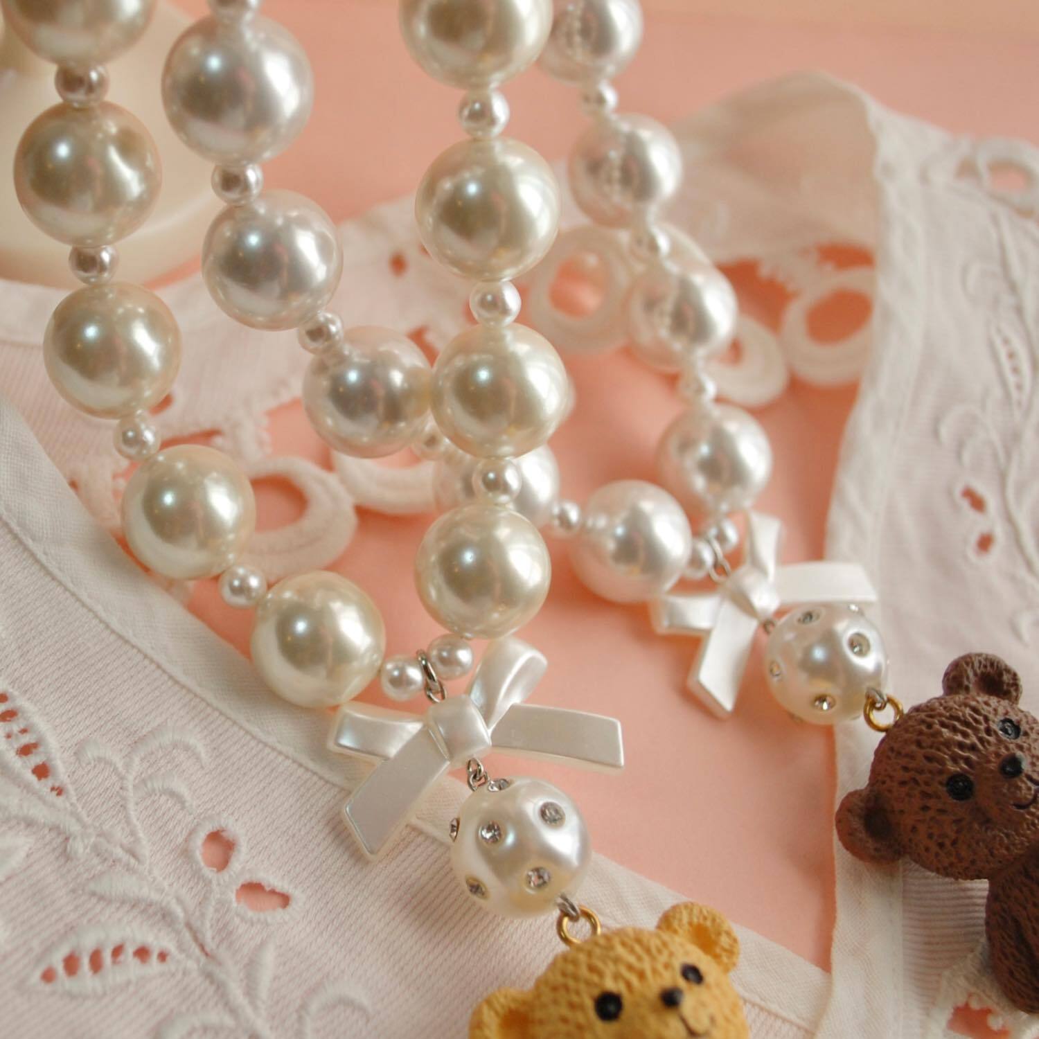 愛らしいテディベアをモチーフにしたパールネックレスとリング、