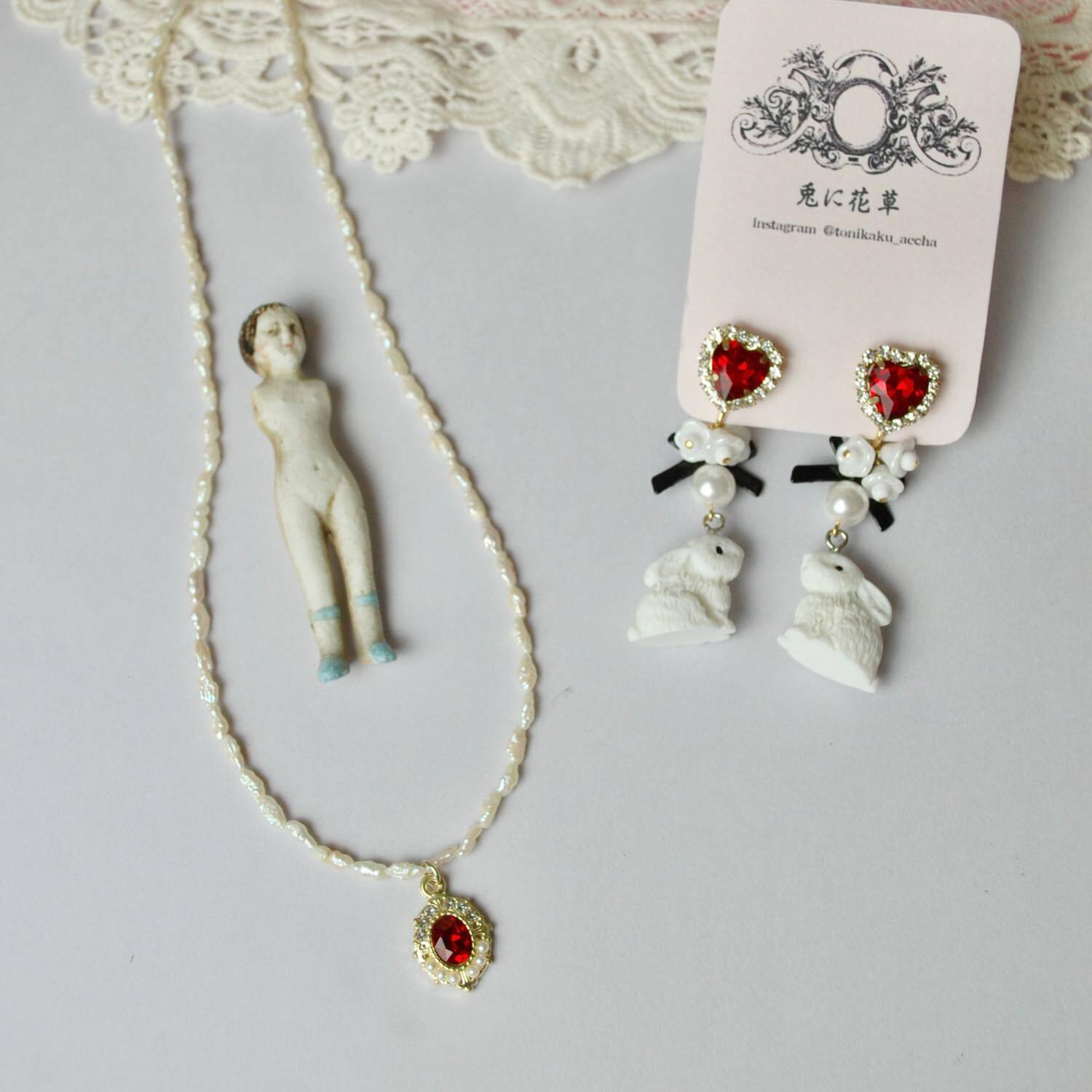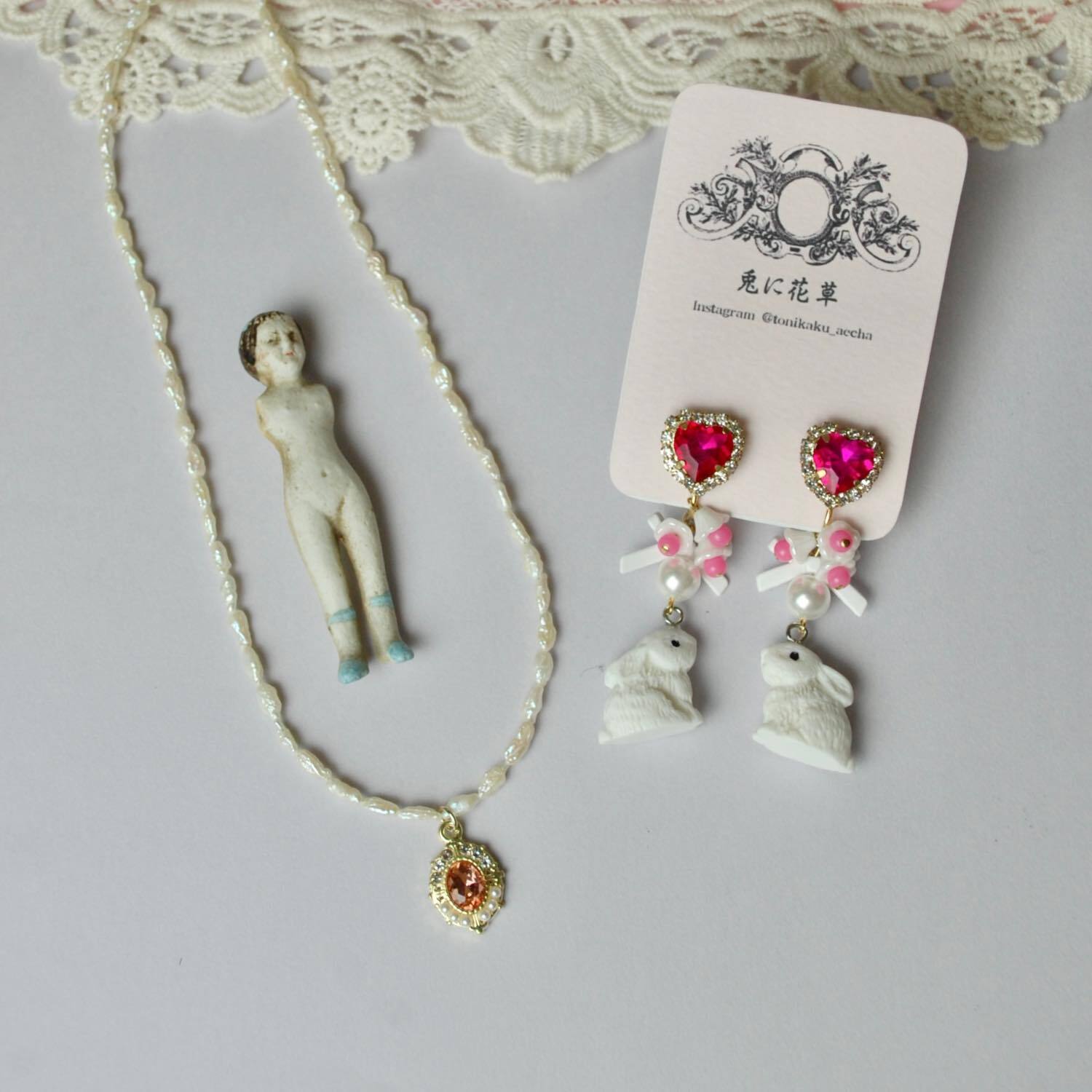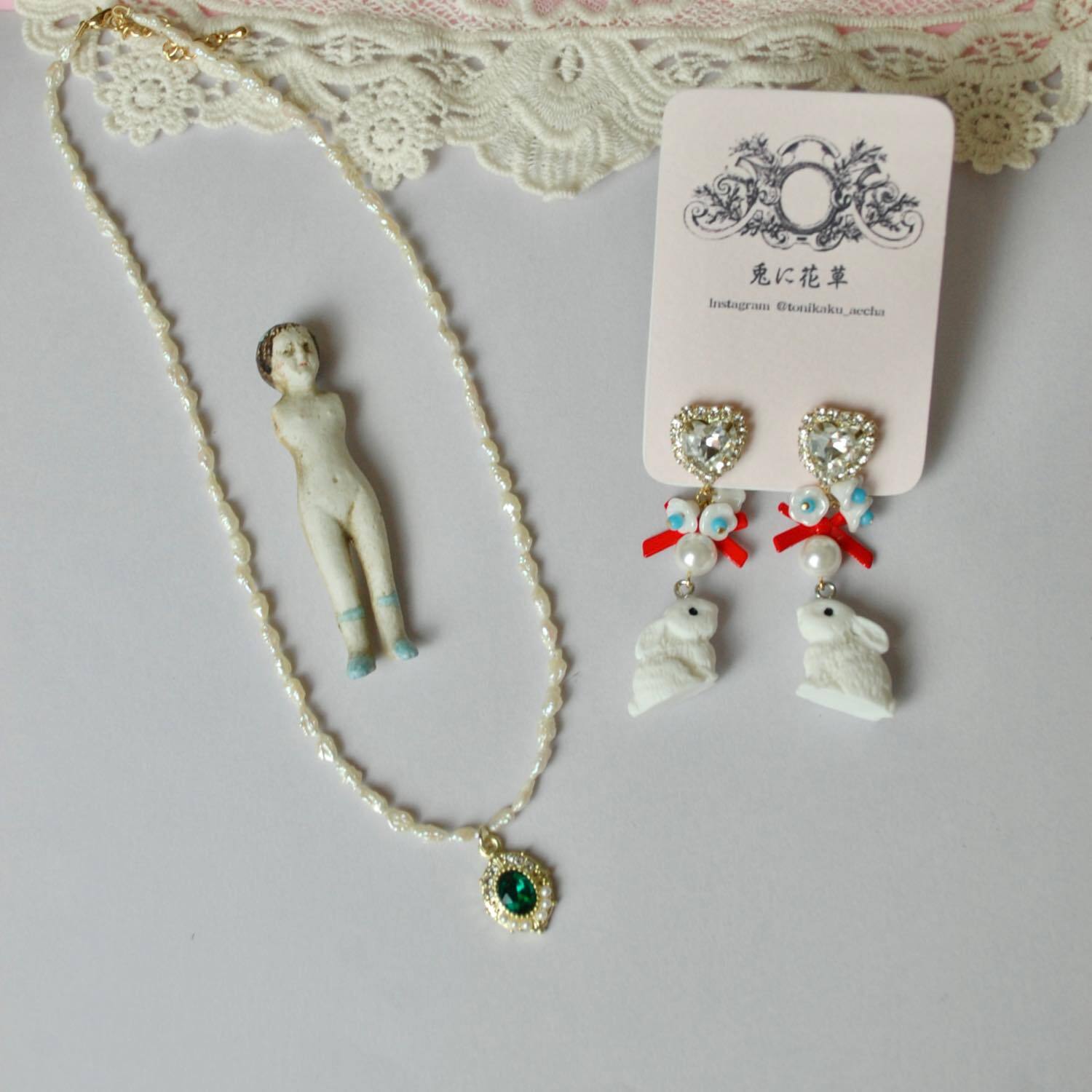フレンチガーリーなイヤリングとネックレス。