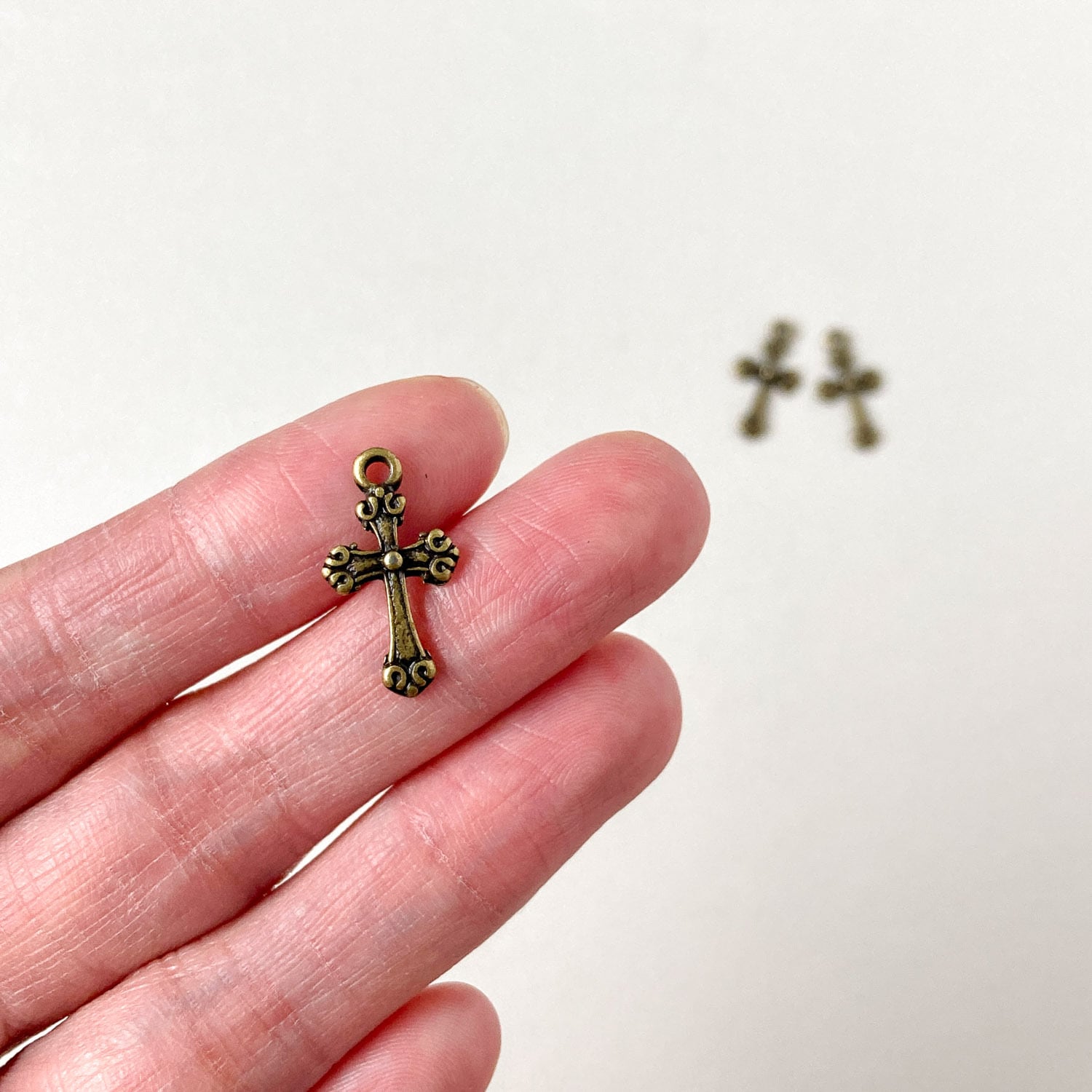 クルンとした模様が印象的なクロスモチーフのチャーム。