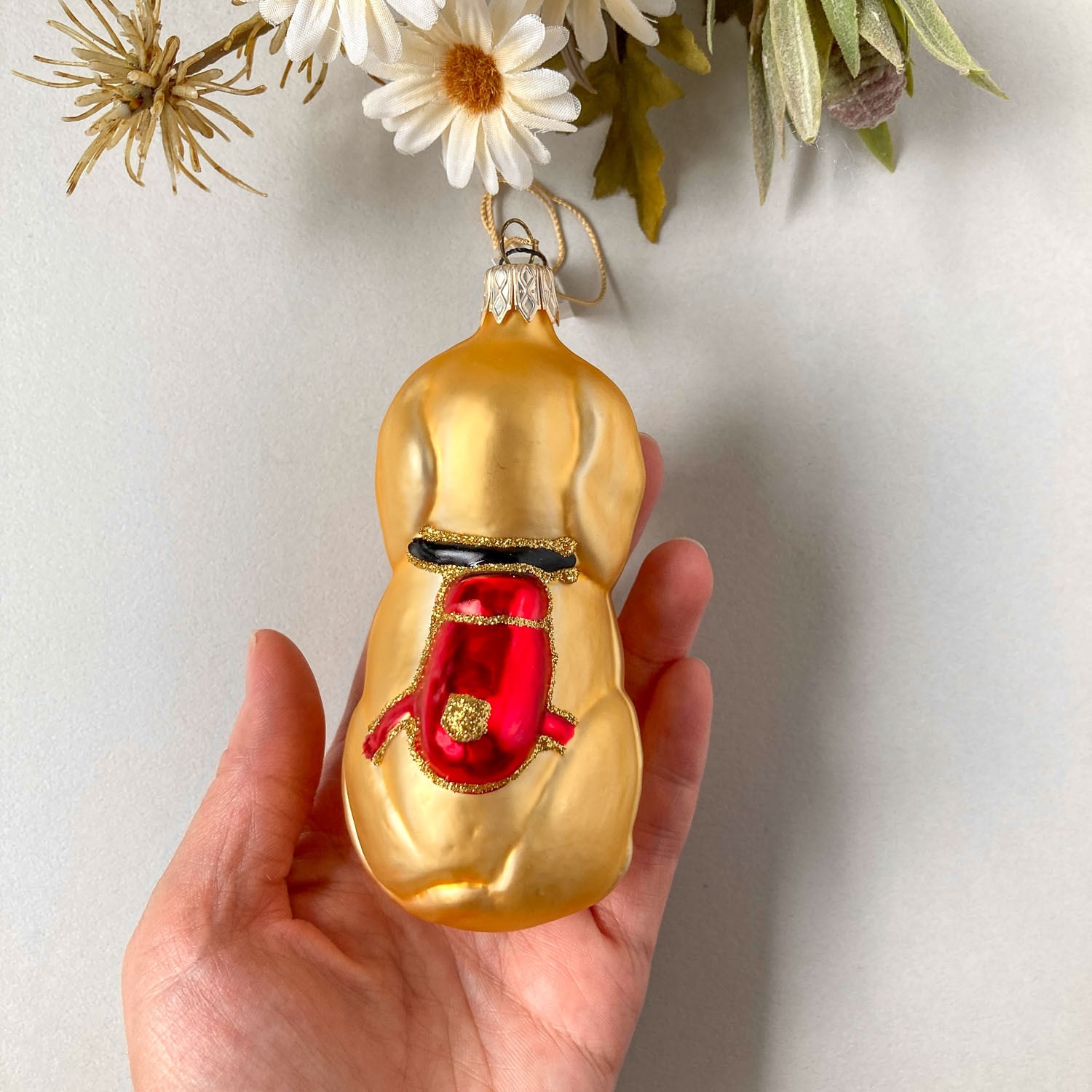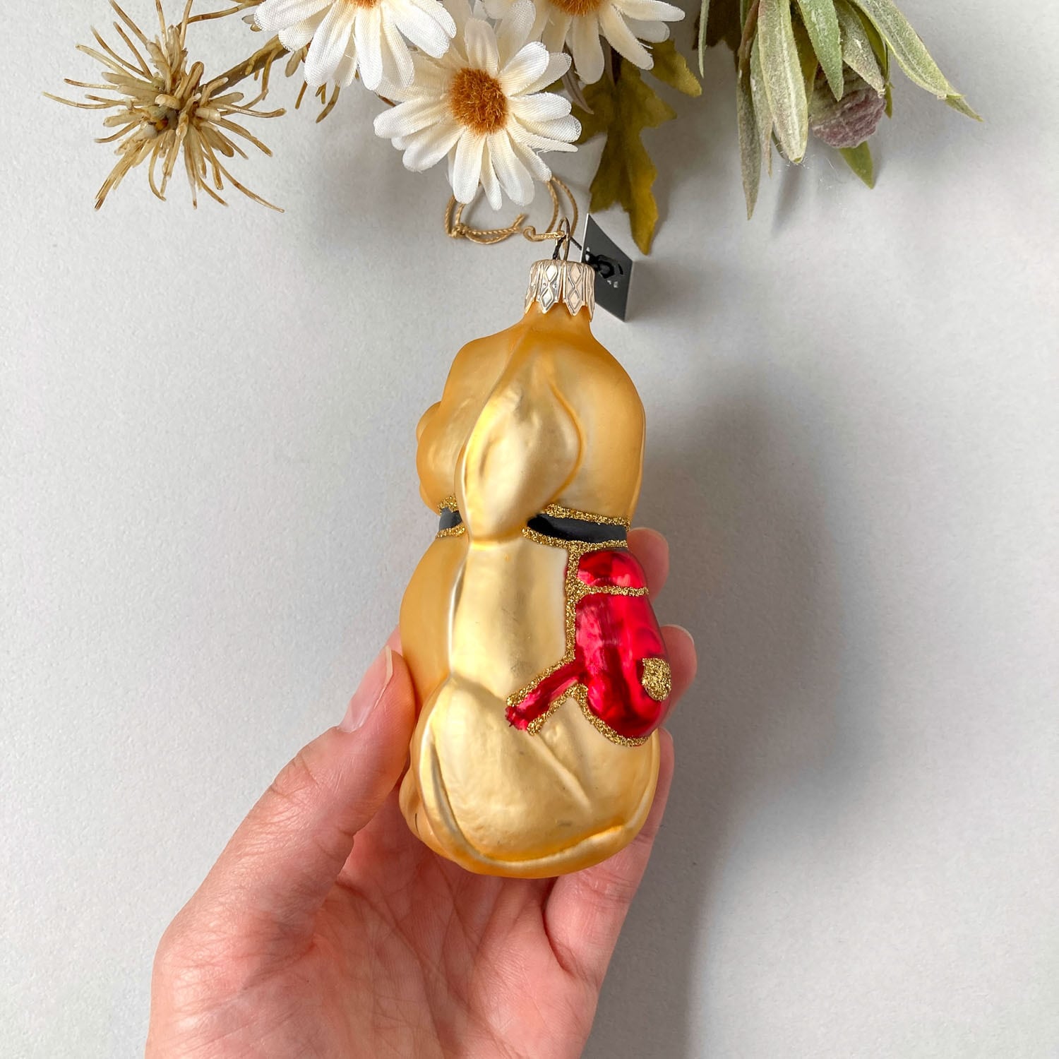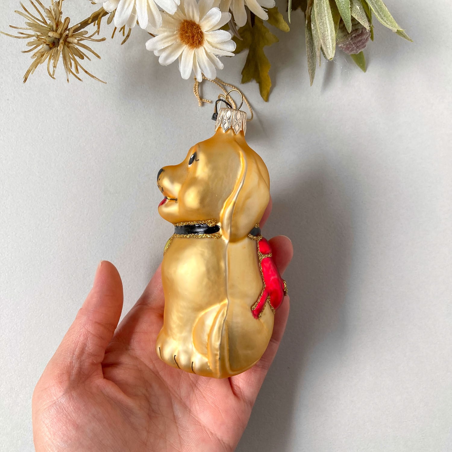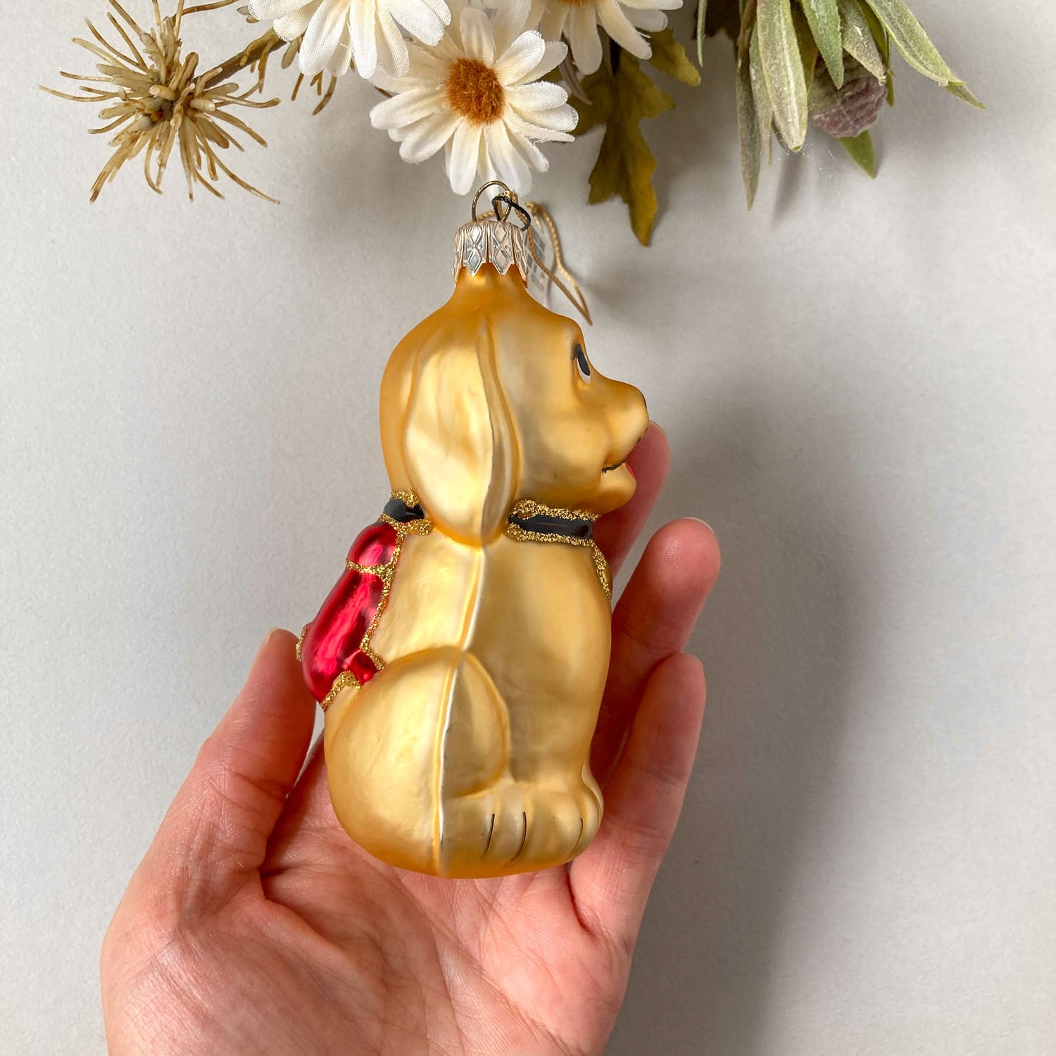 赤いリュック犬のチェコ製ガラスオーナメント
