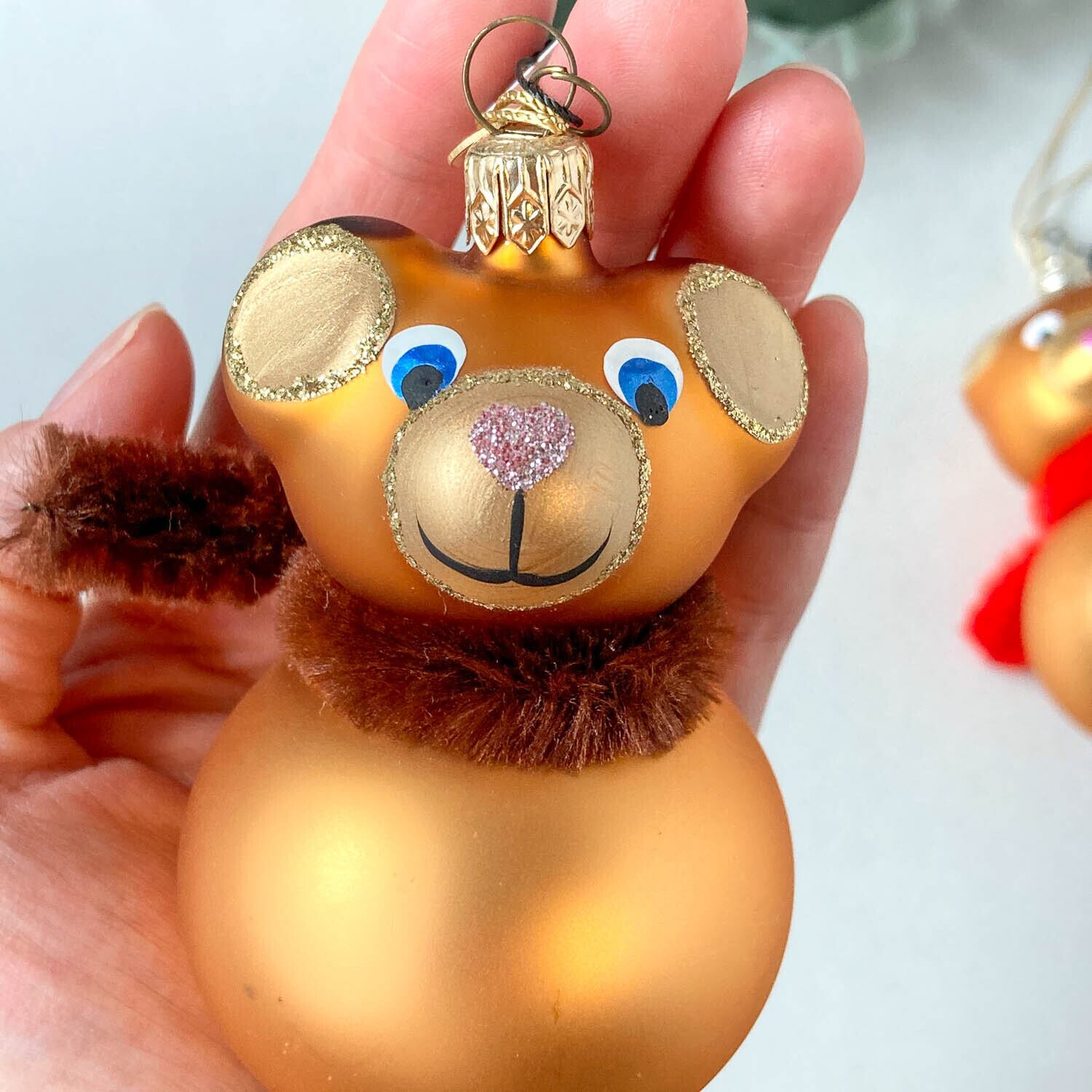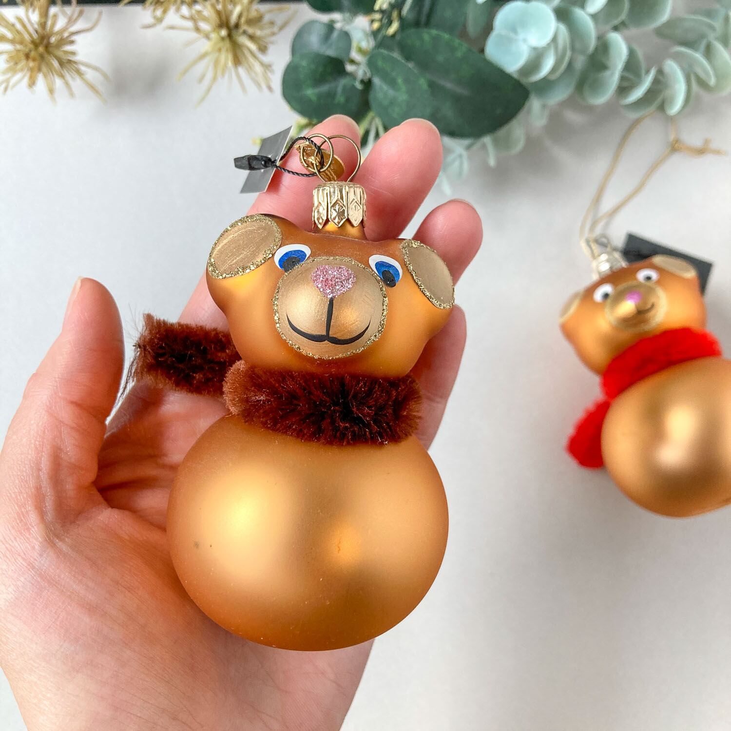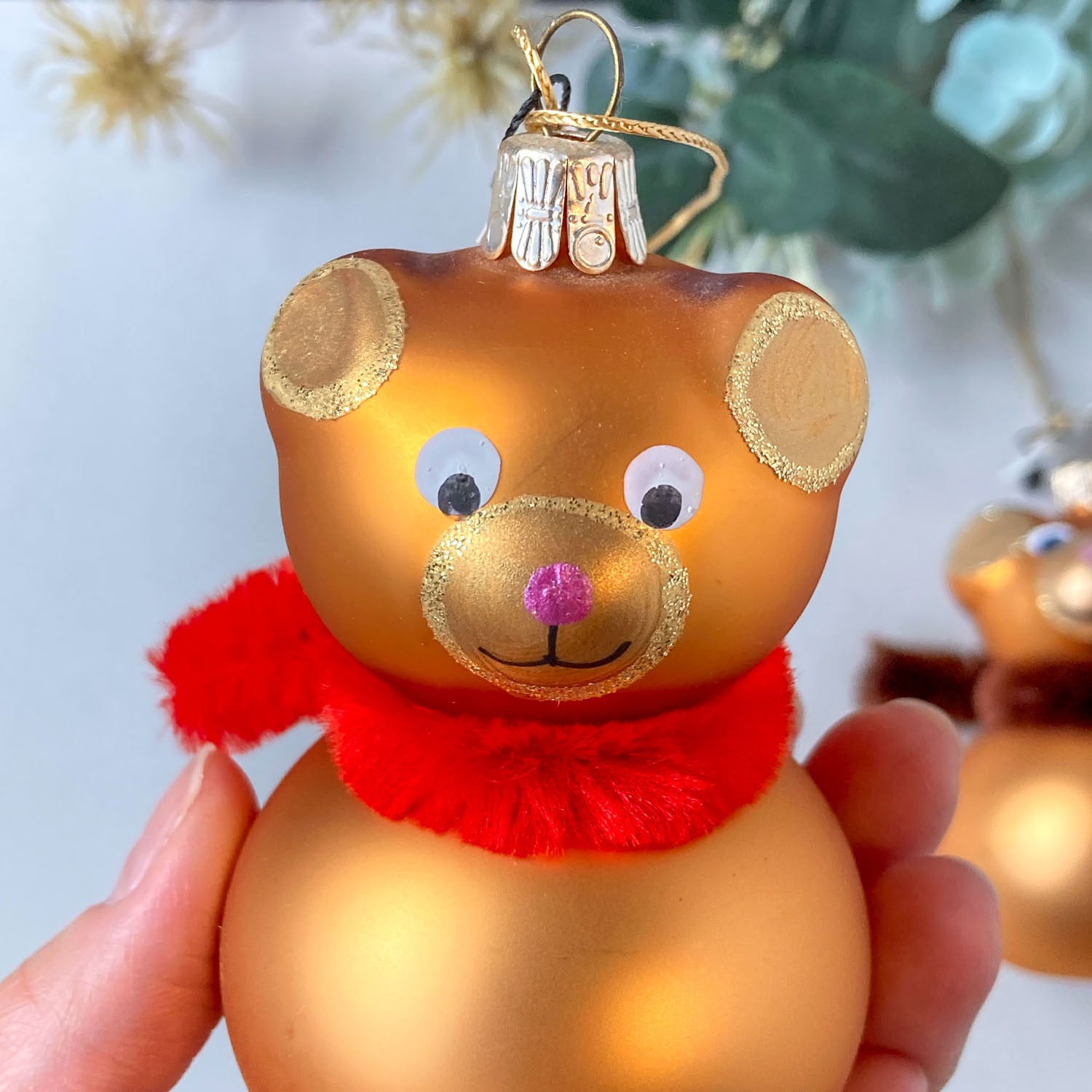 ガラス製のテディベアモチーフのオーナメント。